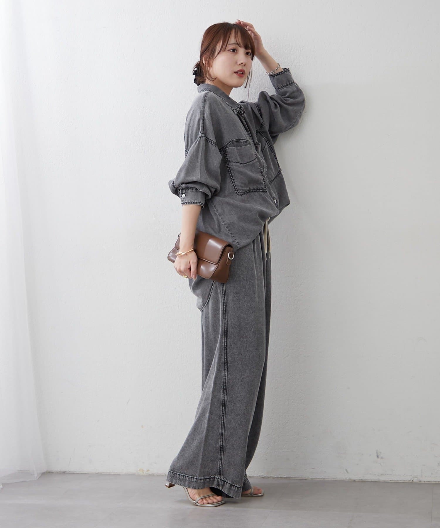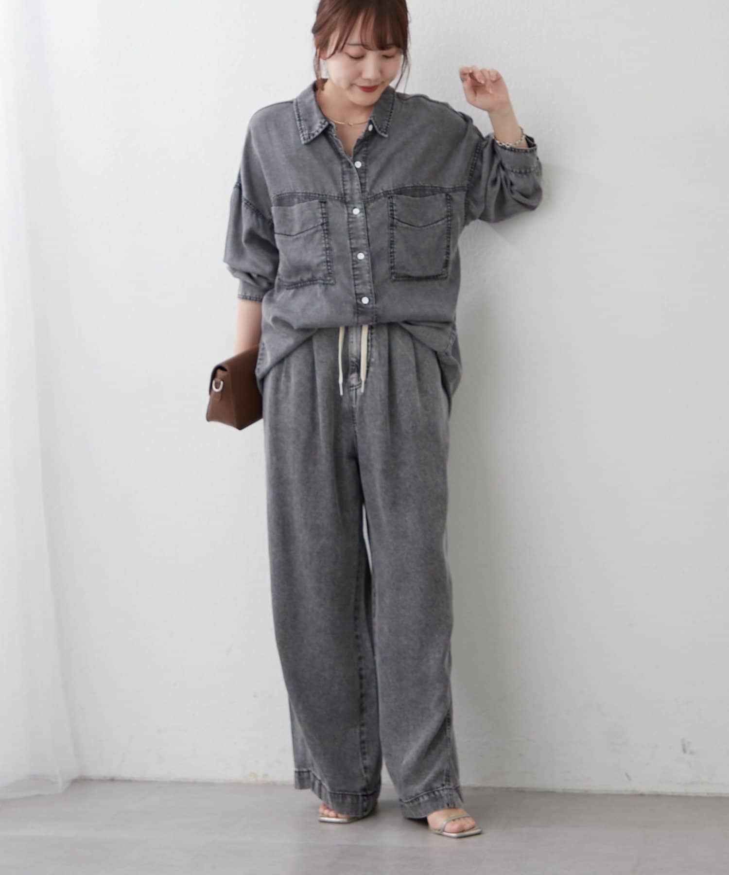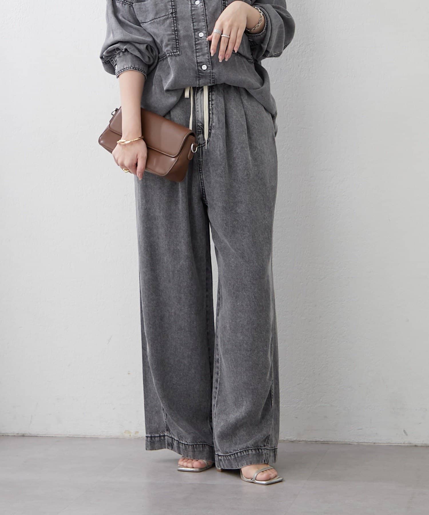 ・同素材のデニムシャツとのセットアップコーデも楽しめます