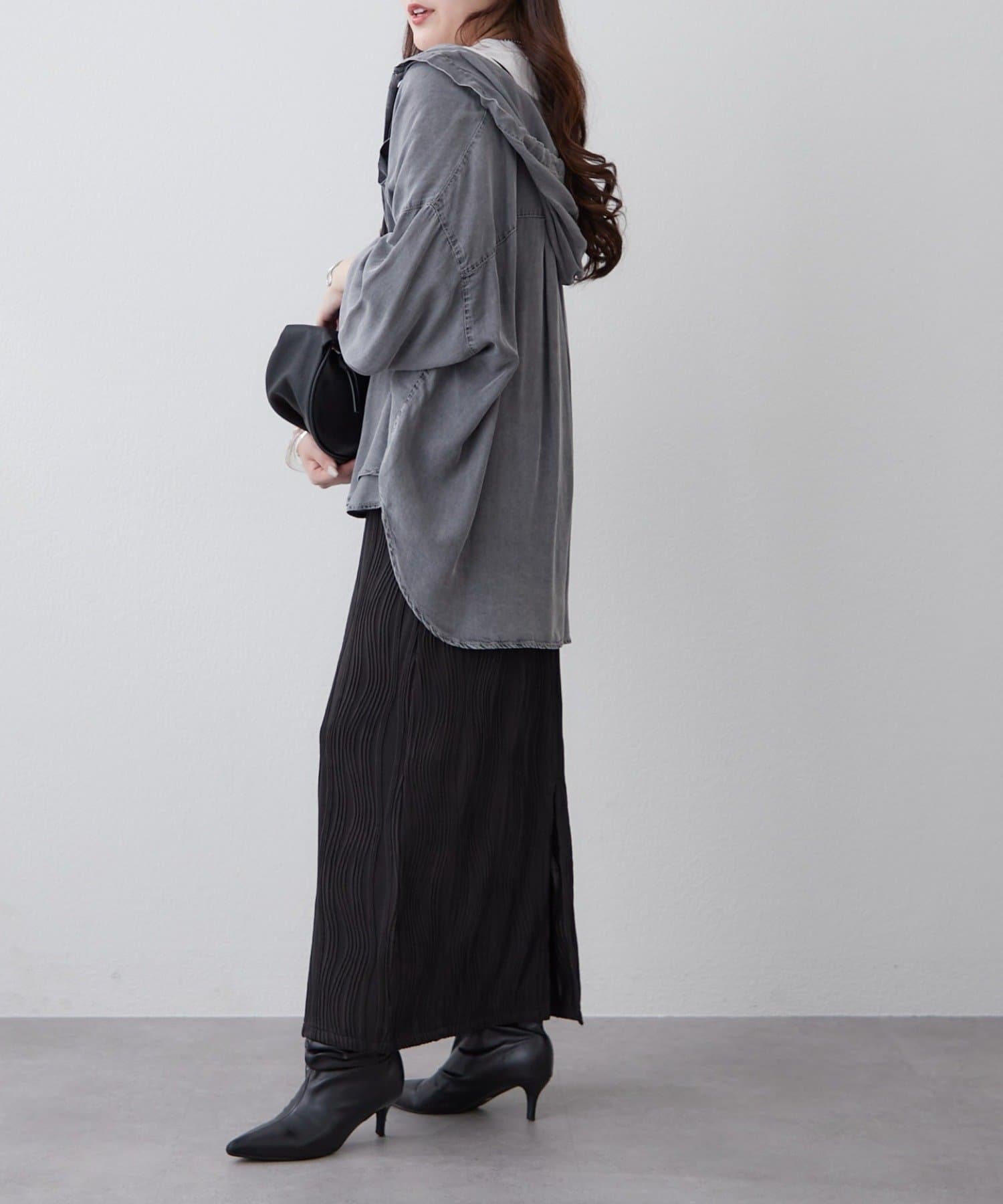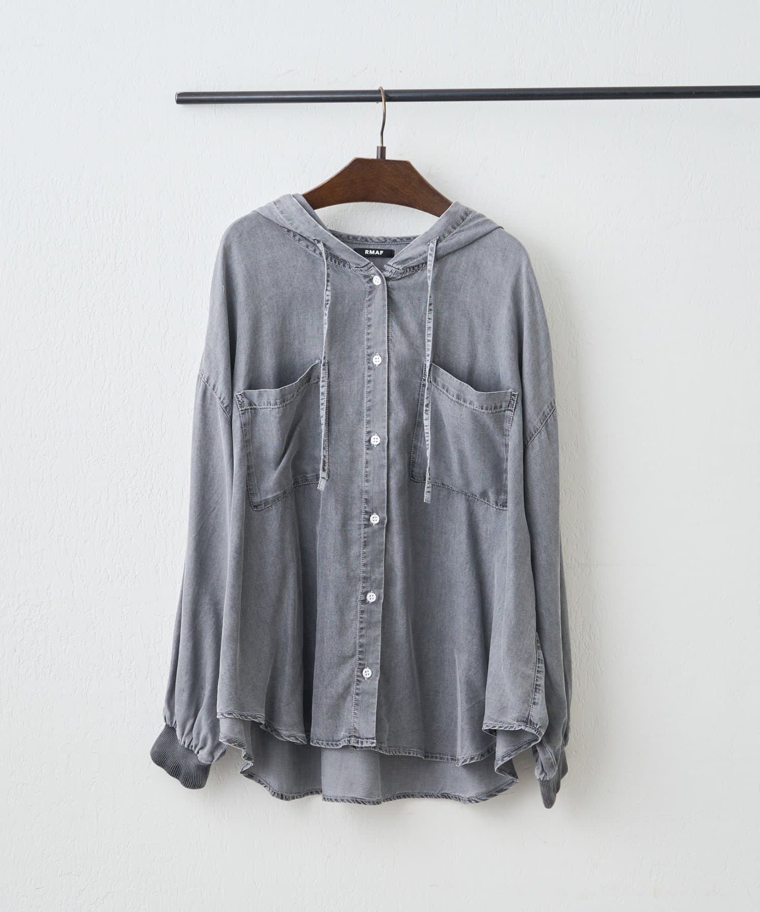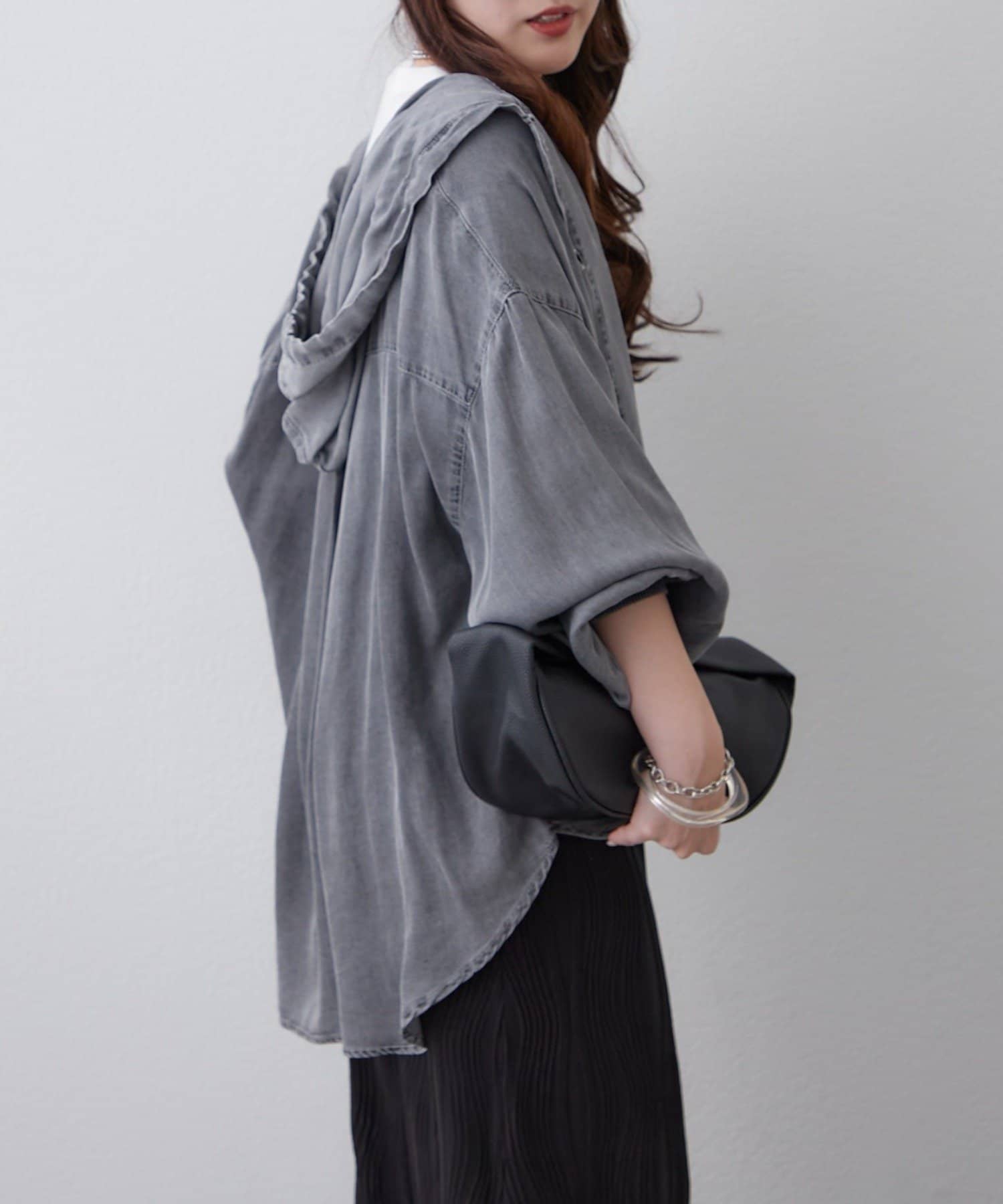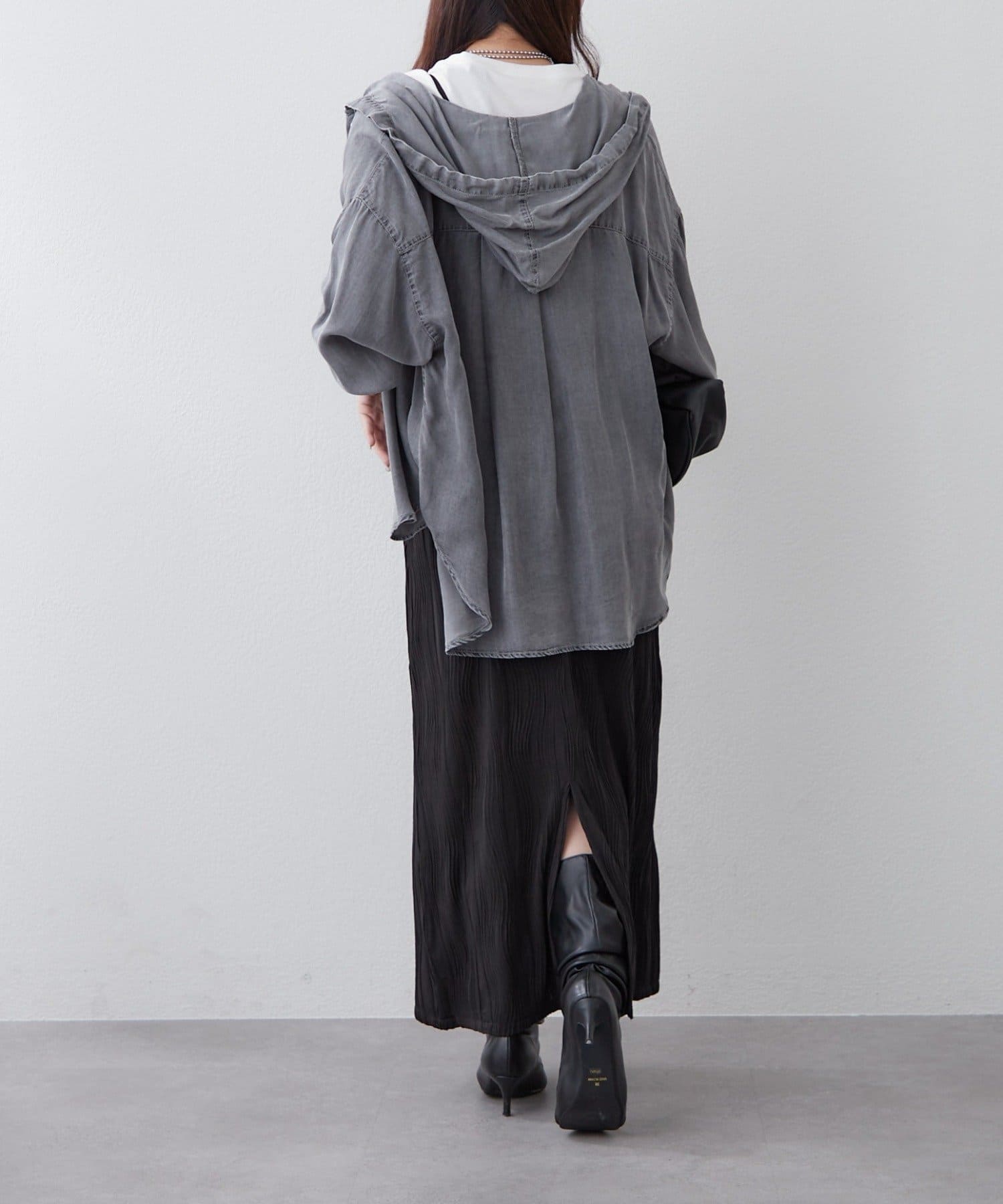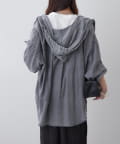 ・軽い素材感が魅力のフード付きシャツ