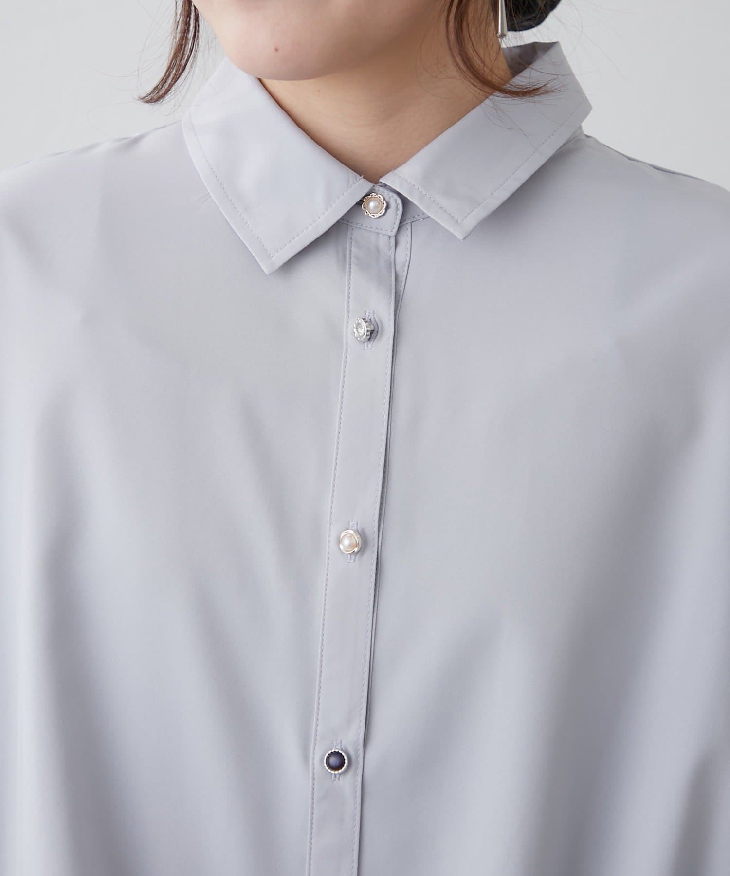 色々ボタン段々袖タケノコタックブラウス