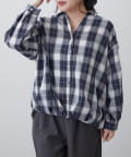 後ろレースアップ、チェックタケノコブラウス