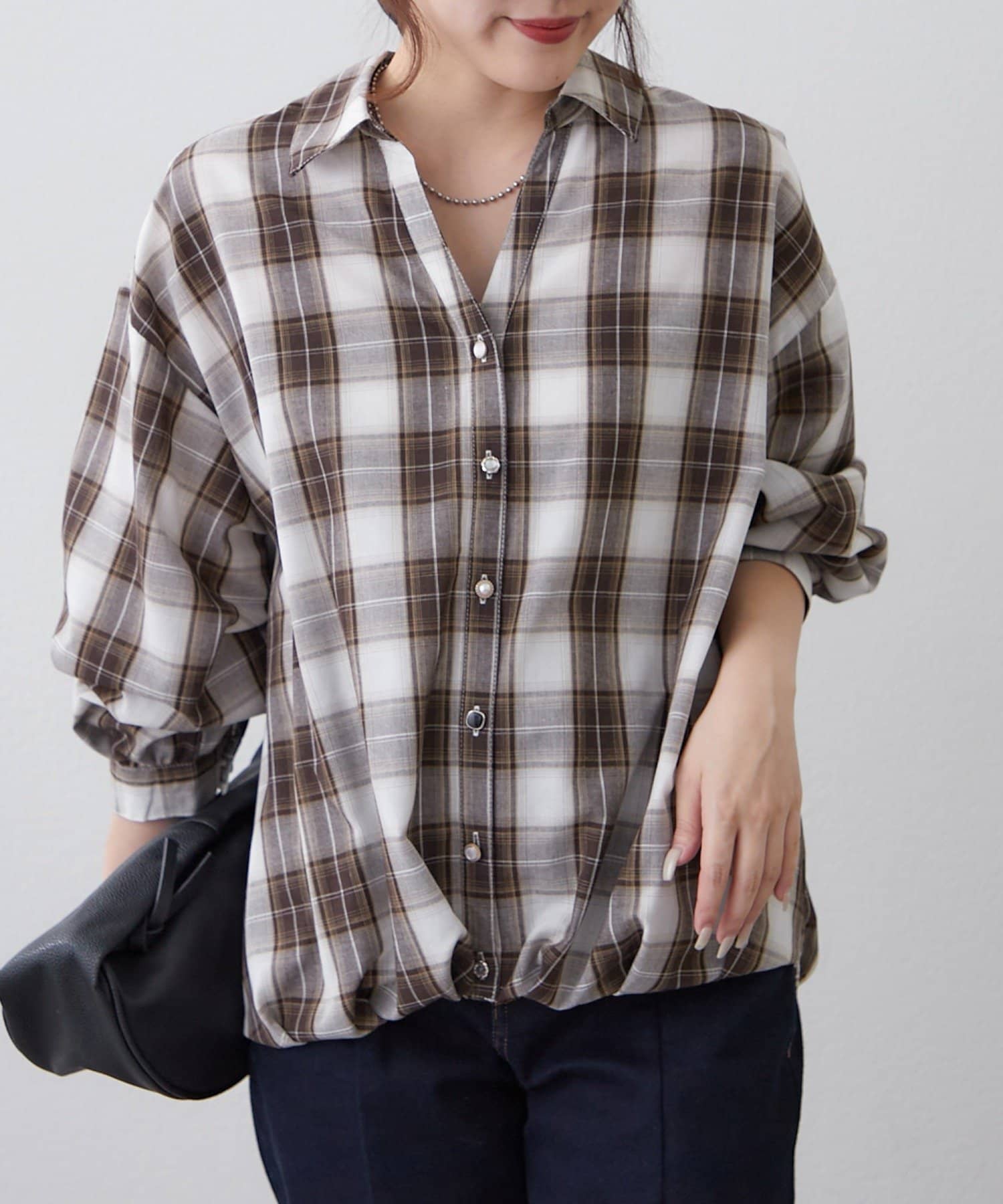 TOP > Remind me and forever > レディース > トップス > シャツ/ブラウス(ボタン) > 後ろレースアップ、チェックタケノコブラウス