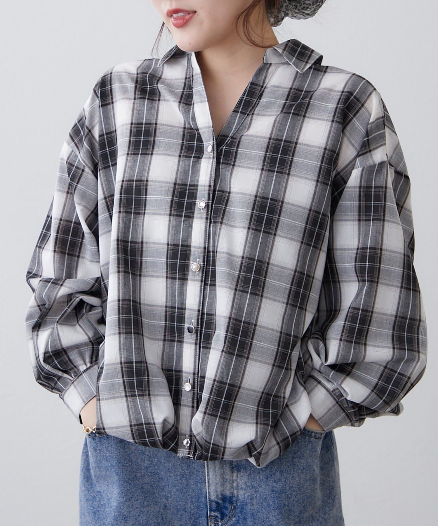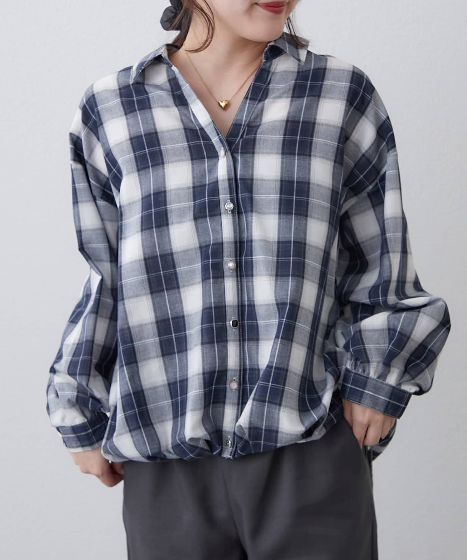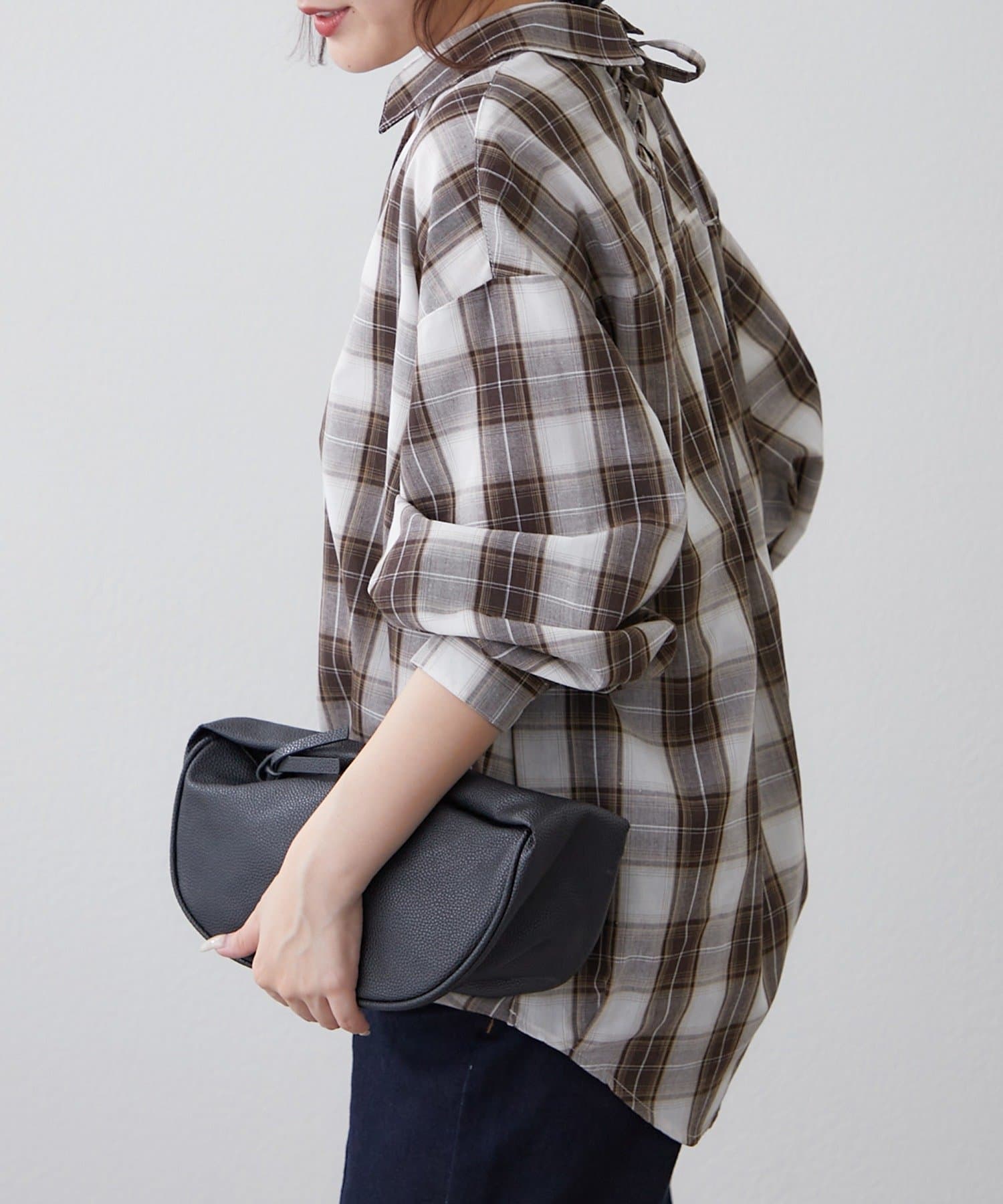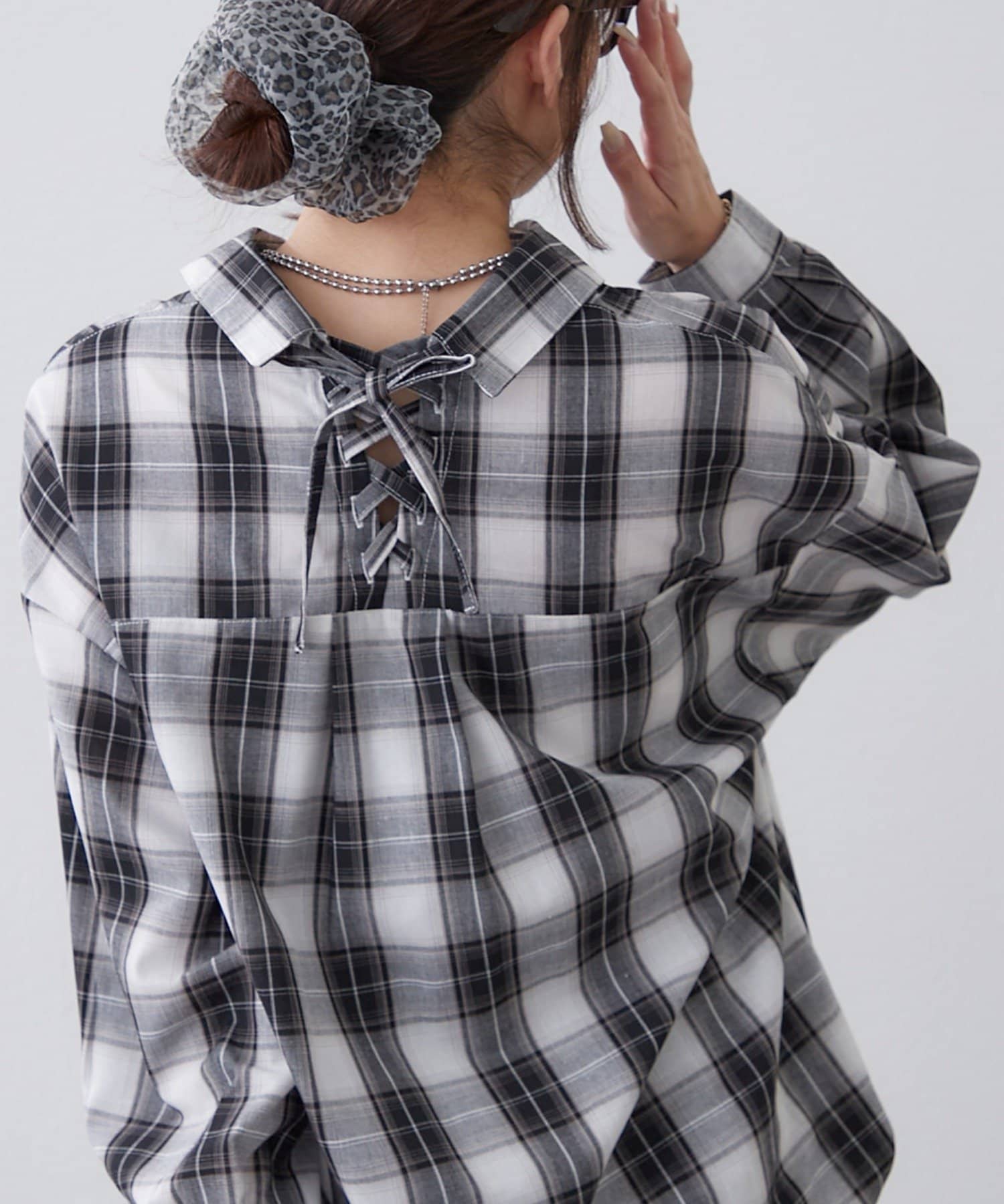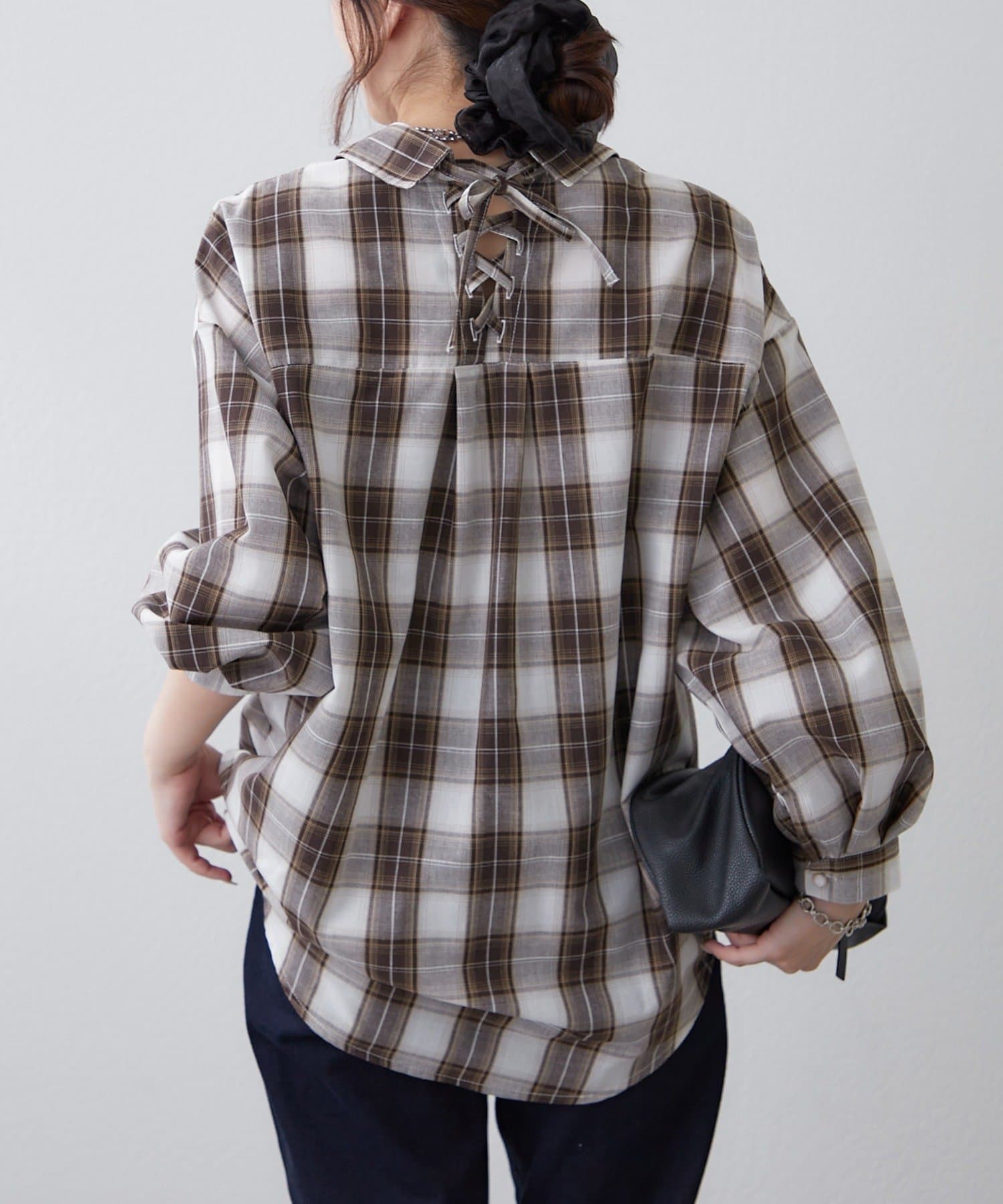 Remind me and forever(リマインドミーアンドフォーエバー) 後ろレースアップ、チェックタケノコブラウス