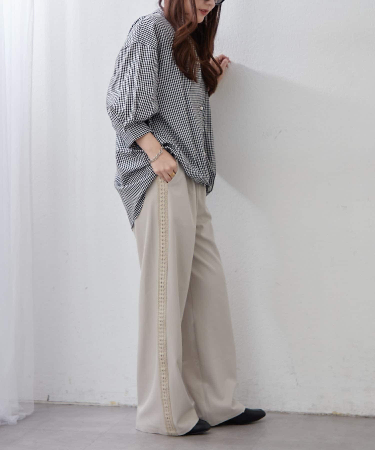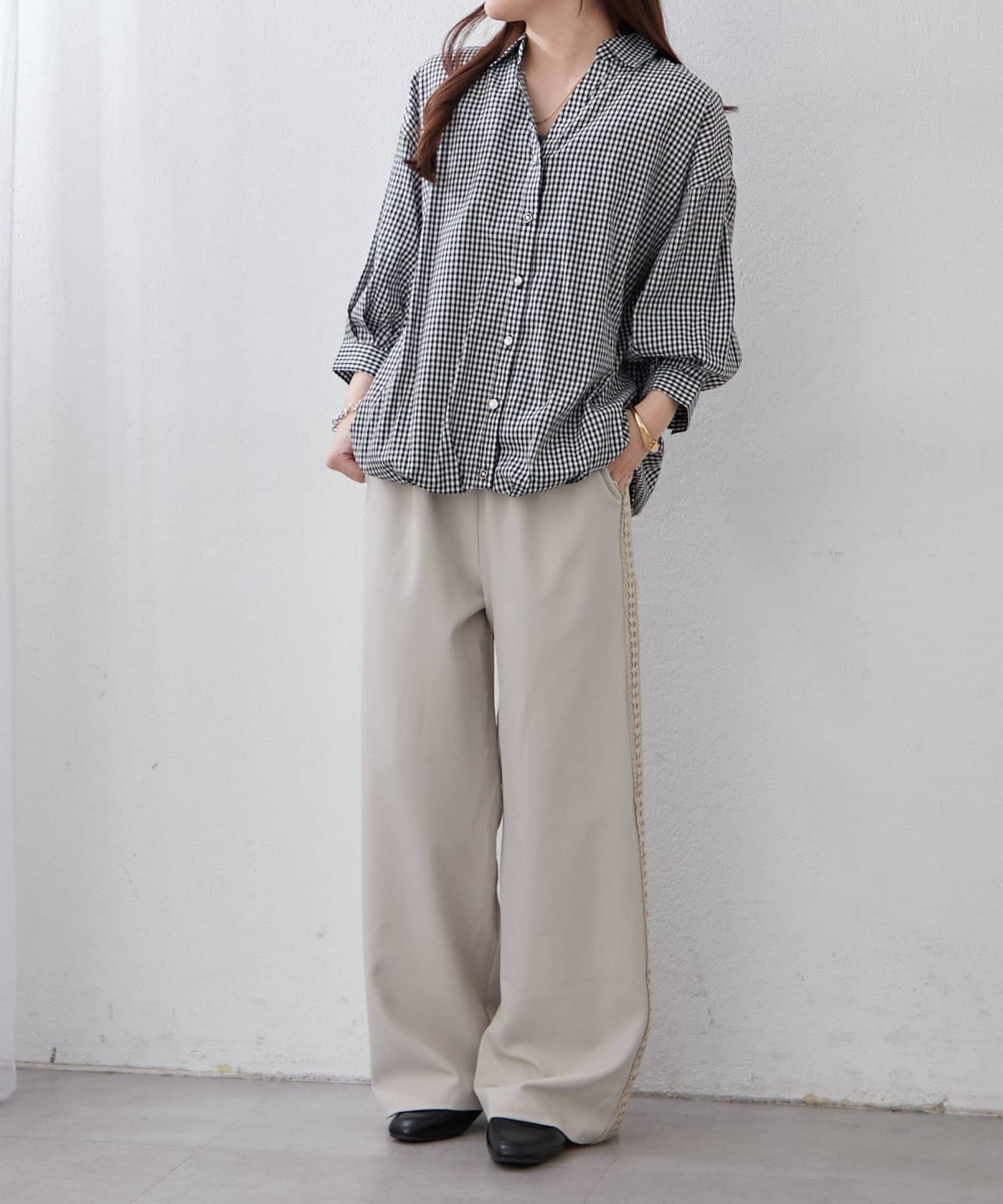 ・きれいめパンツと合わせて、知的で上品な印象に。足元はパンプスで決まり