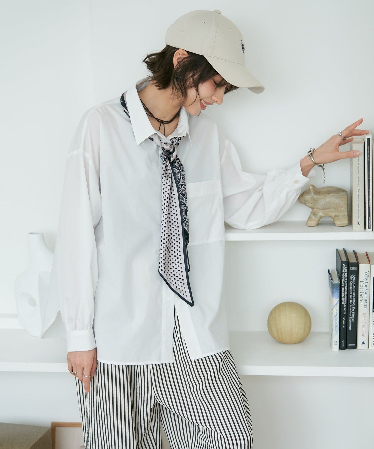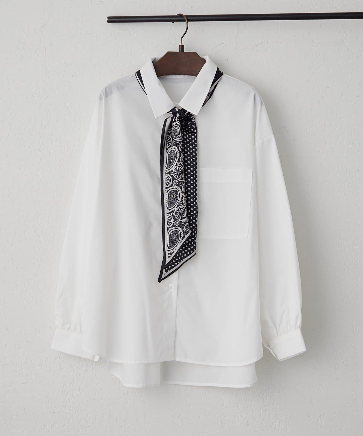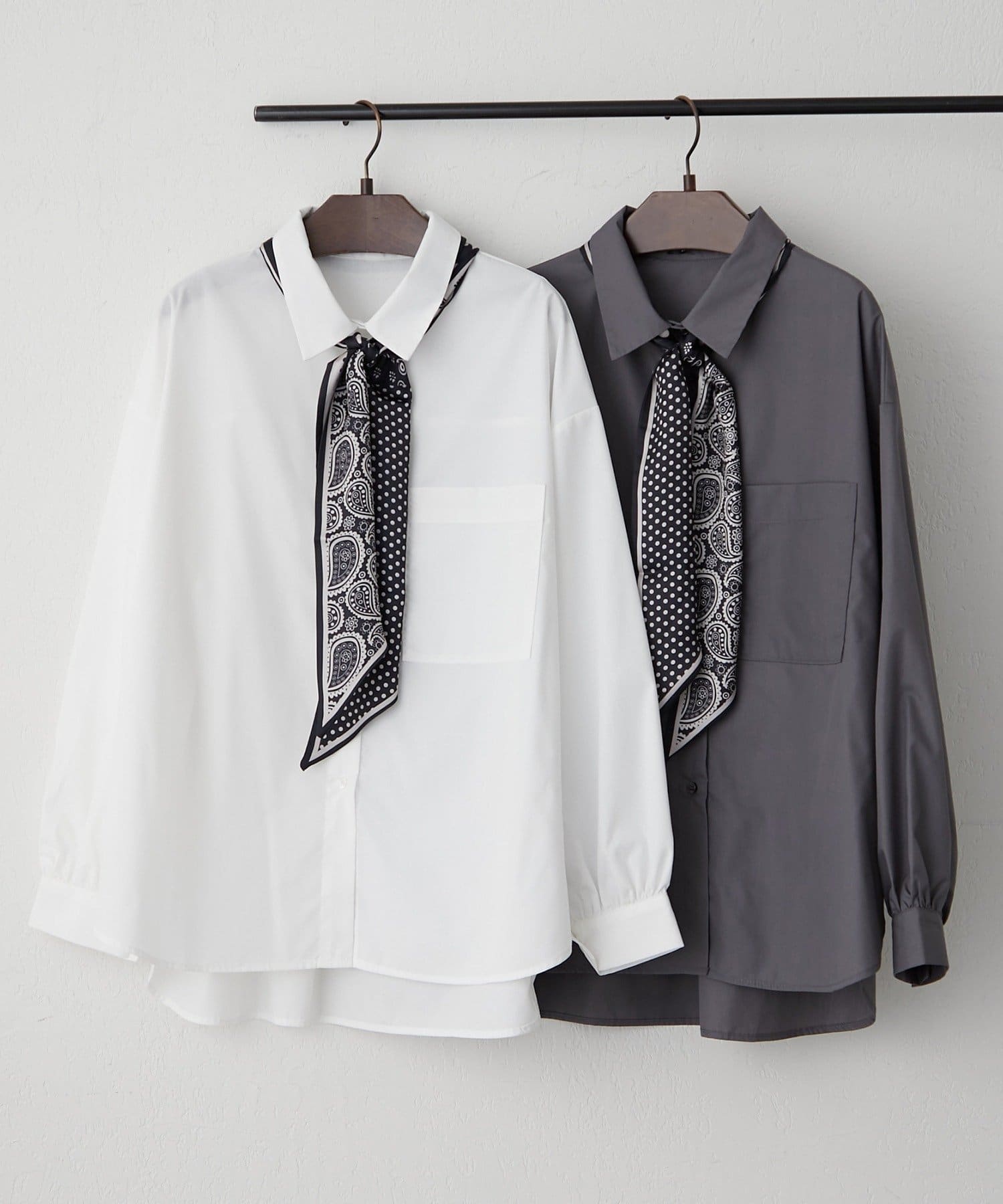 【オンオフ使える】スカーフ付きベーシックシャツ
