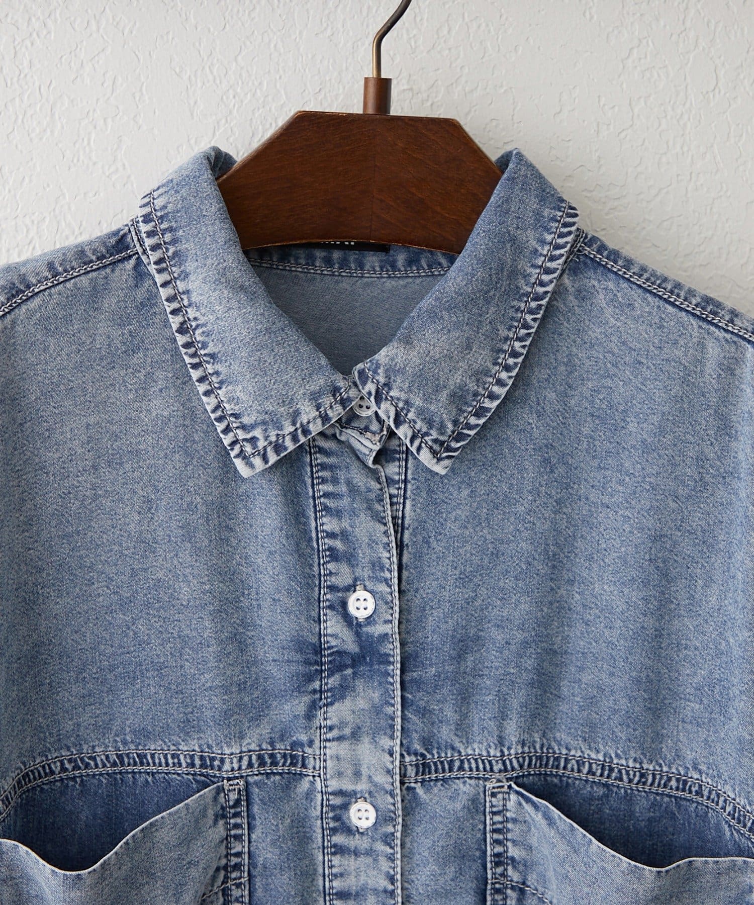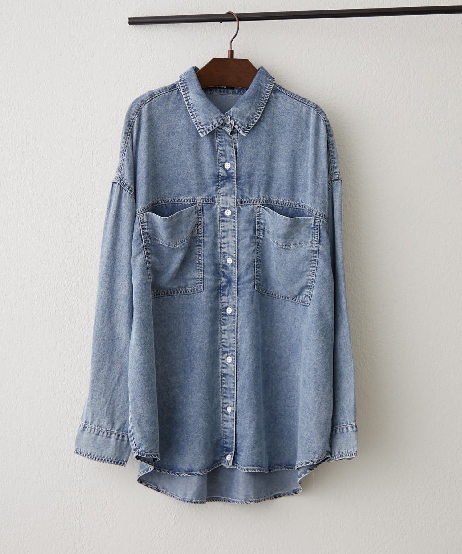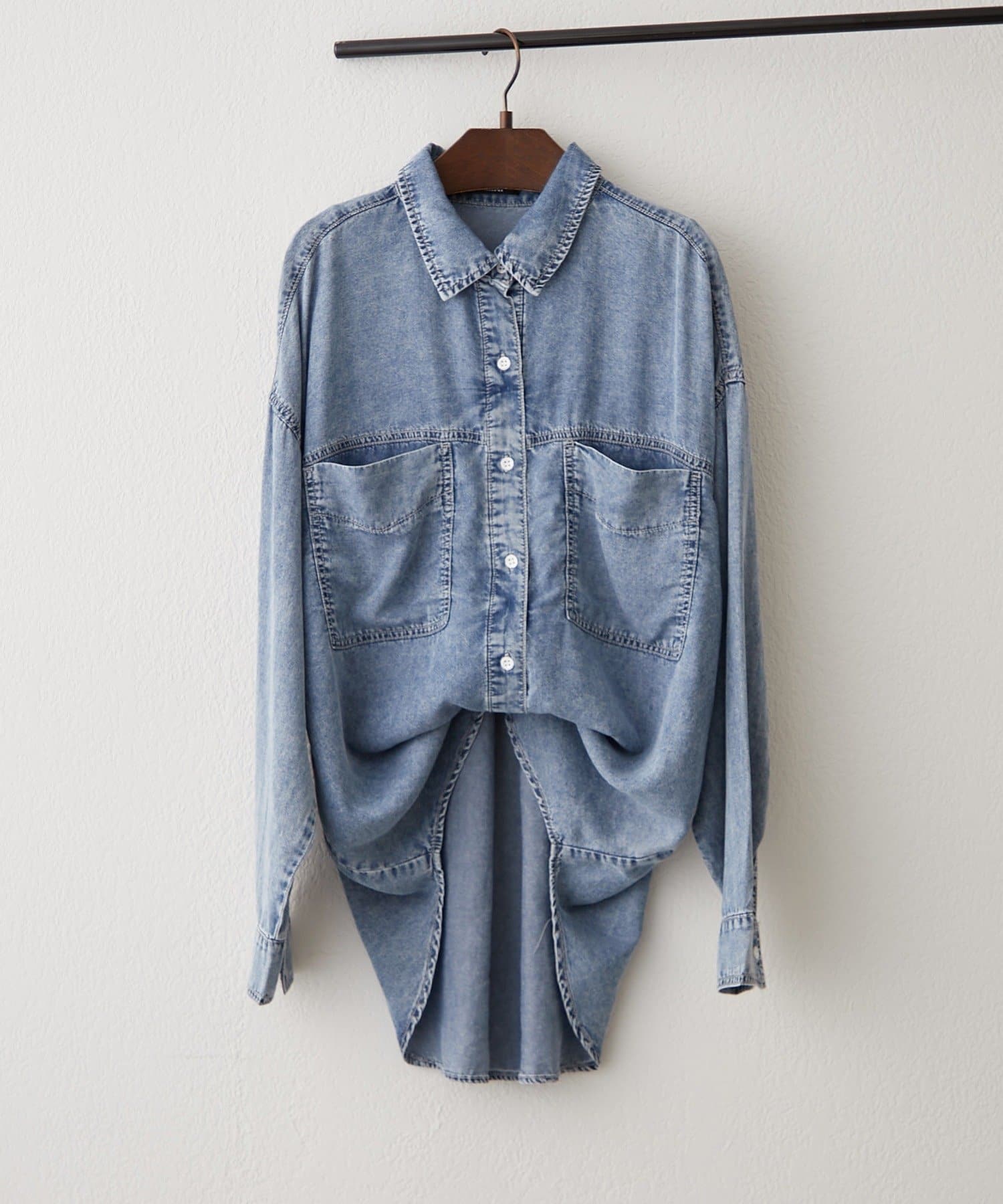 【接触冷感/大人のカジュアルコーデに】テンセルデニム2WAYシャツ