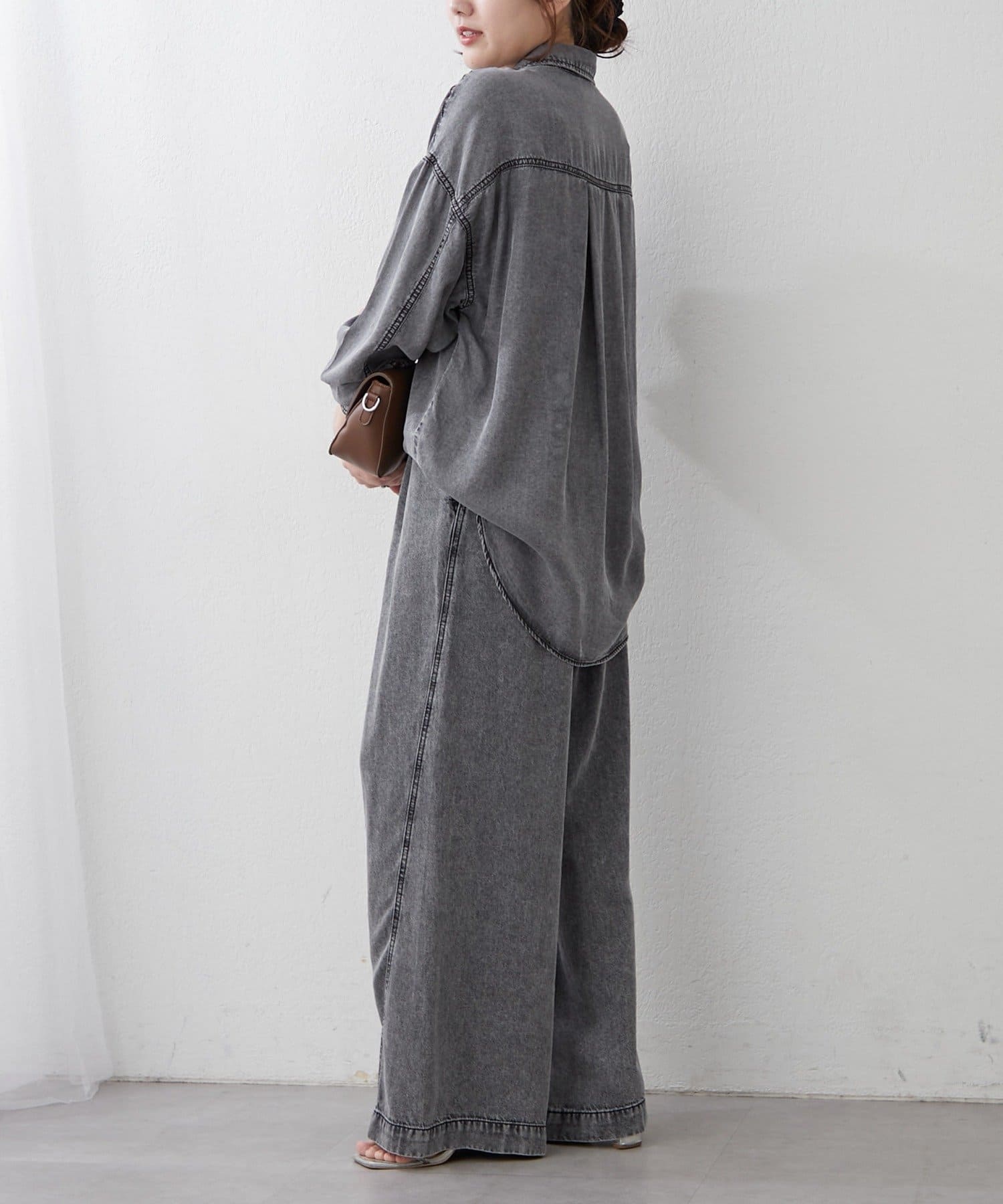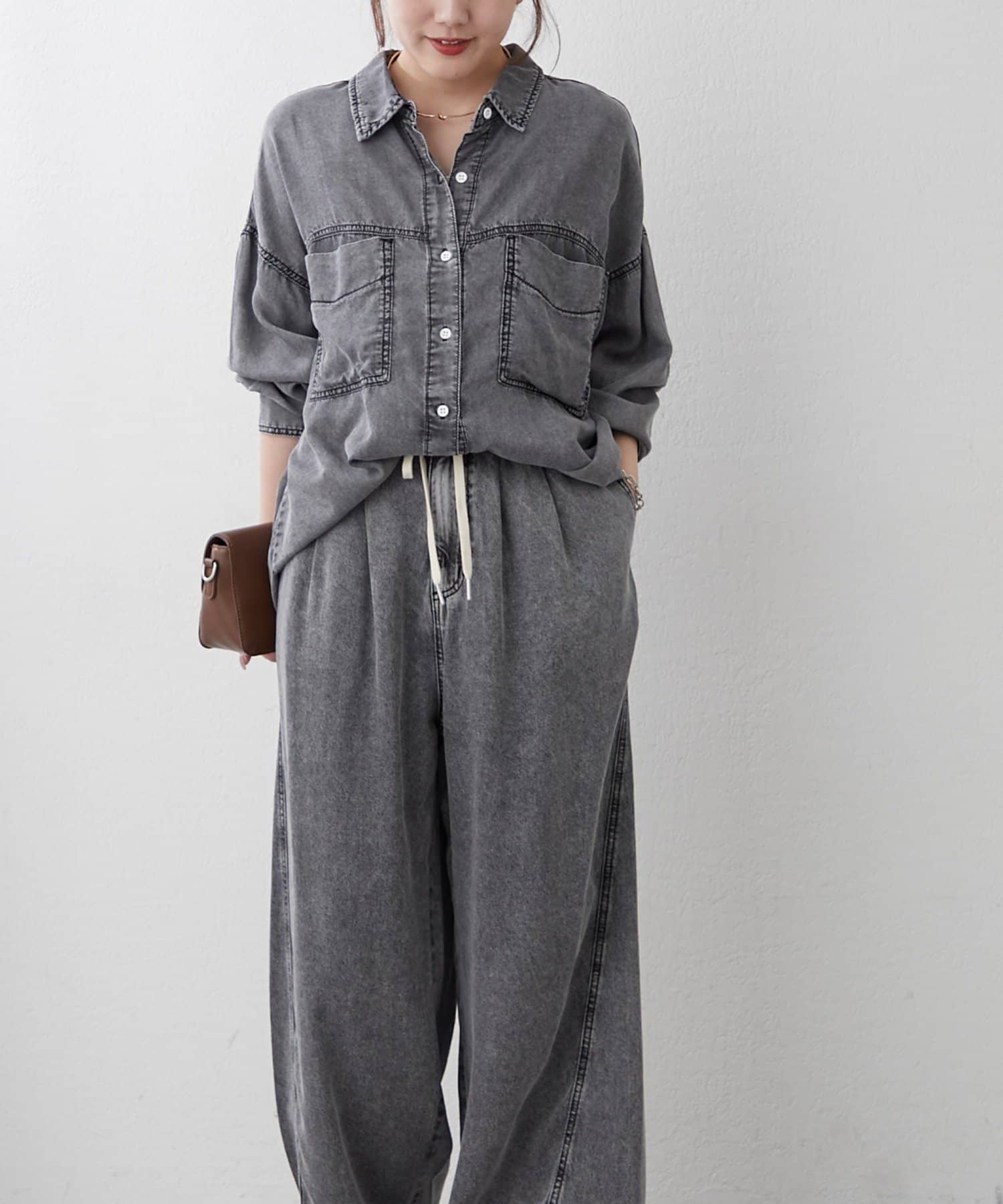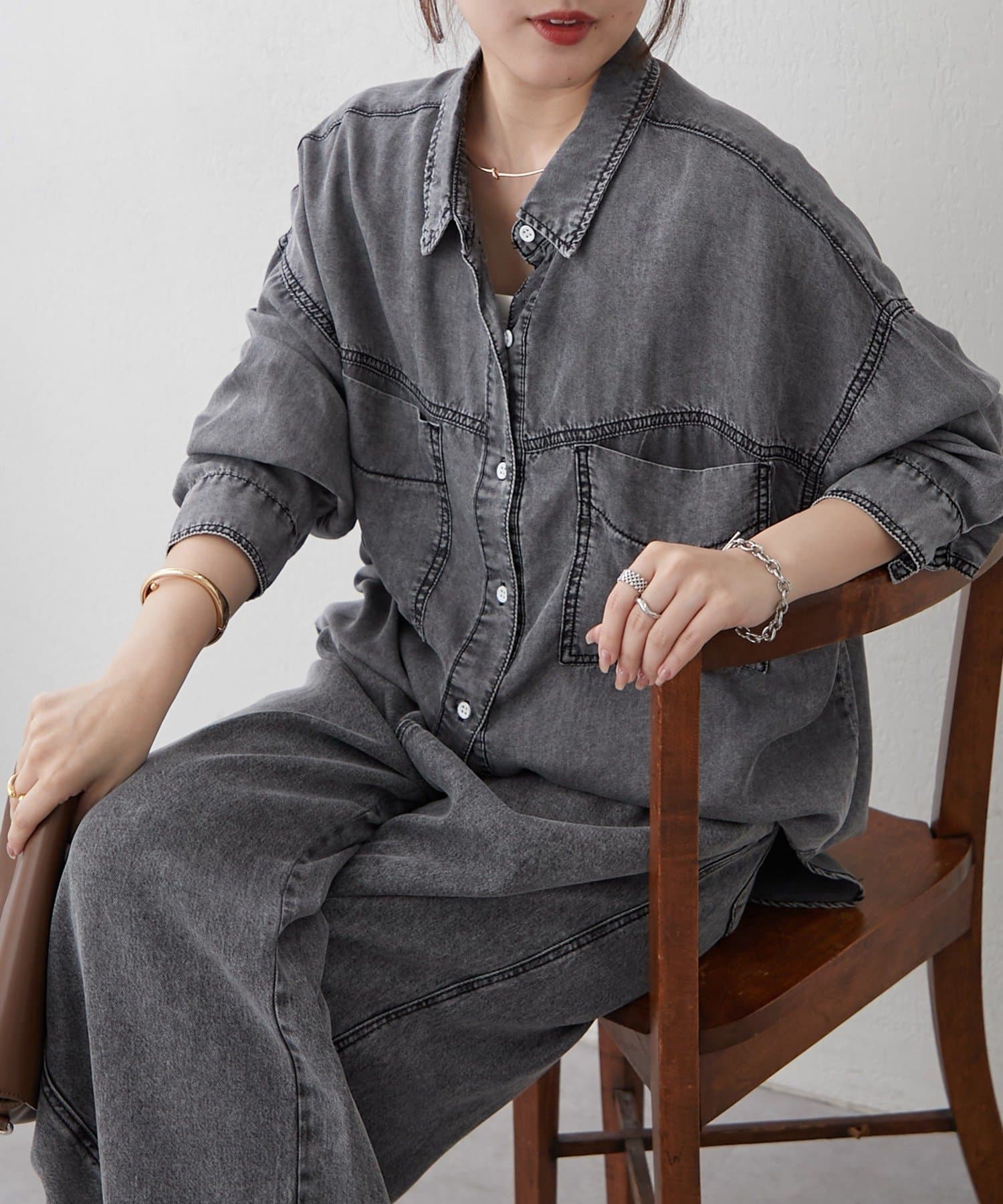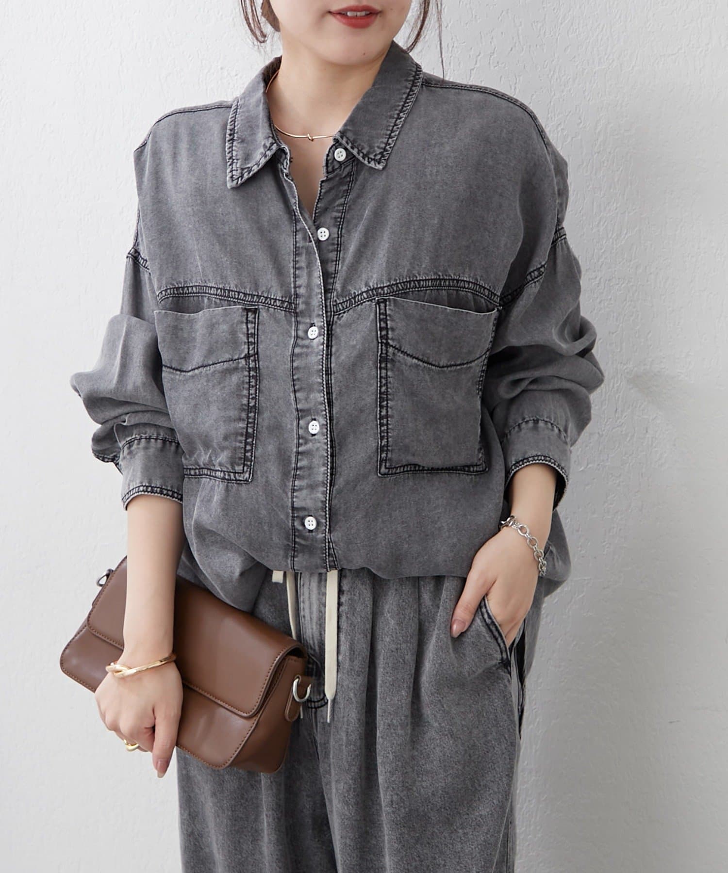 【接触冷感/大人のカジュアルコーデに】テンセルデニム2WAYシャツ