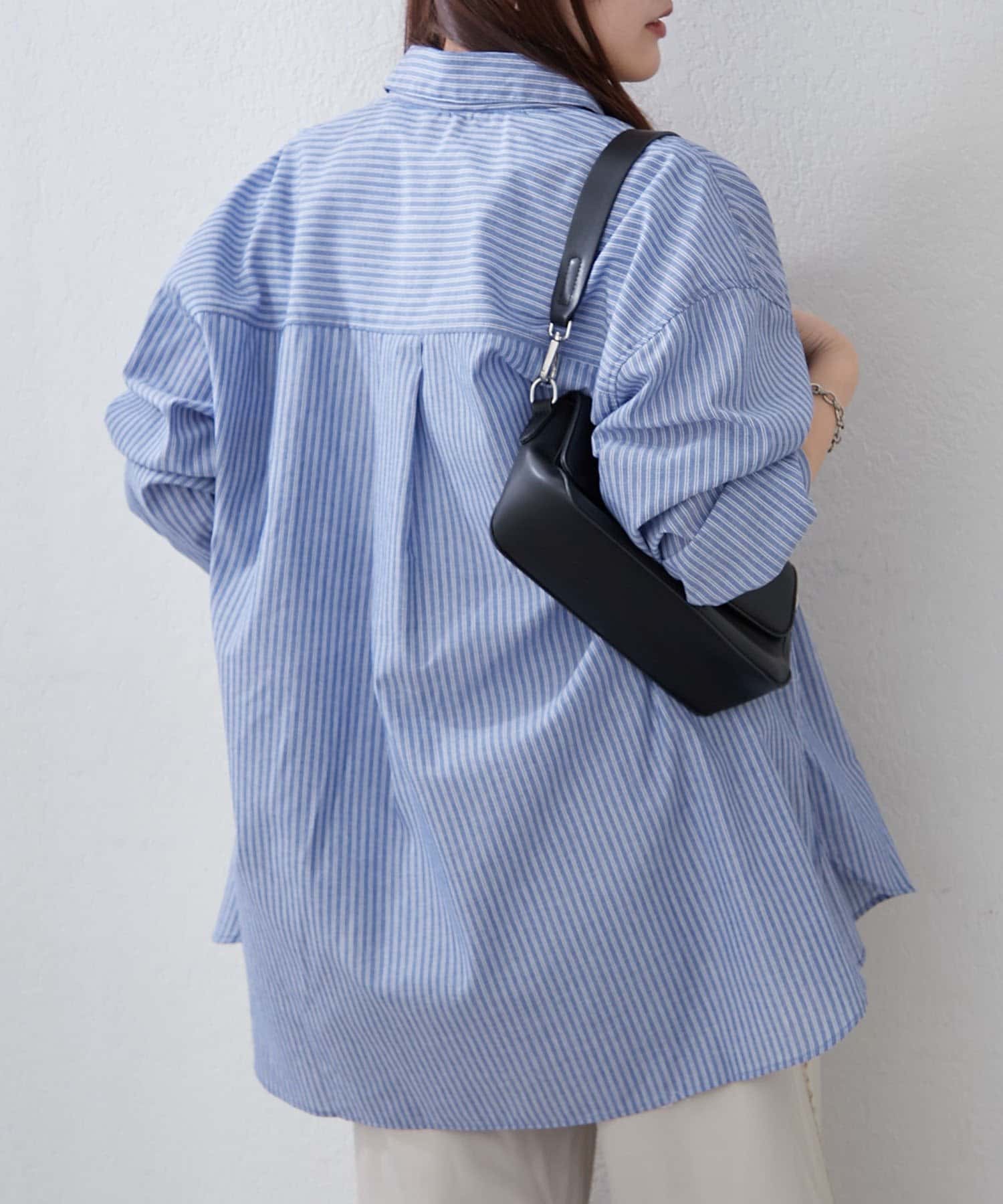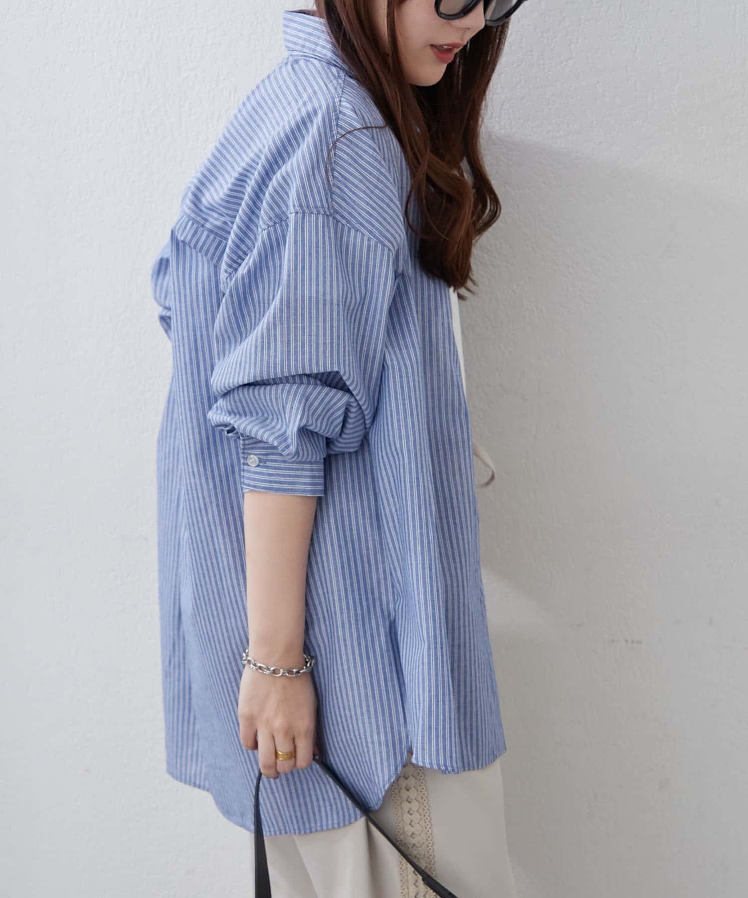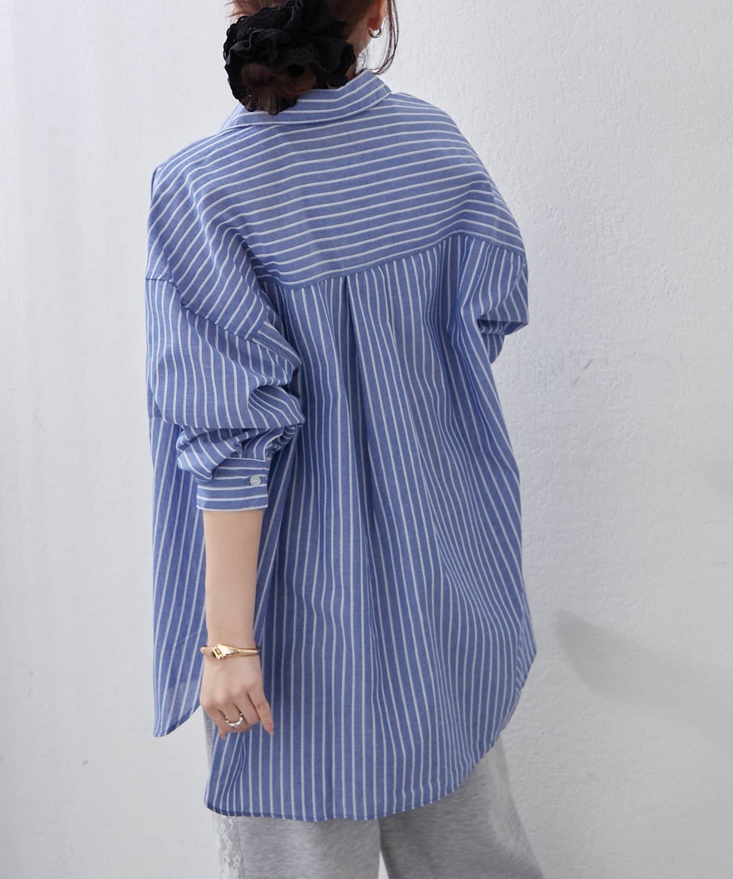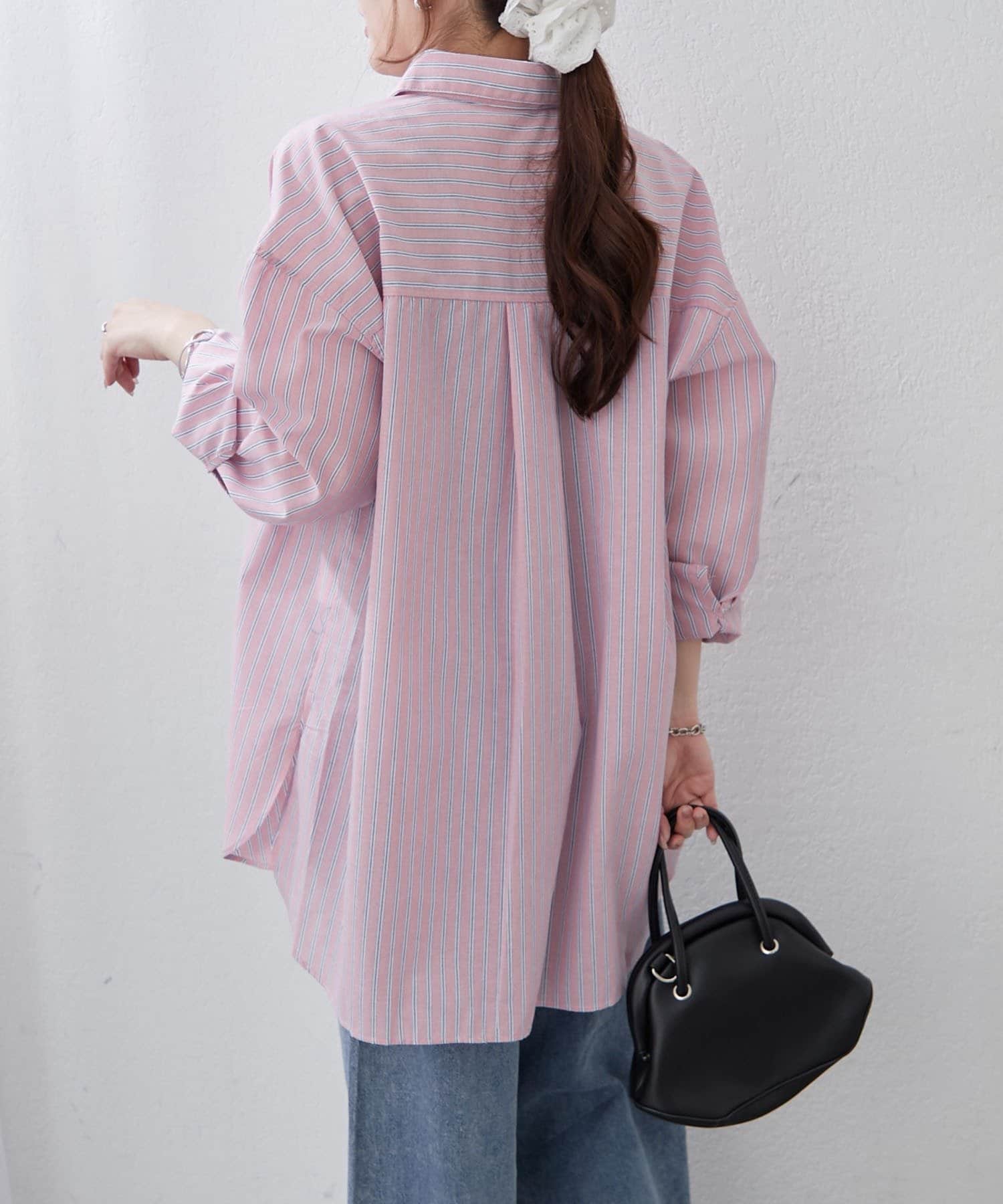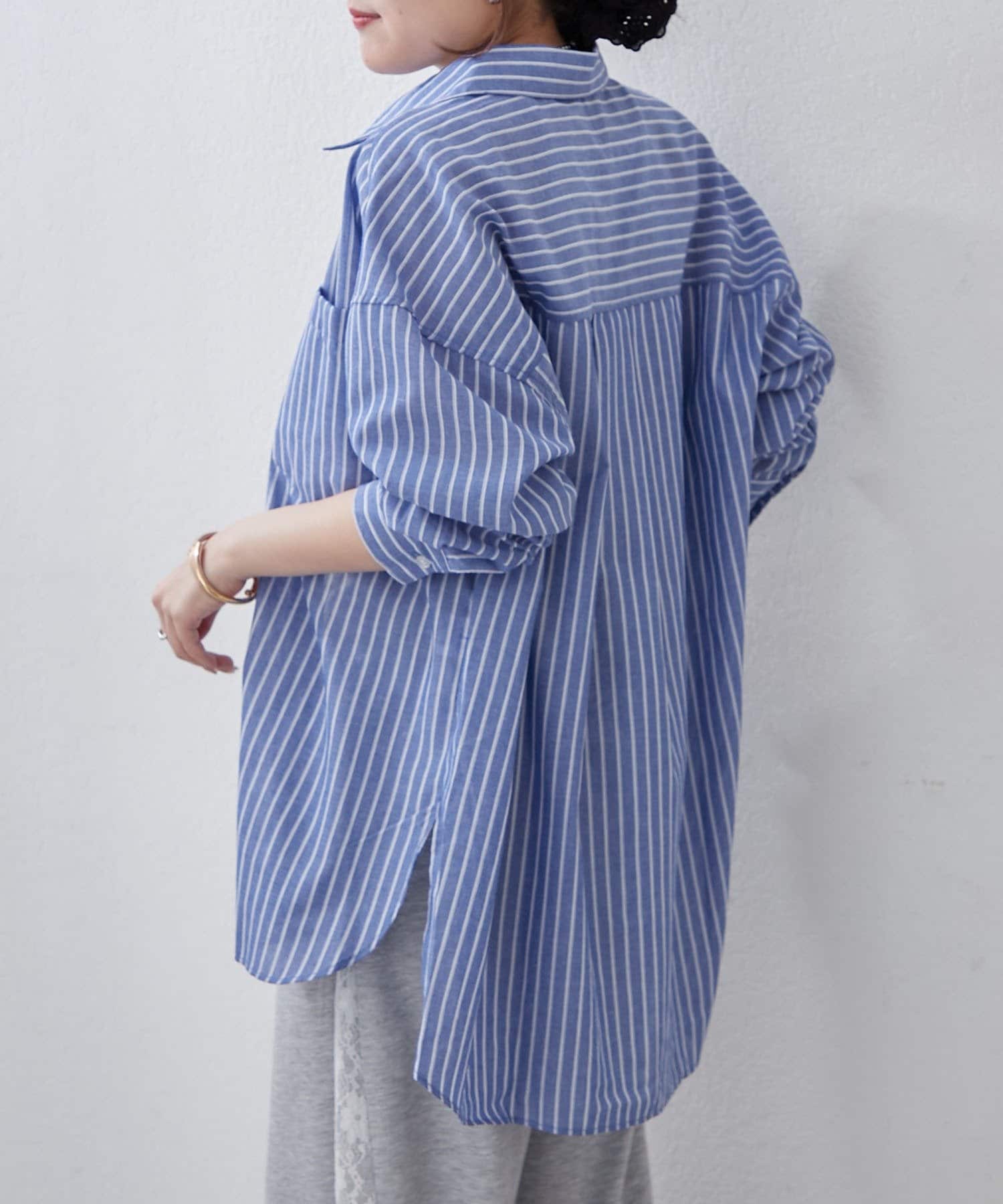 ・さわやかなストライプが目を引く、ゆったりシルエットのシャツ