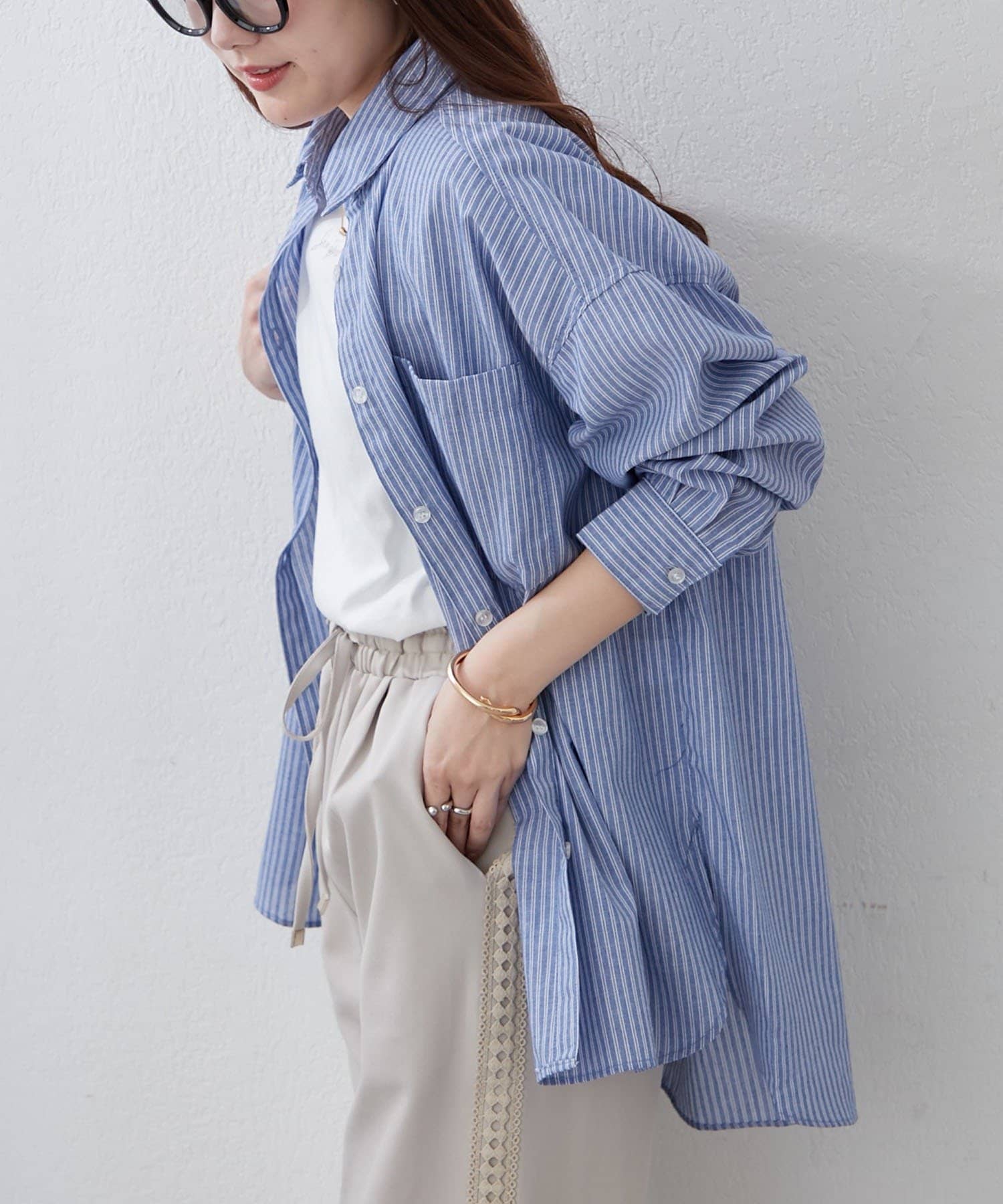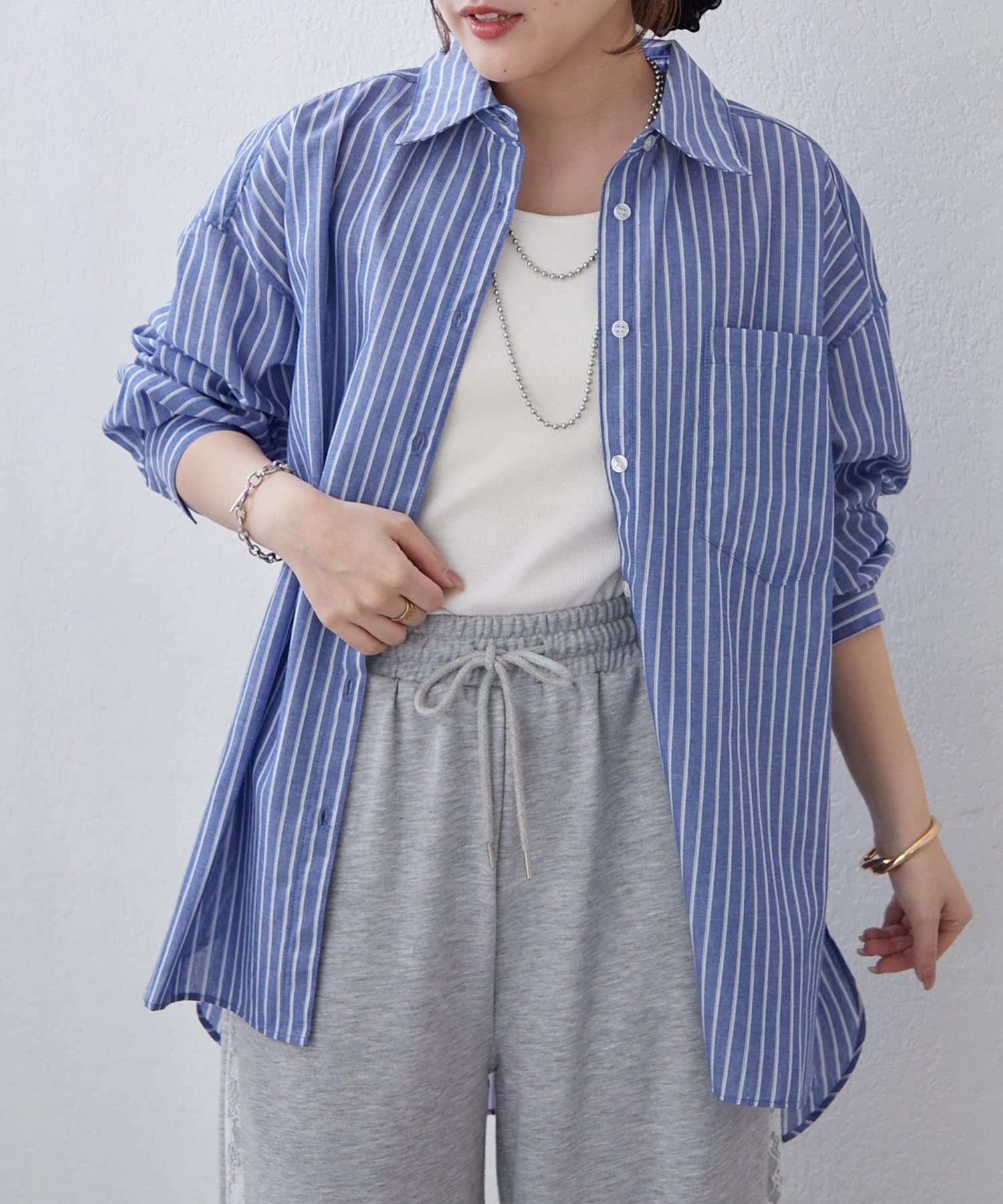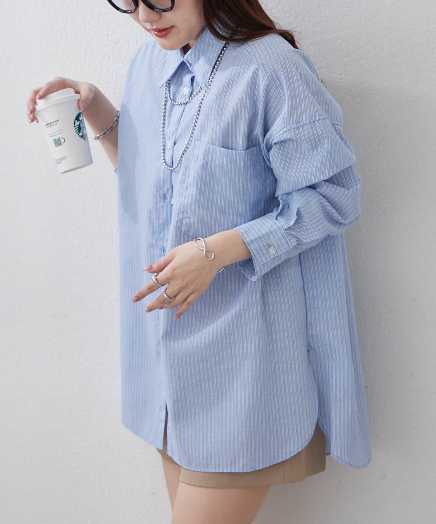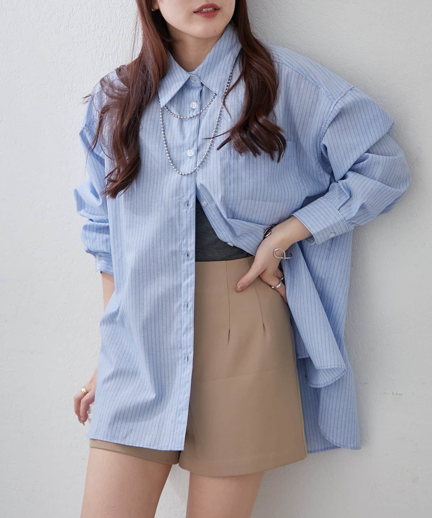 ・さわやかなストライプが目を引く、ゆったりシルエットのシャツ