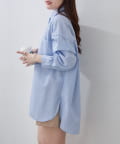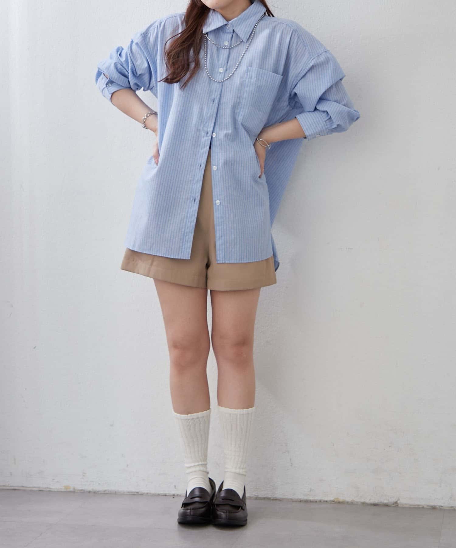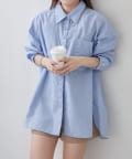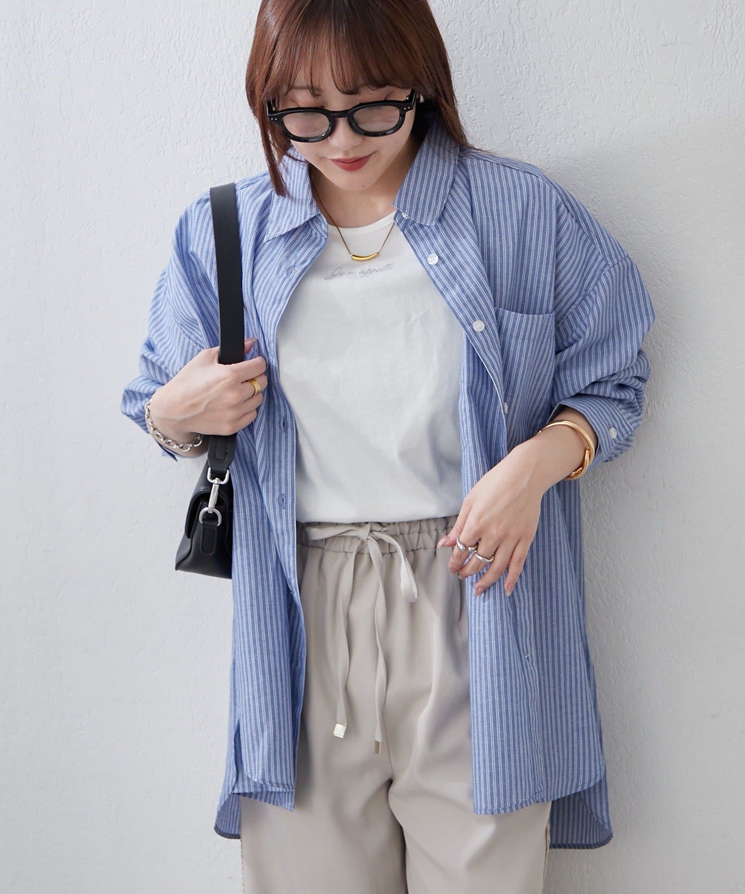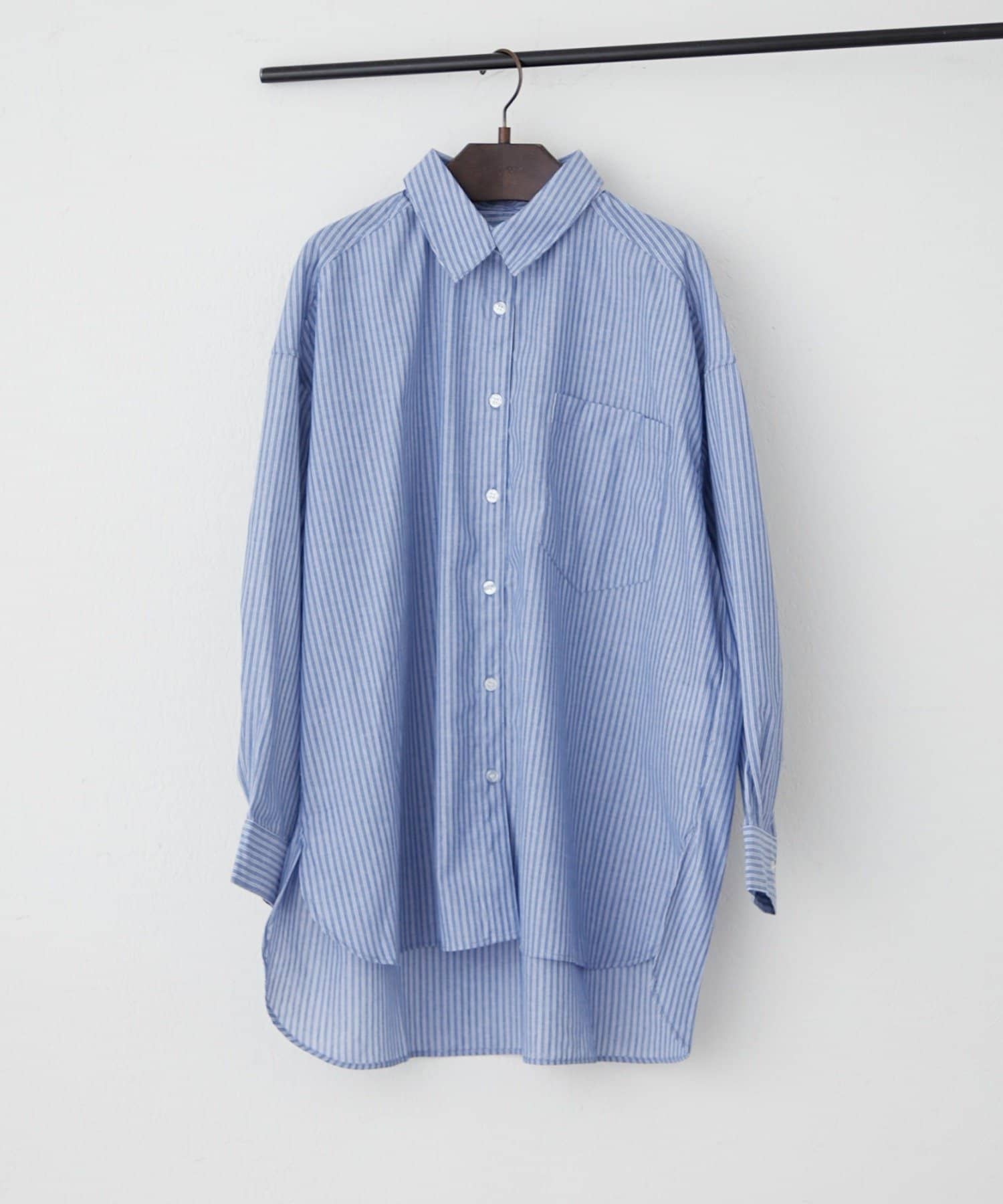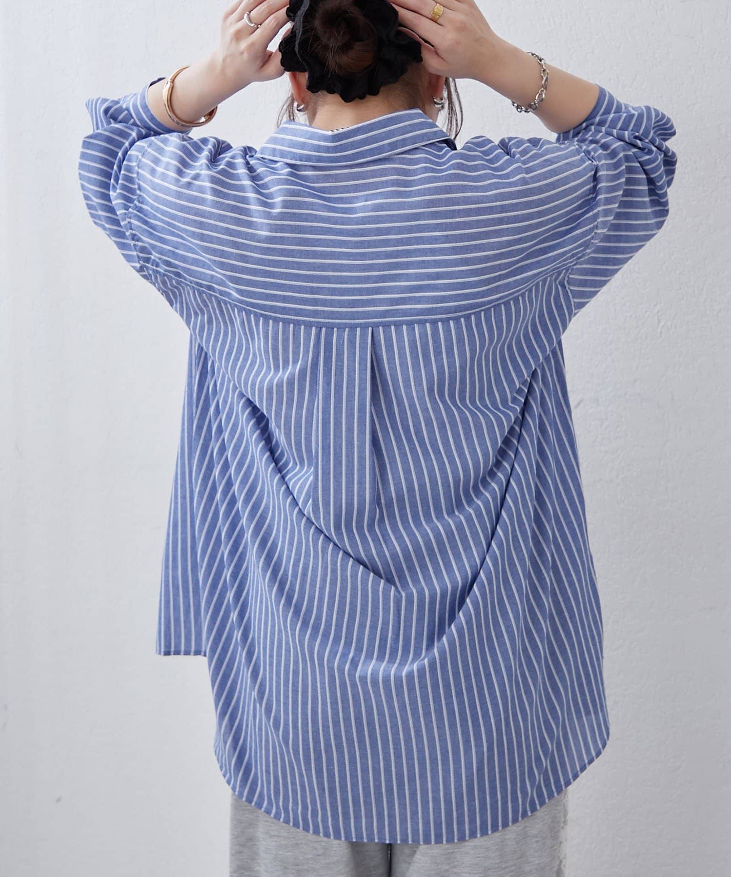 ・さわやかなストライプが目を引く、ゆったりシルエットのシャツ