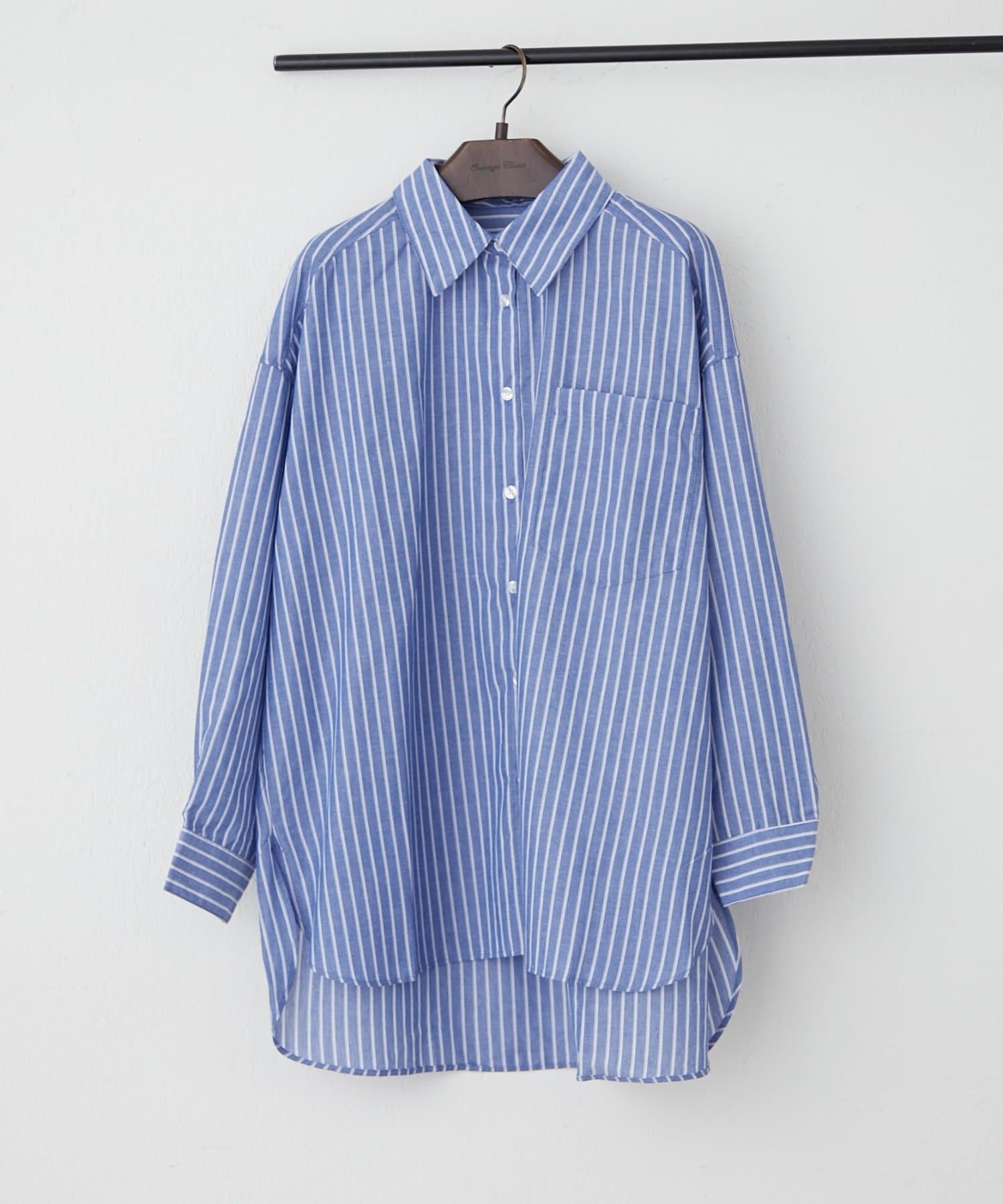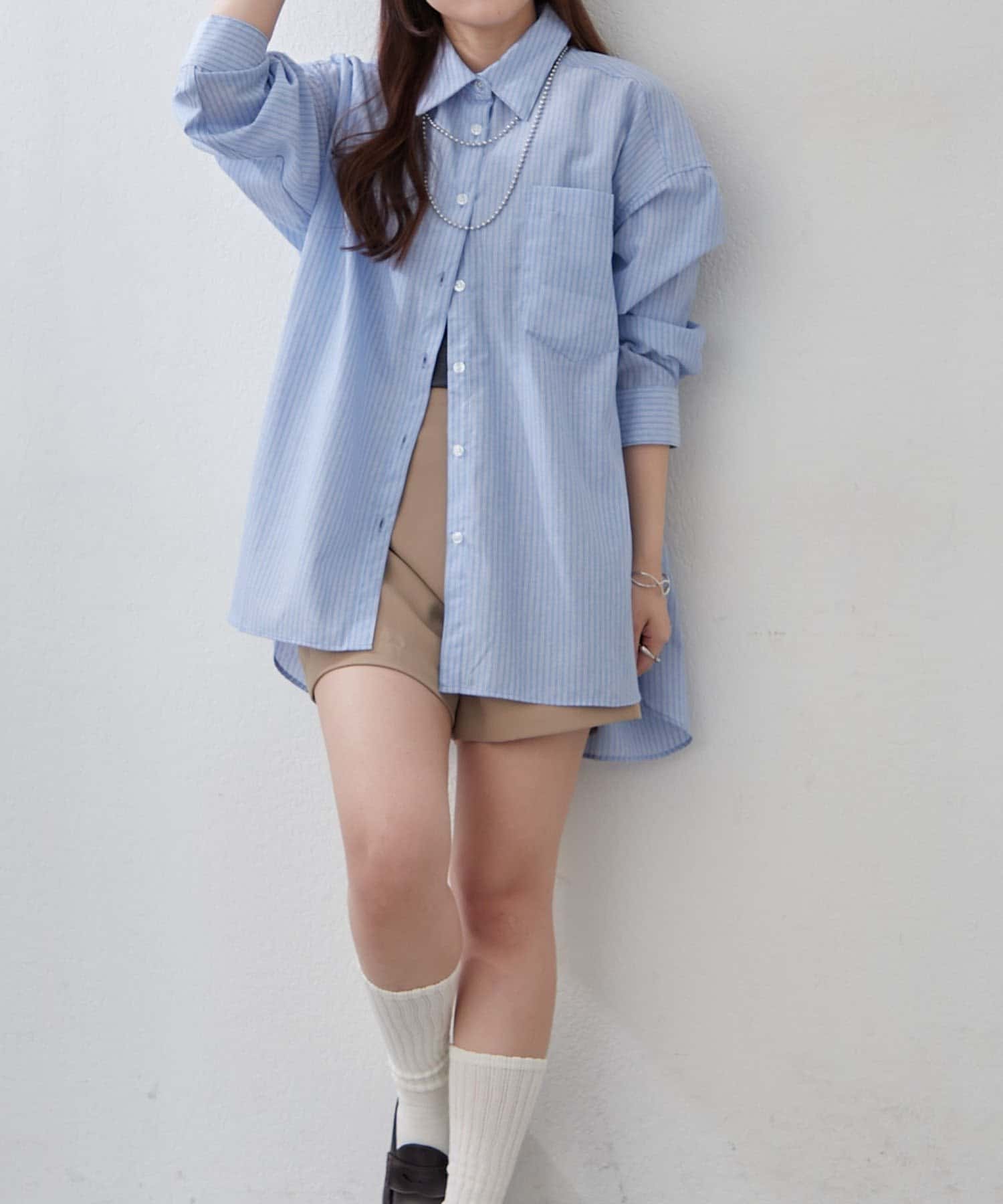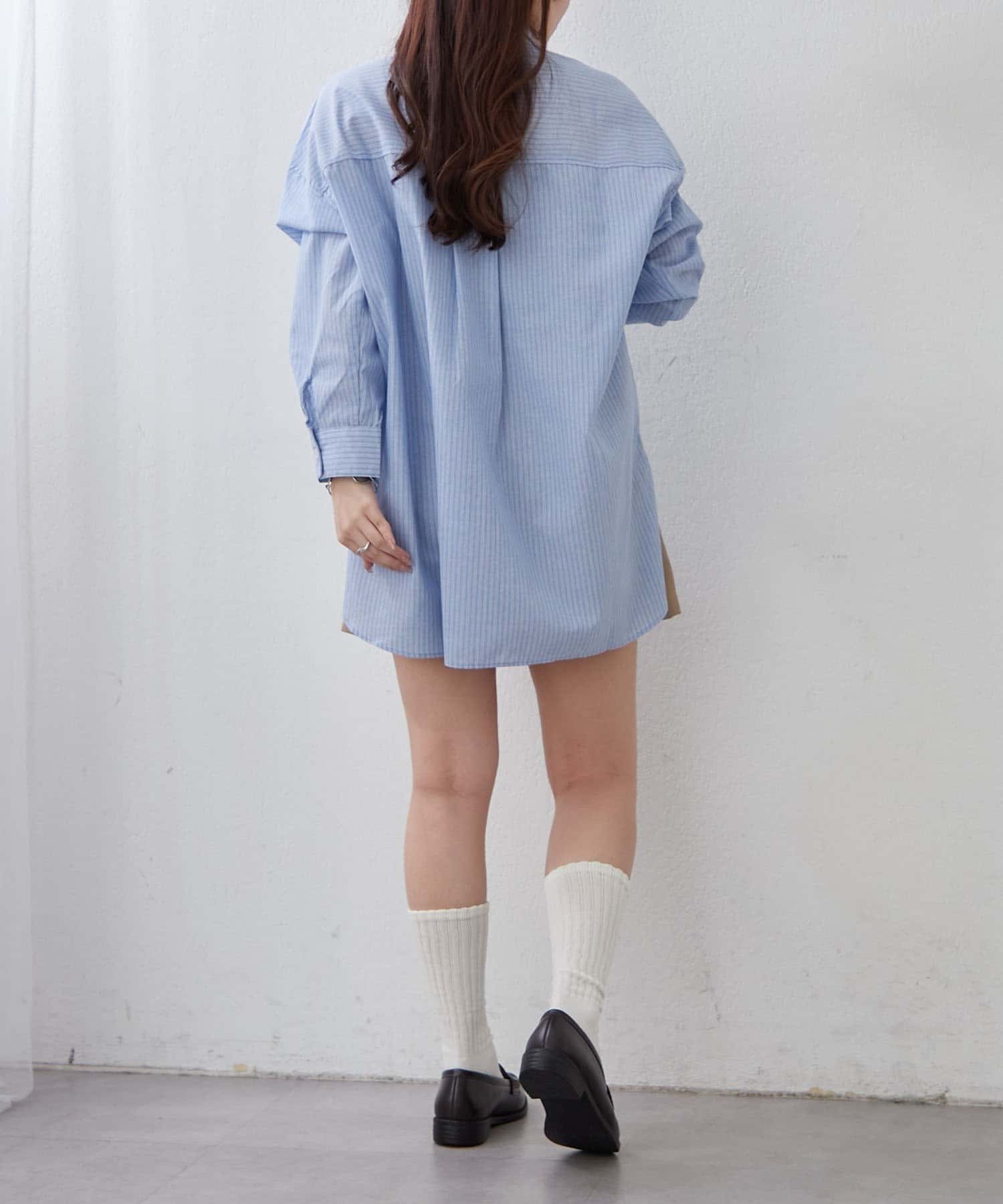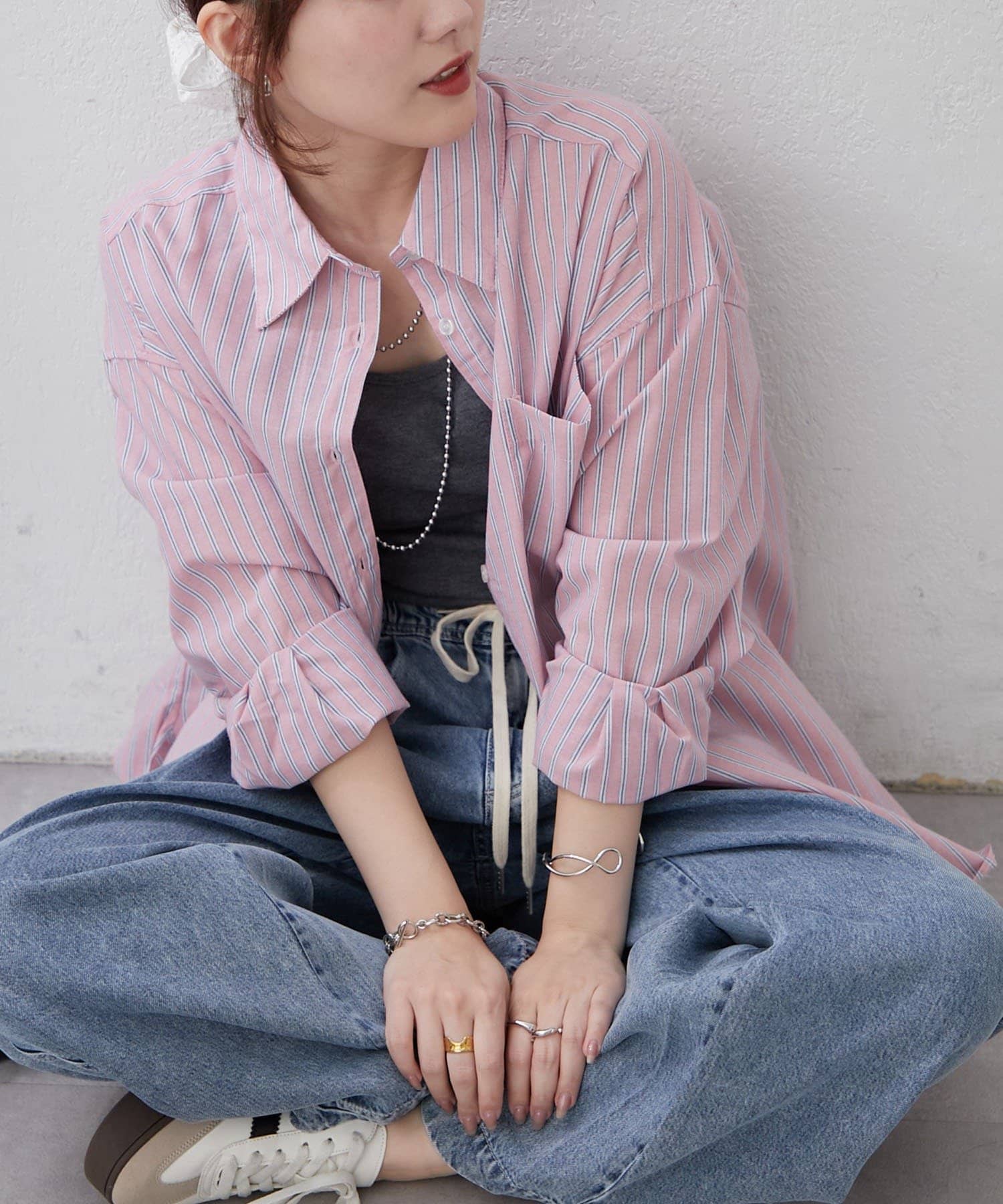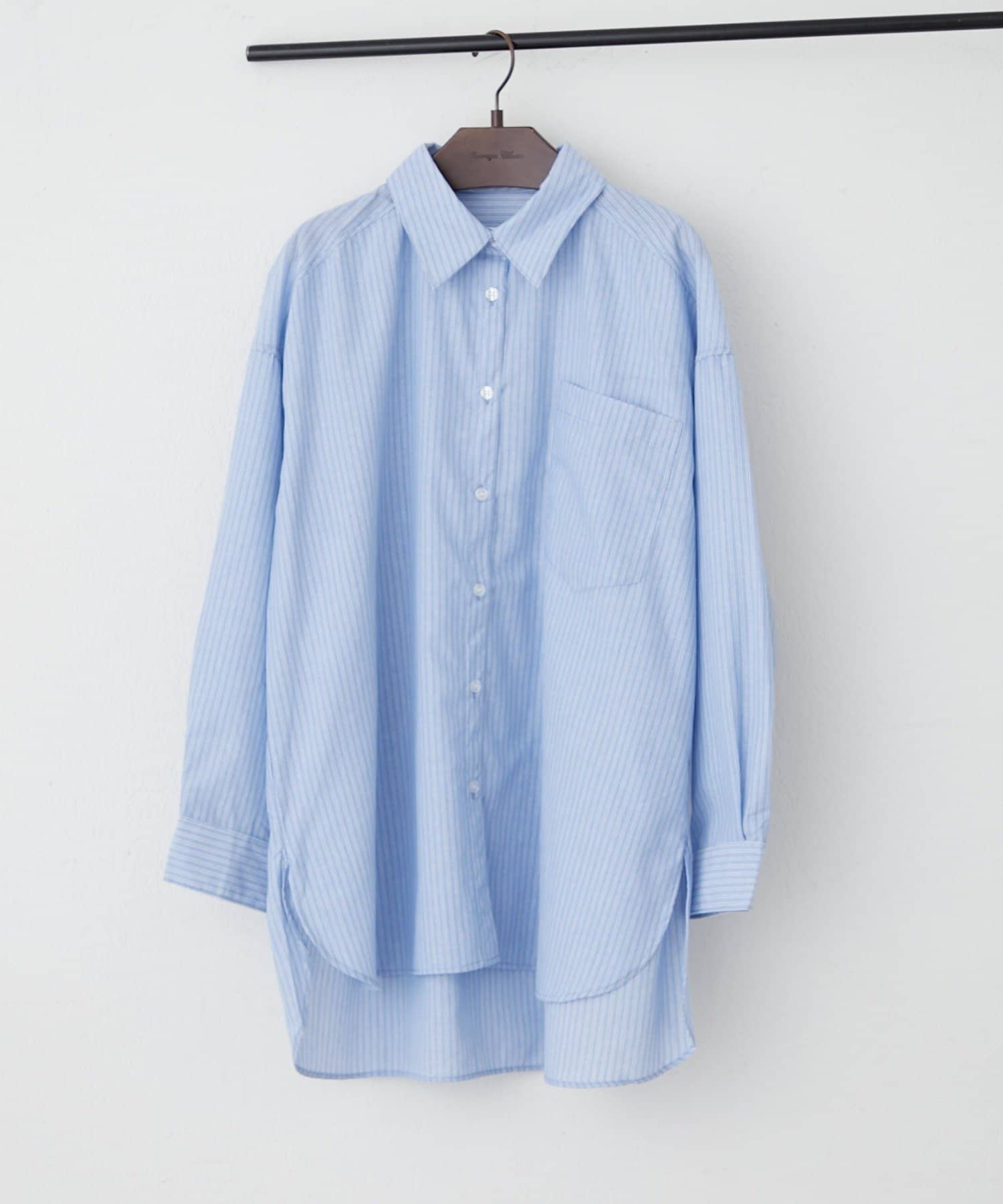 ・さわやかなストライプが目を引く、ゆったりシルエットのシャツ