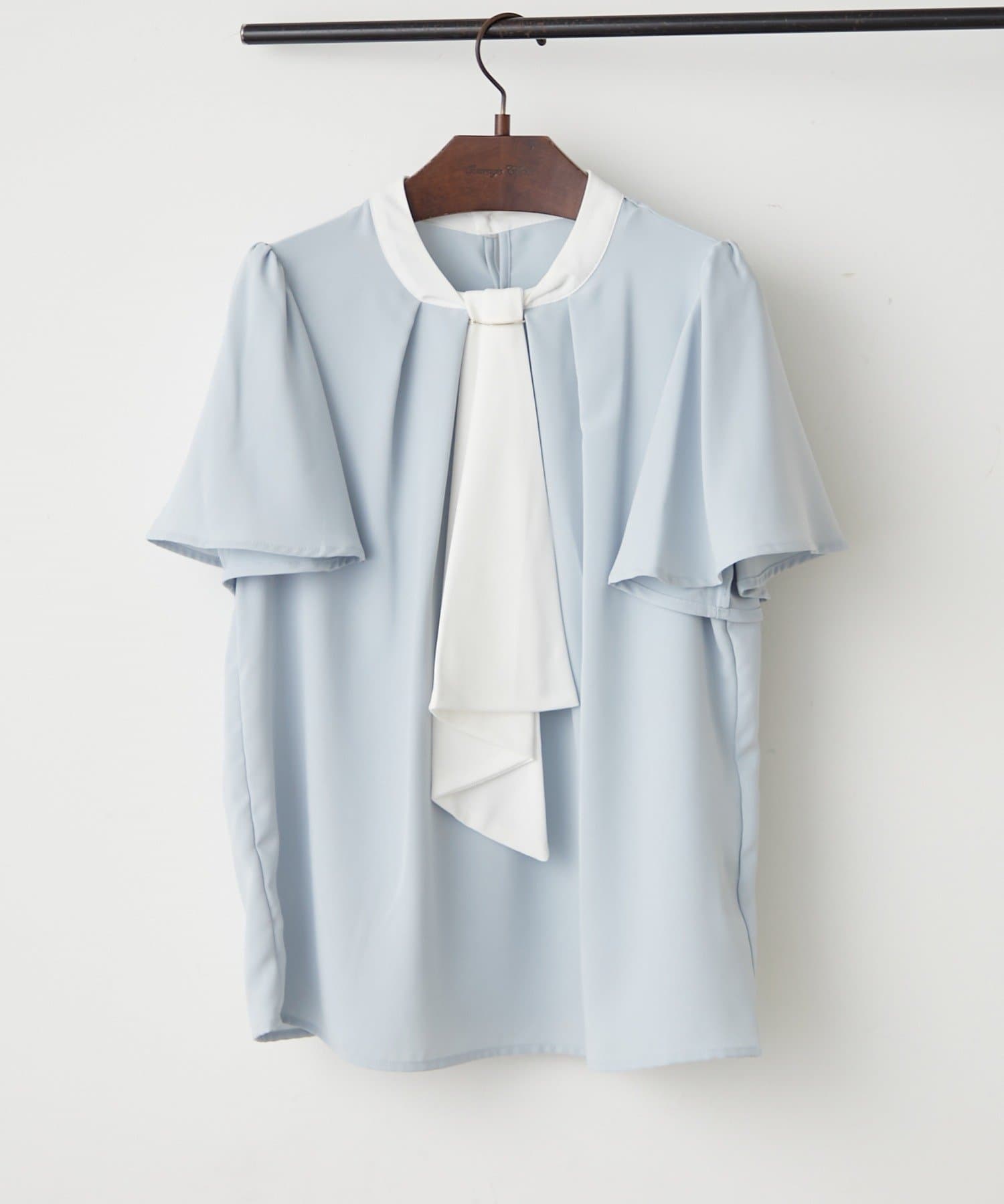 【OUTLET限定】【continuer】襟ぐりチャーム付ボウタイブラウス