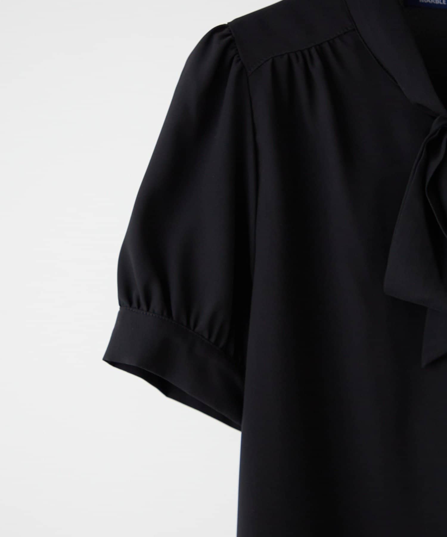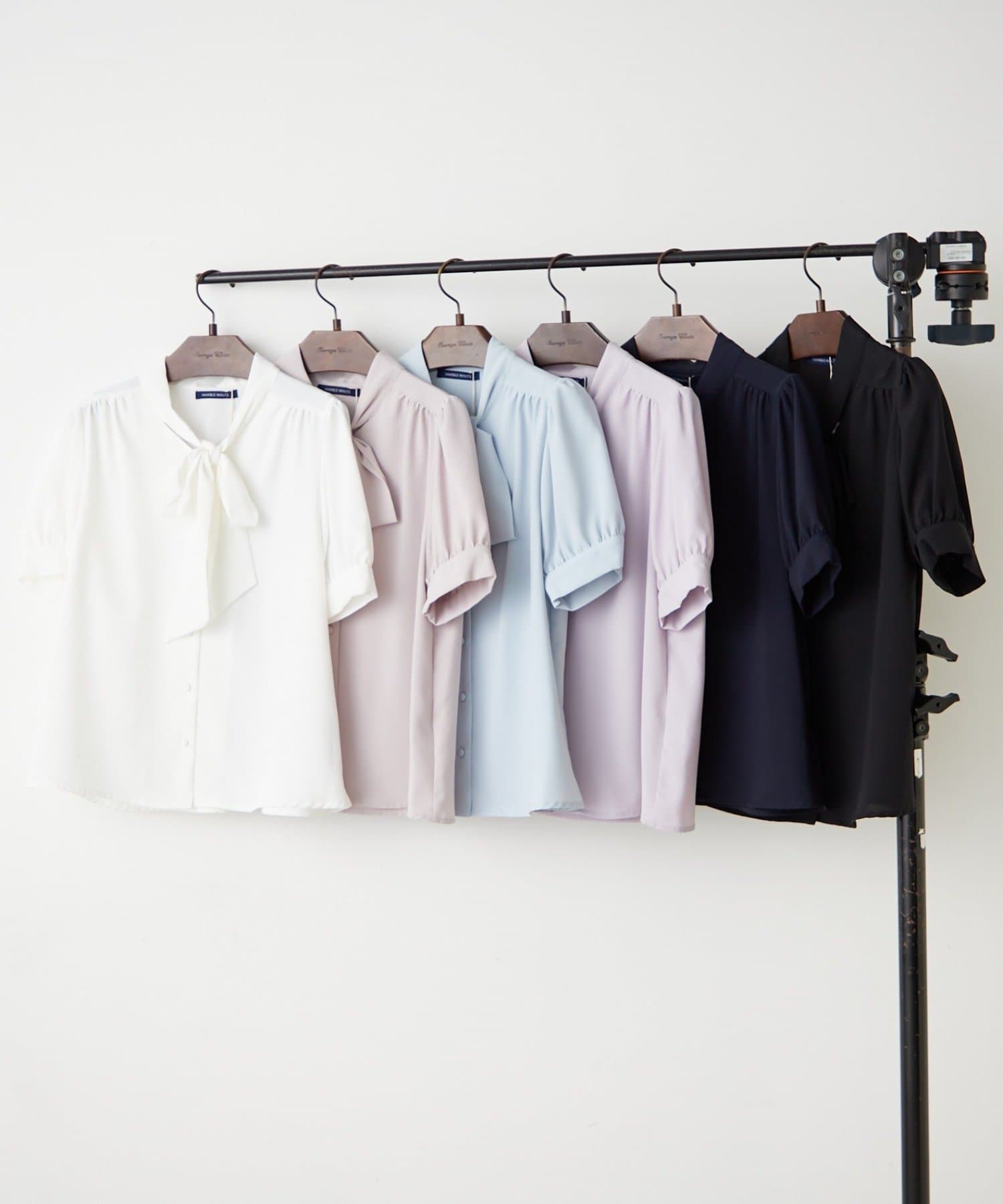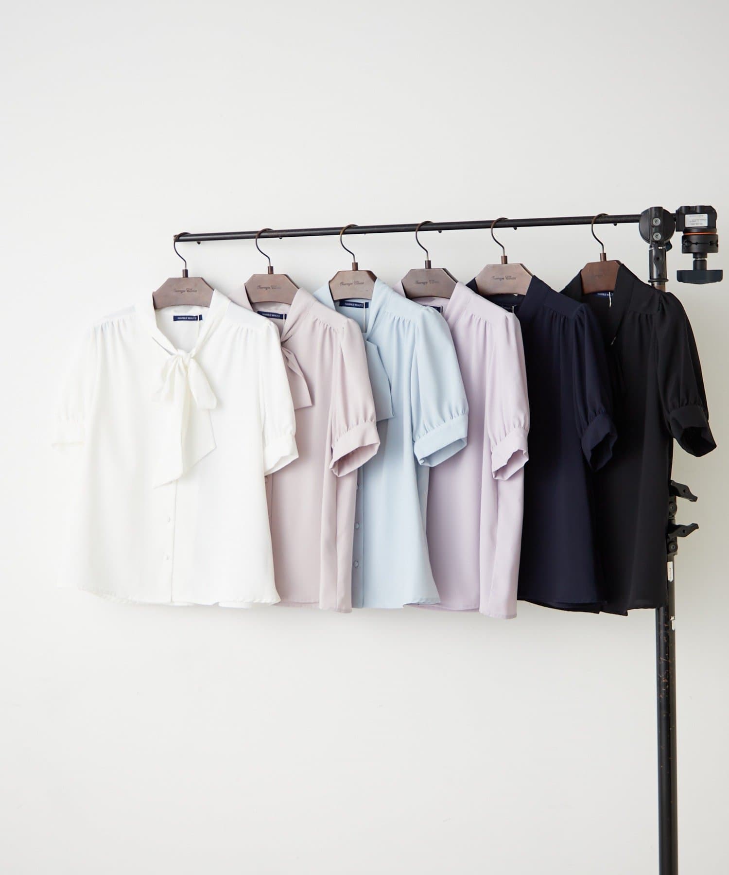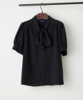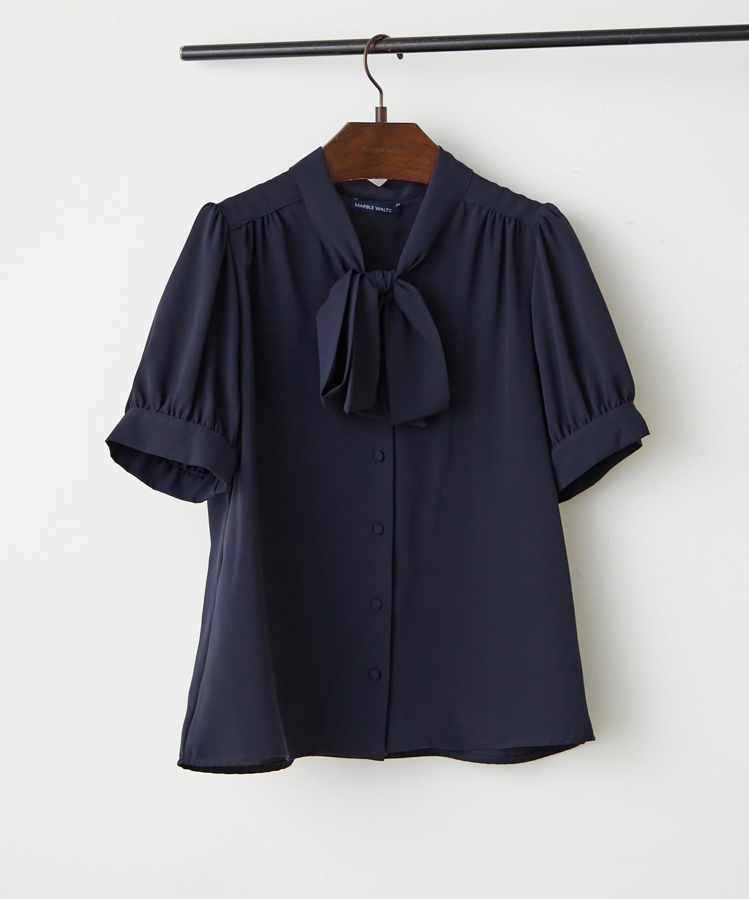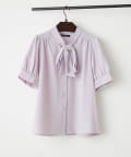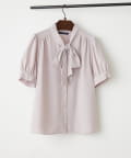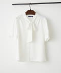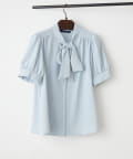 ・存在感のあるリボンがレディな印象の半袖ブラウス