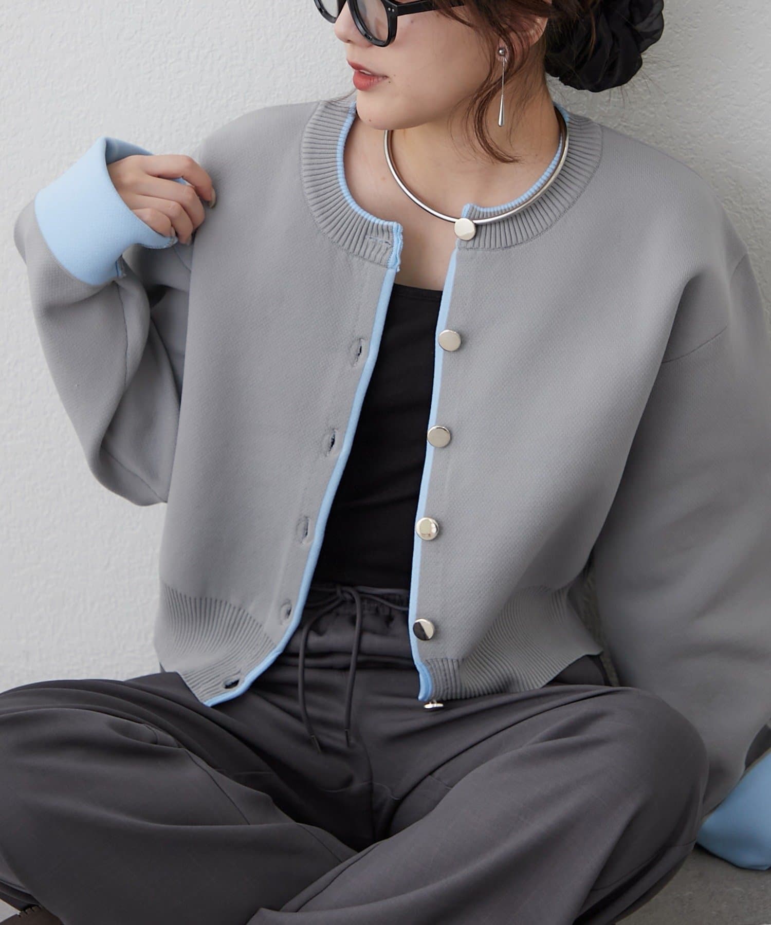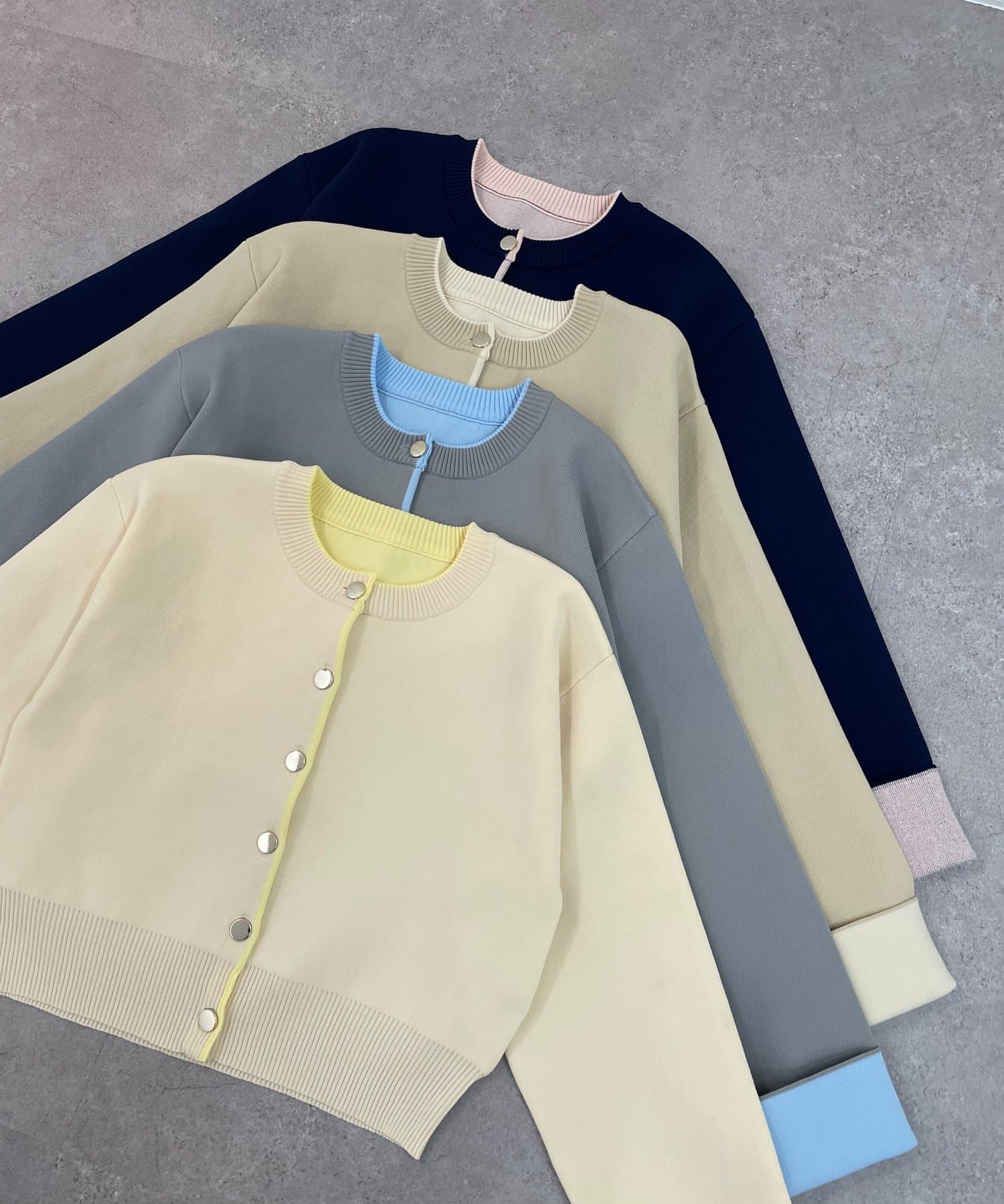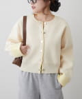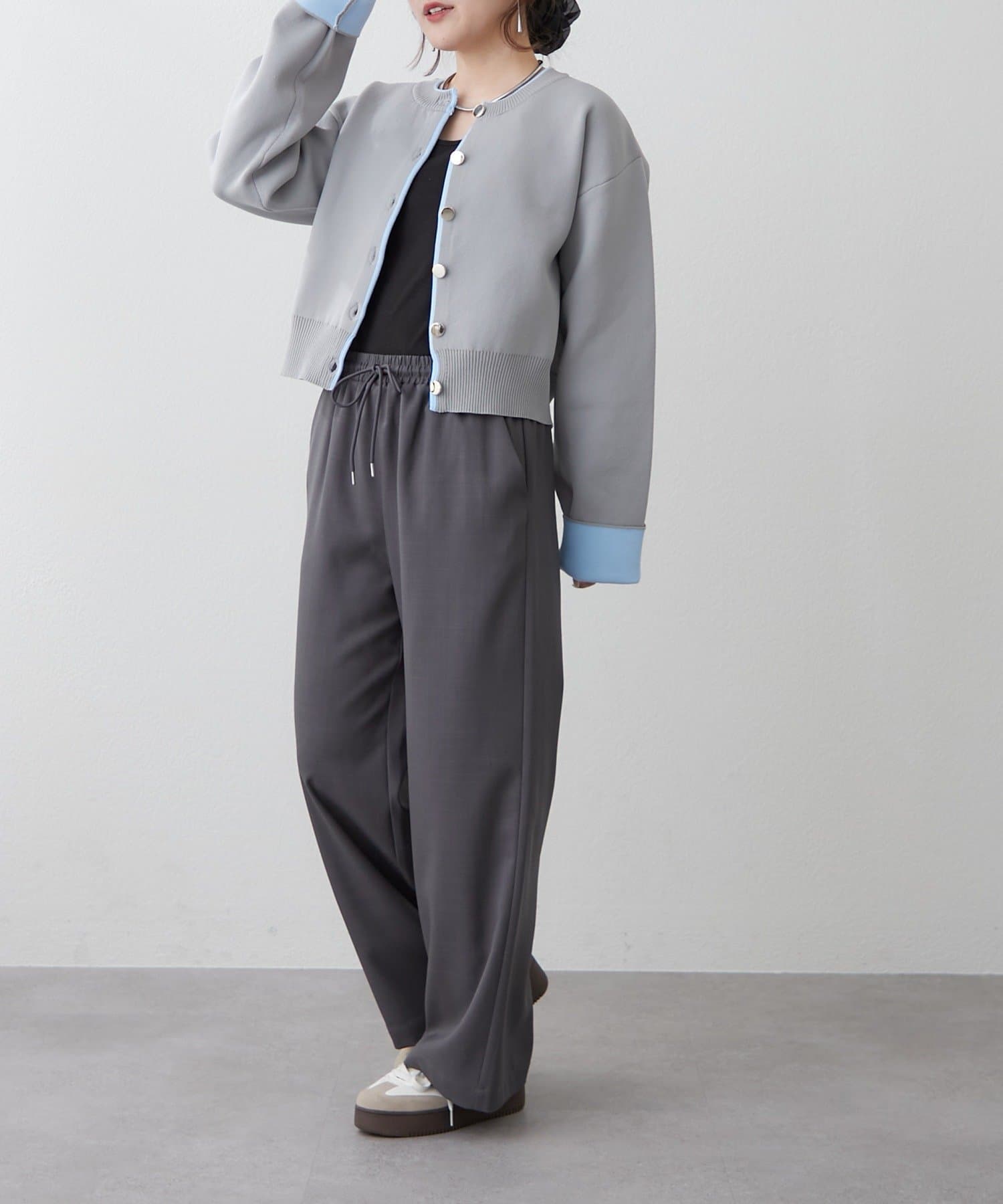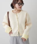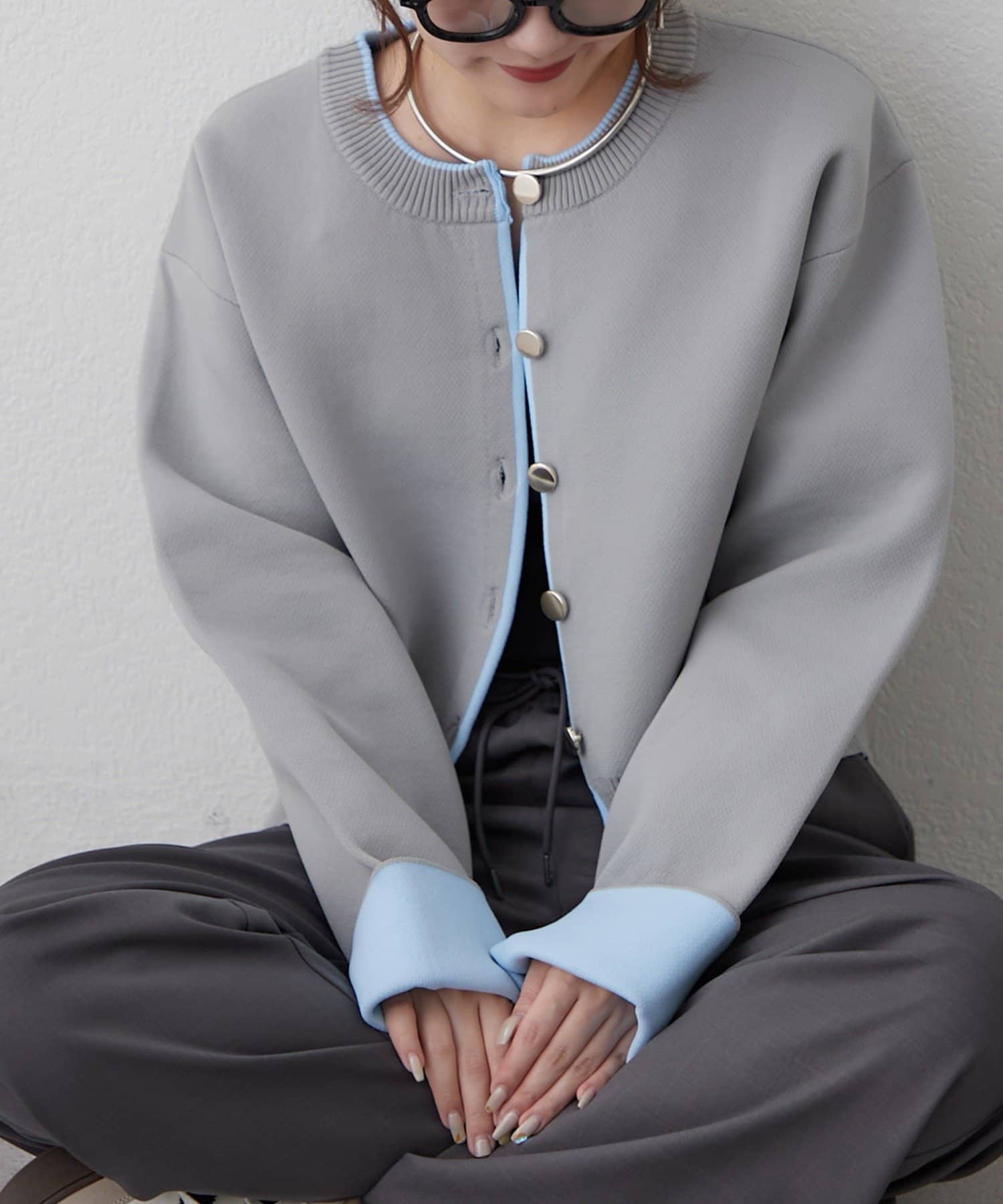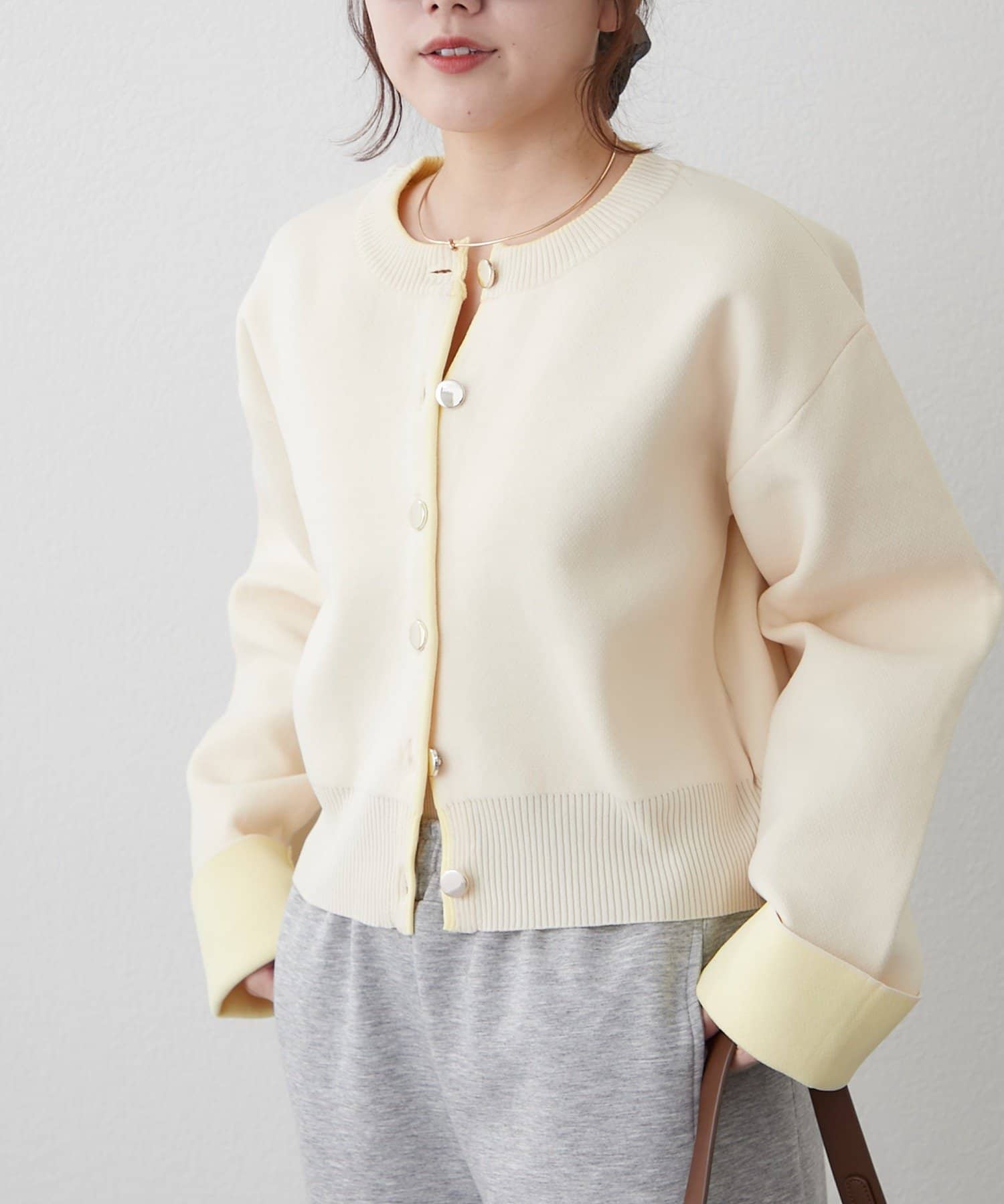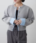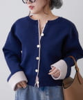 ・袖口だけではなく、前立て部分も配色になっている着映えカーディガン