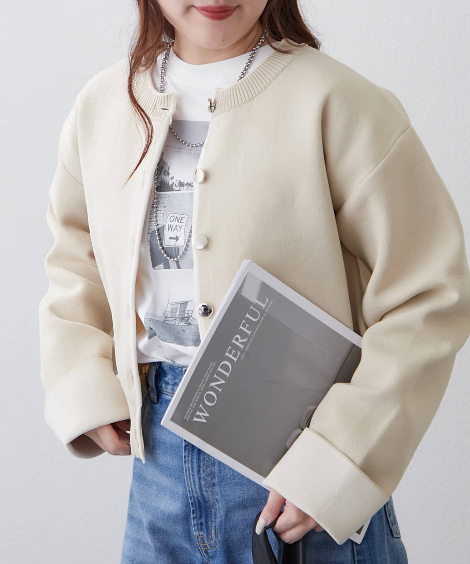 ・スラックス合わせでオフィスカジュアルにも活躍する一枚