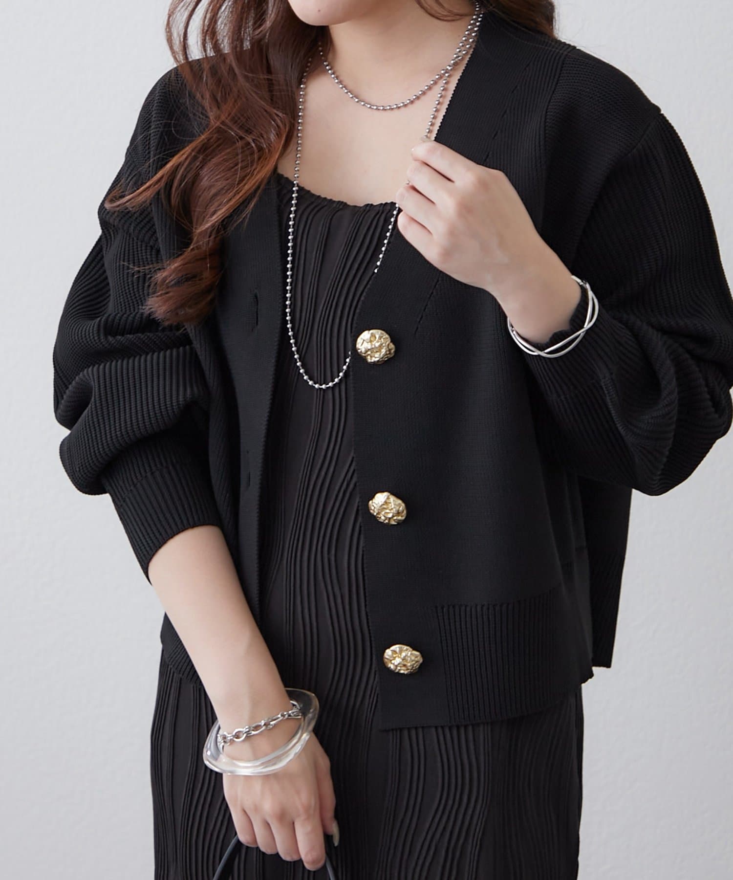 【2デザイン】ニュアンス釦カーディガン