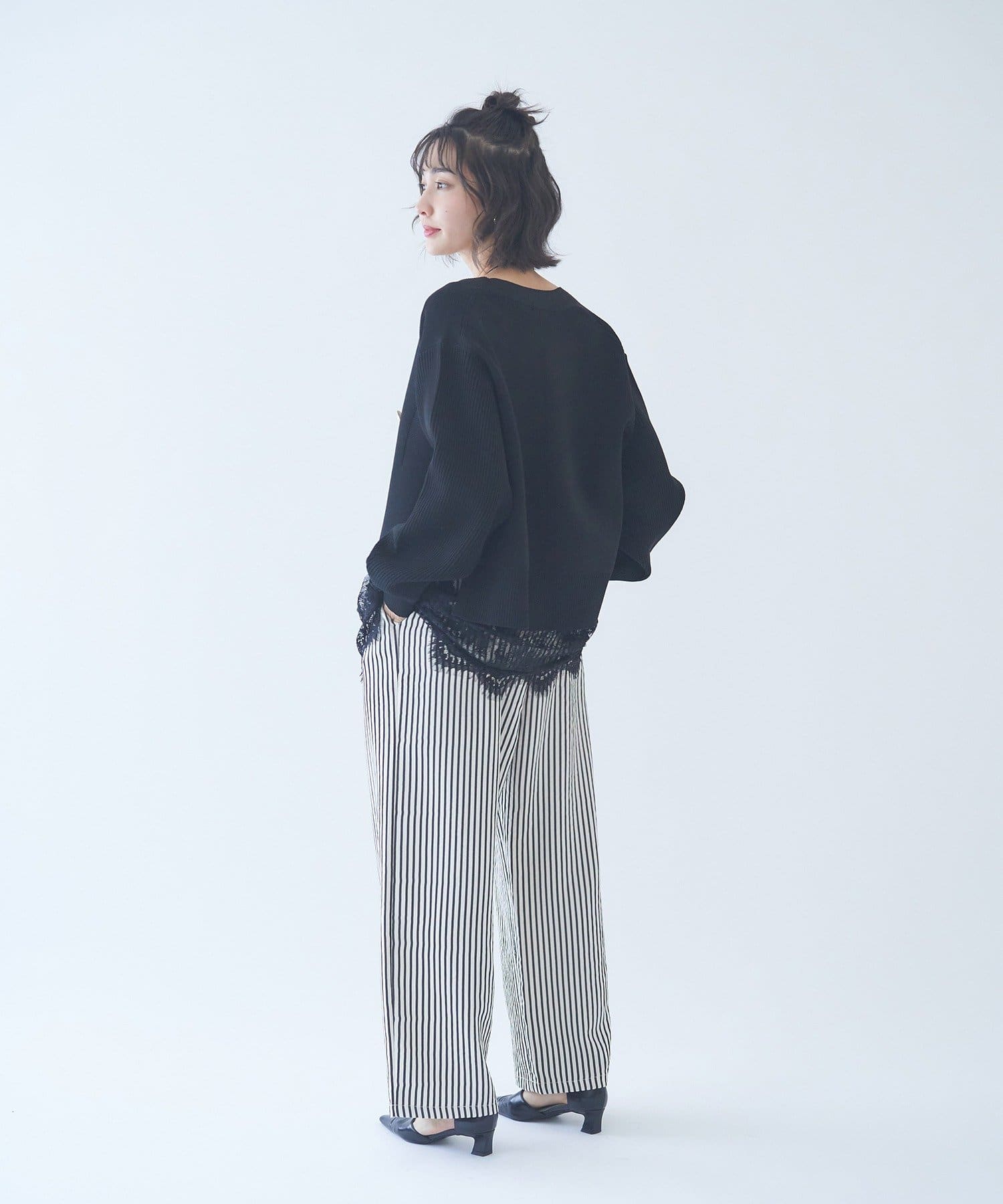 ・ナロースカートでフェミニンな印象のコーデも◎
