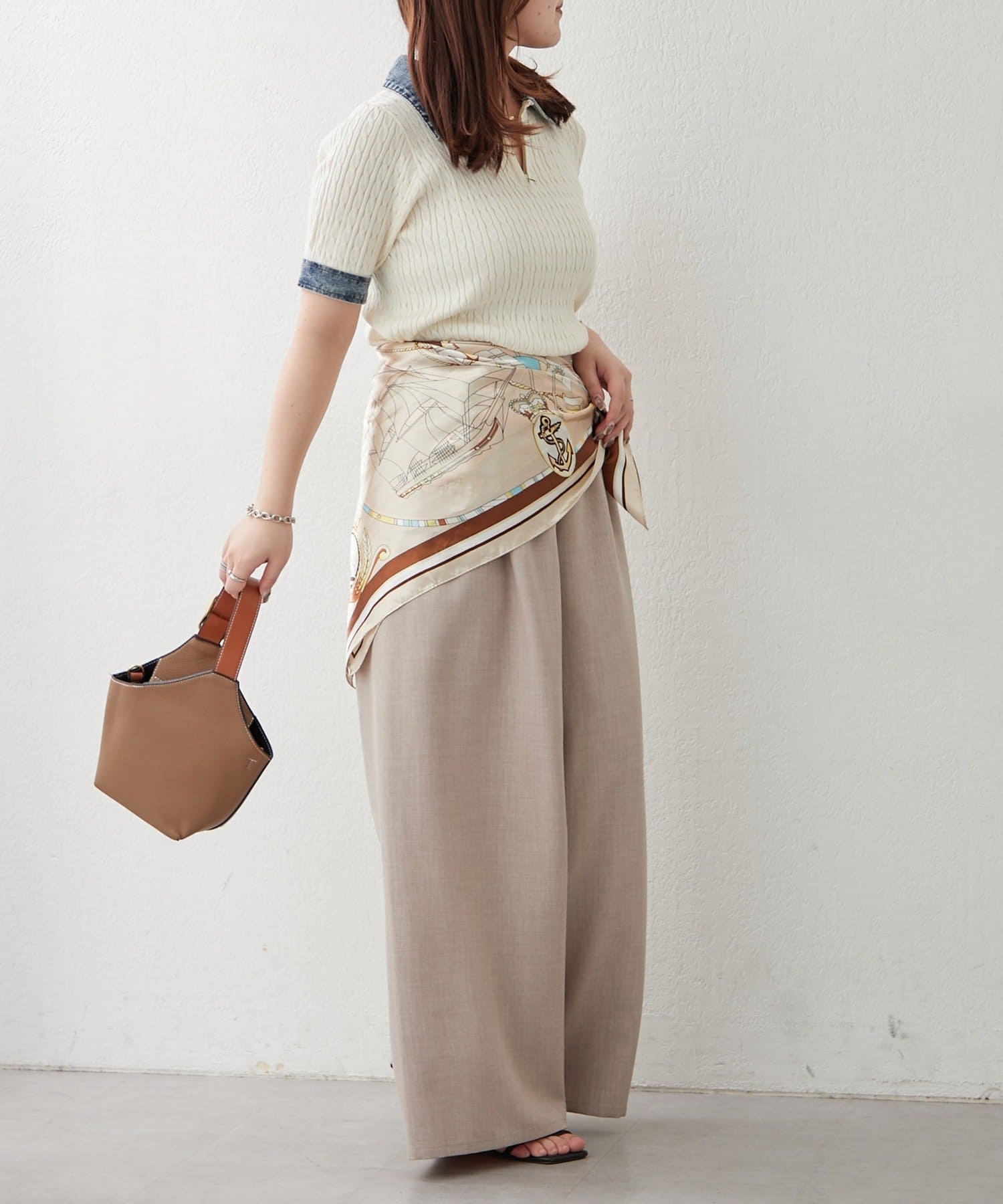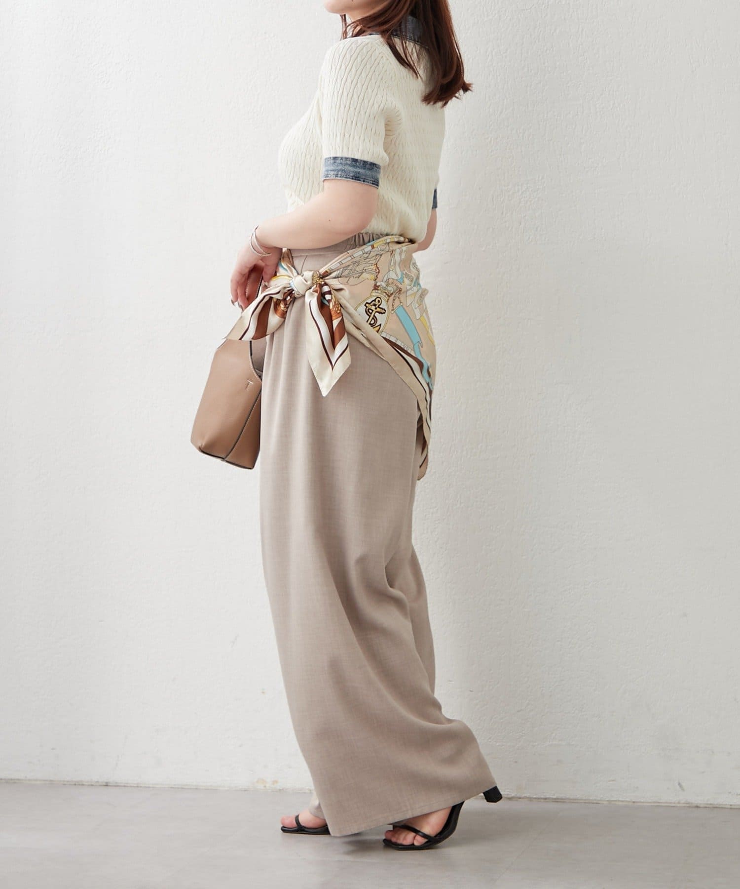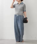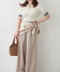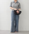 ・きれいめパンツと合わせて、オフィスにも着ていけるきちんとスタイルに。パンプスを合わせて、上品さを演出