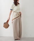 ・フレアスカートと合わせて、フェミニンカジュアルな着こなしに。足元はブーツで、大人っぽさをプラス