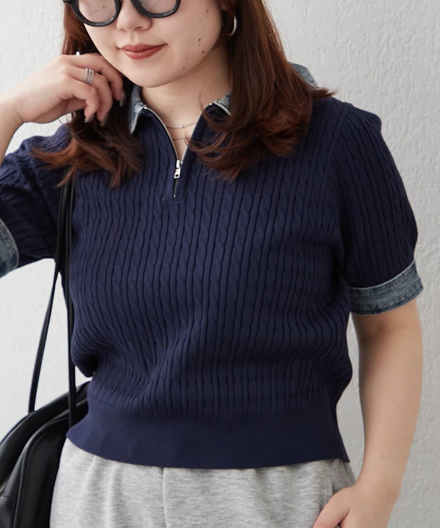 【きれいめカジュアルマストアイテム】デニム切替ハーフZIPプルオーバー