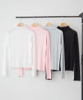 ・ボトルネックタイプなのでニットやスウェットの襟ぐりから出すレイヤードコーデがおすすめ