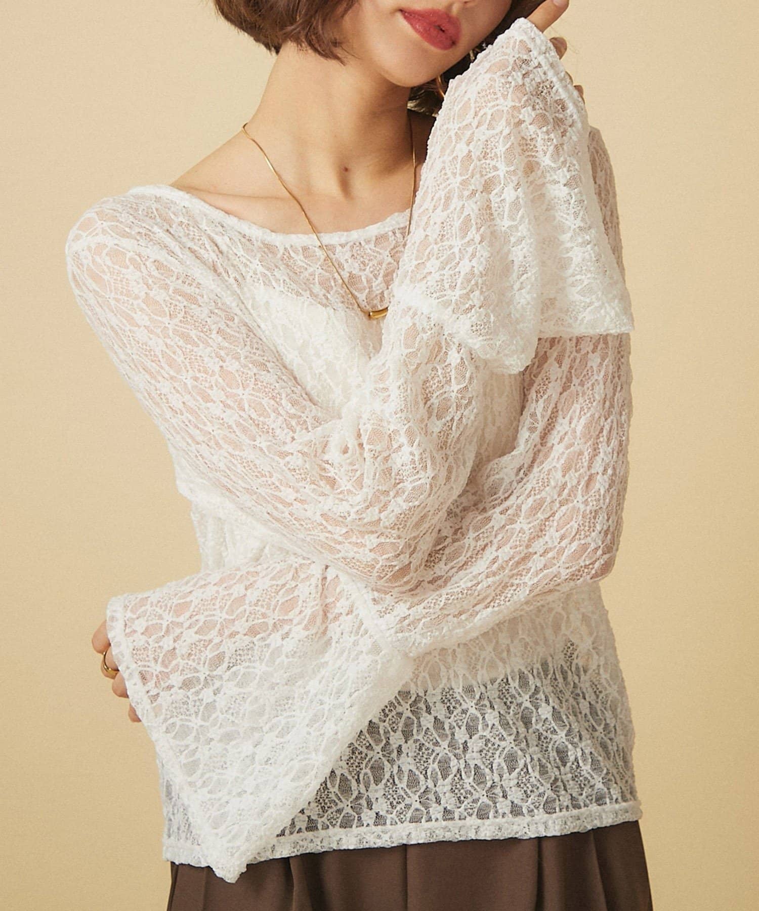 【レディライクなきこなしに】レースフレアー袖プルオーバー