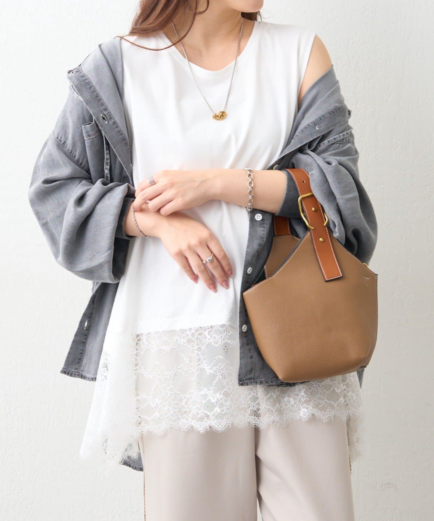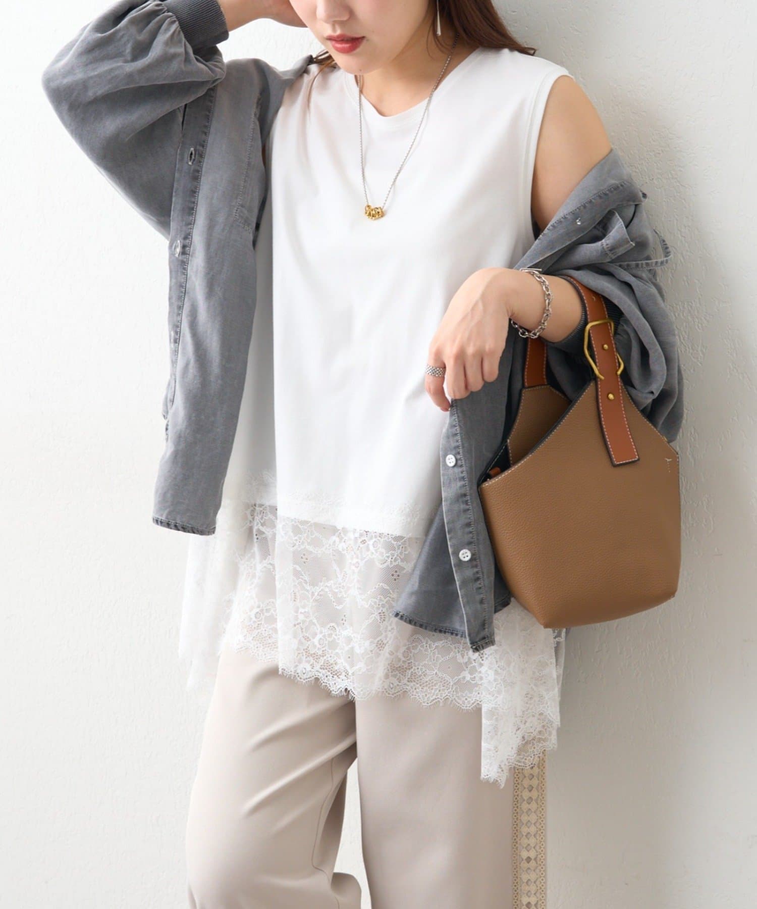 ・シンプルなシルエットに、繊細なレースがフェミニンなアクセントを添えるタンクトップ