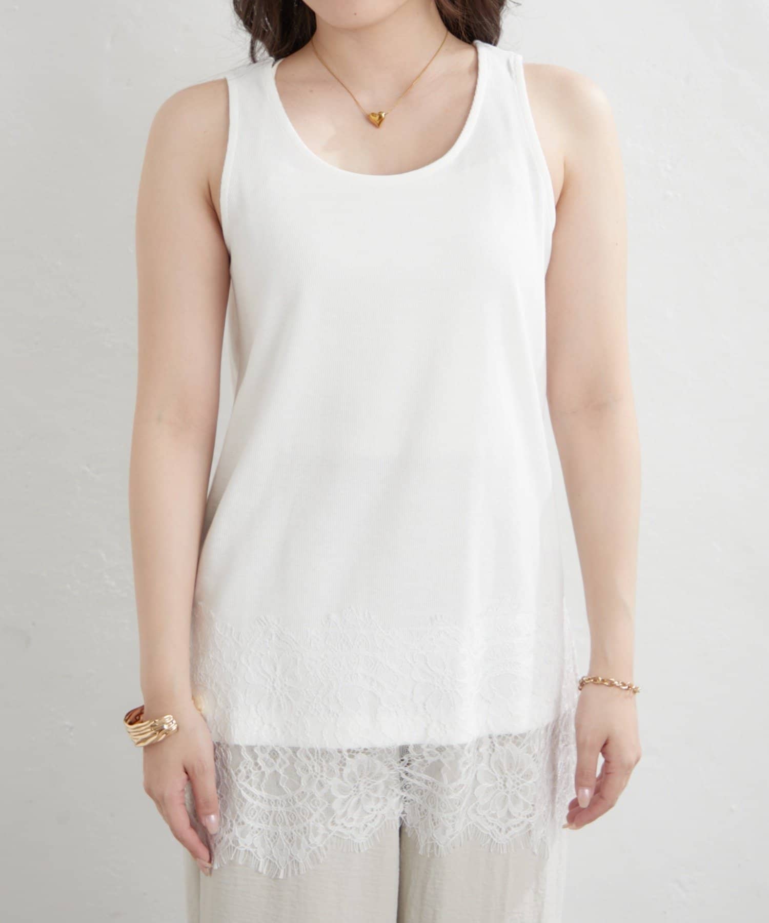 Remind me and forever(リマインドミーアンドフォーエバー) 【人気デザイン、レイヤードにおすすめ!】リブ裾レースタンク