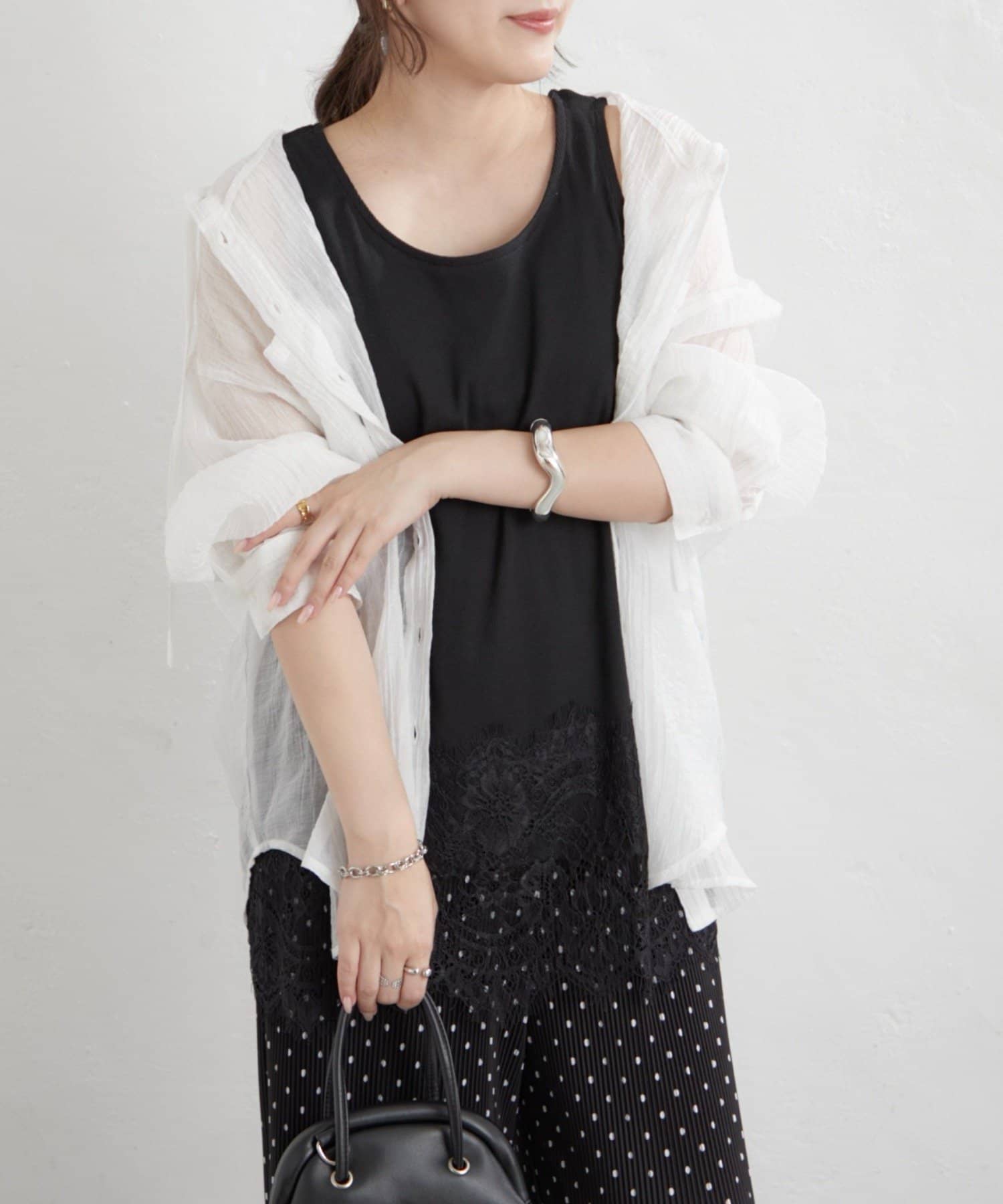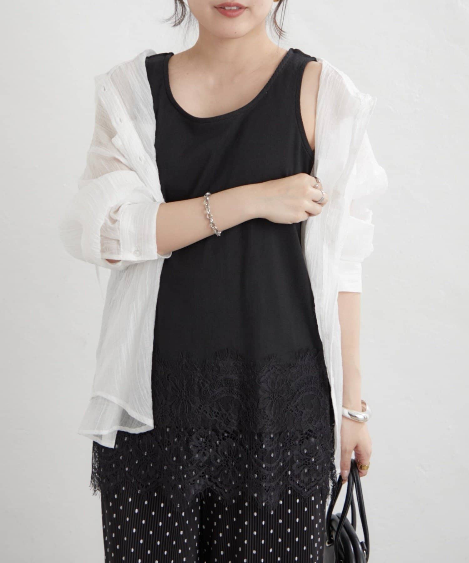 ・今トレンドの、裾からレースをのぞかせるスタイリングにもぴったりなタンクトップ