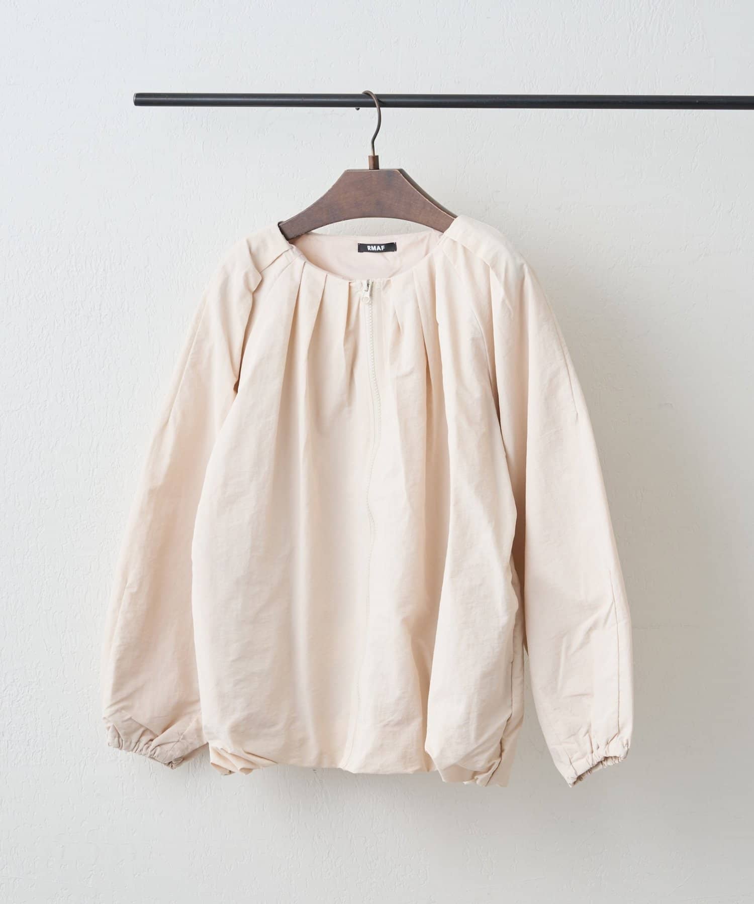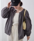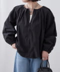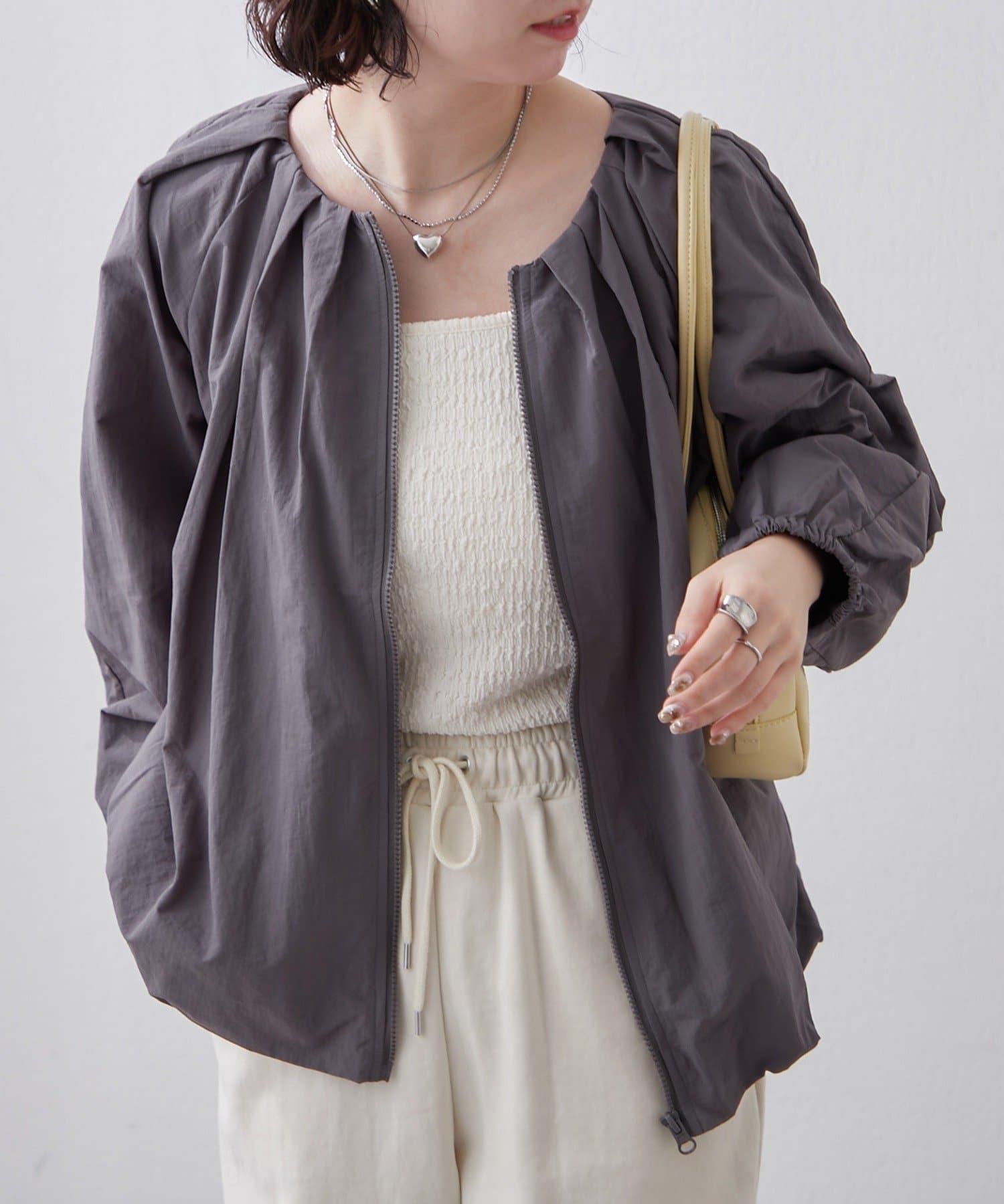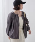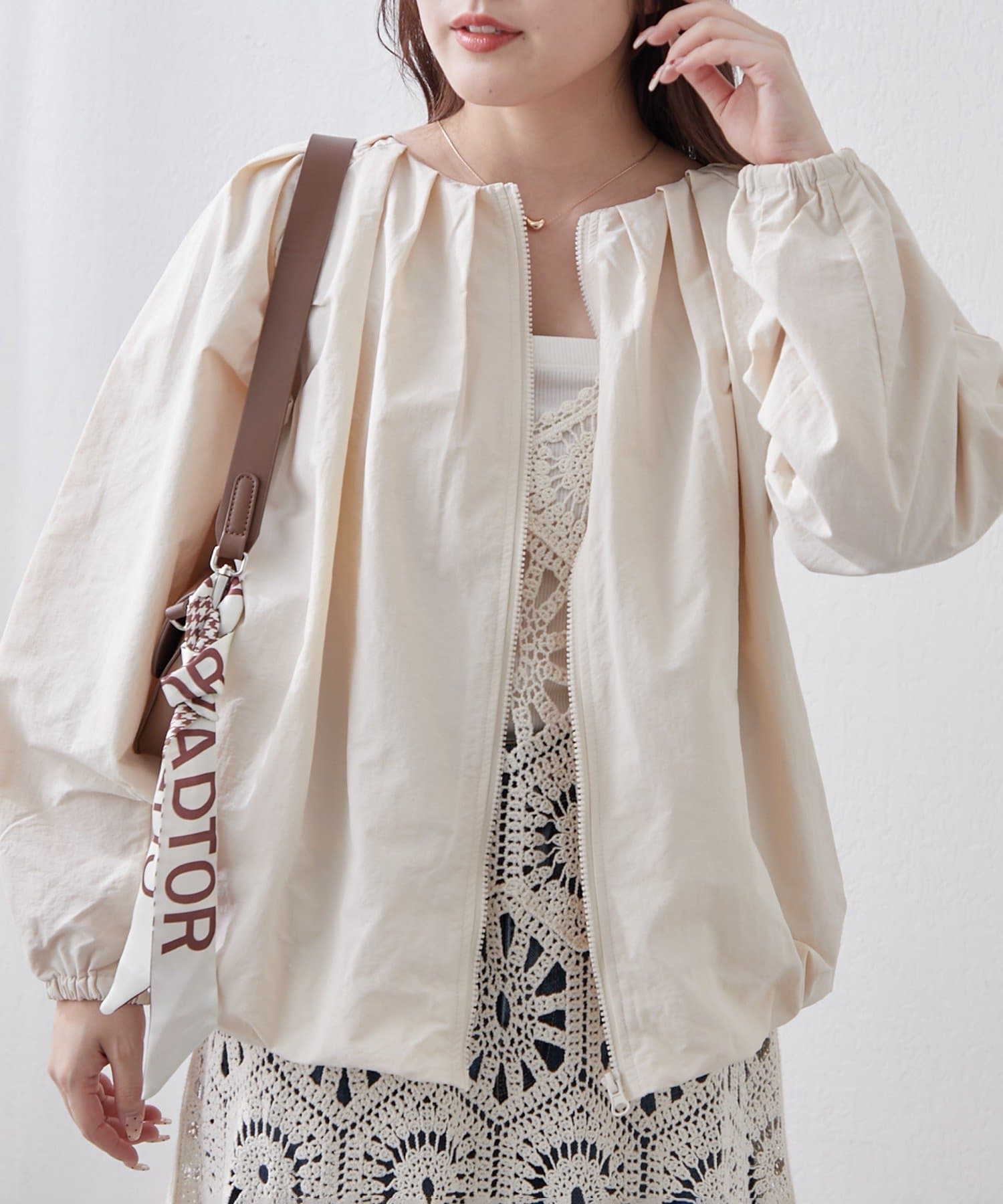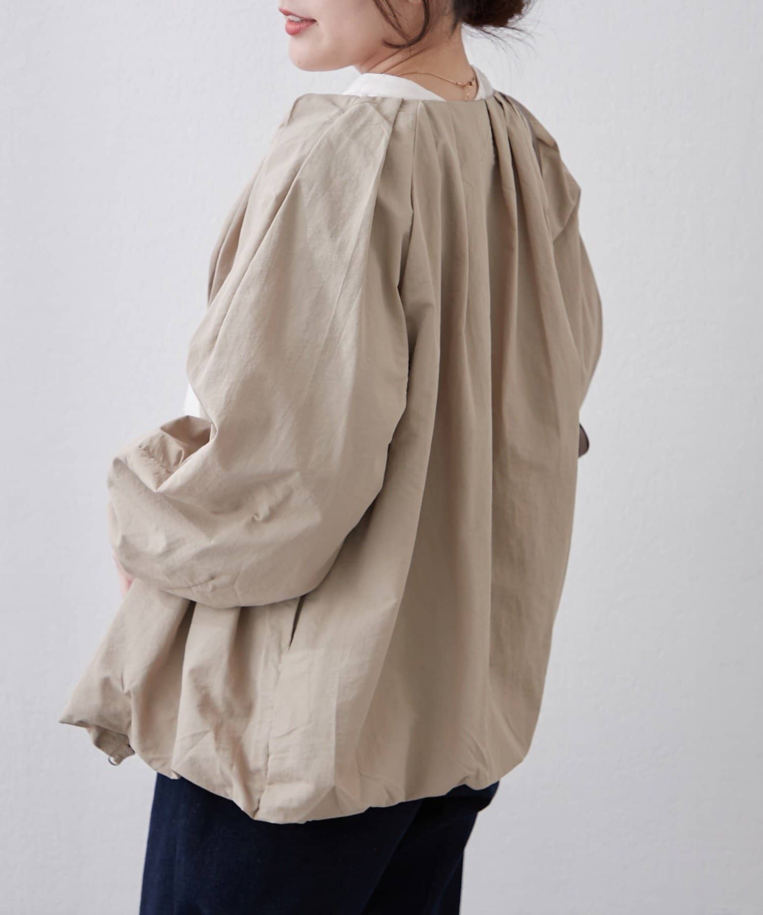 ・ふんわりとしたシルエットが魅力のタックブルゾン。ネックラインと袖口のギャザーが、女性らしい柔らかな印象をプラス