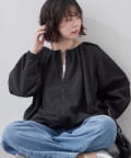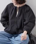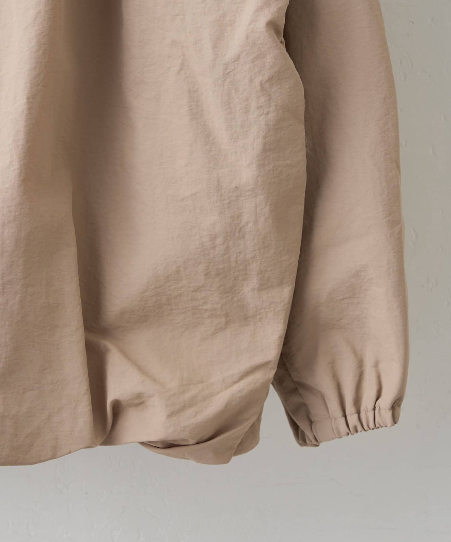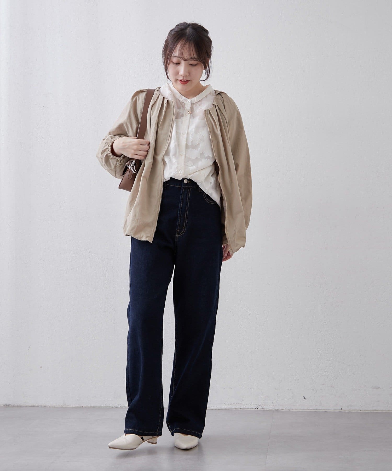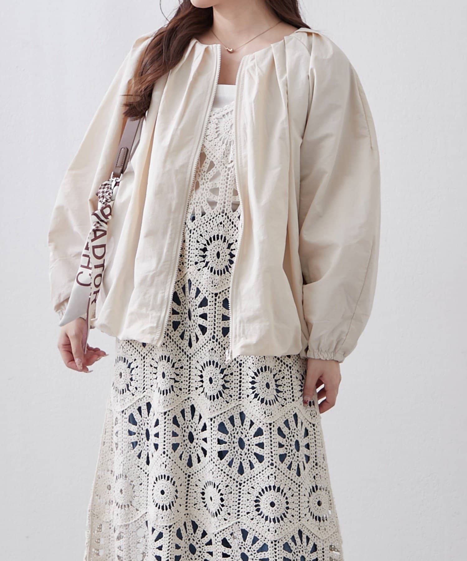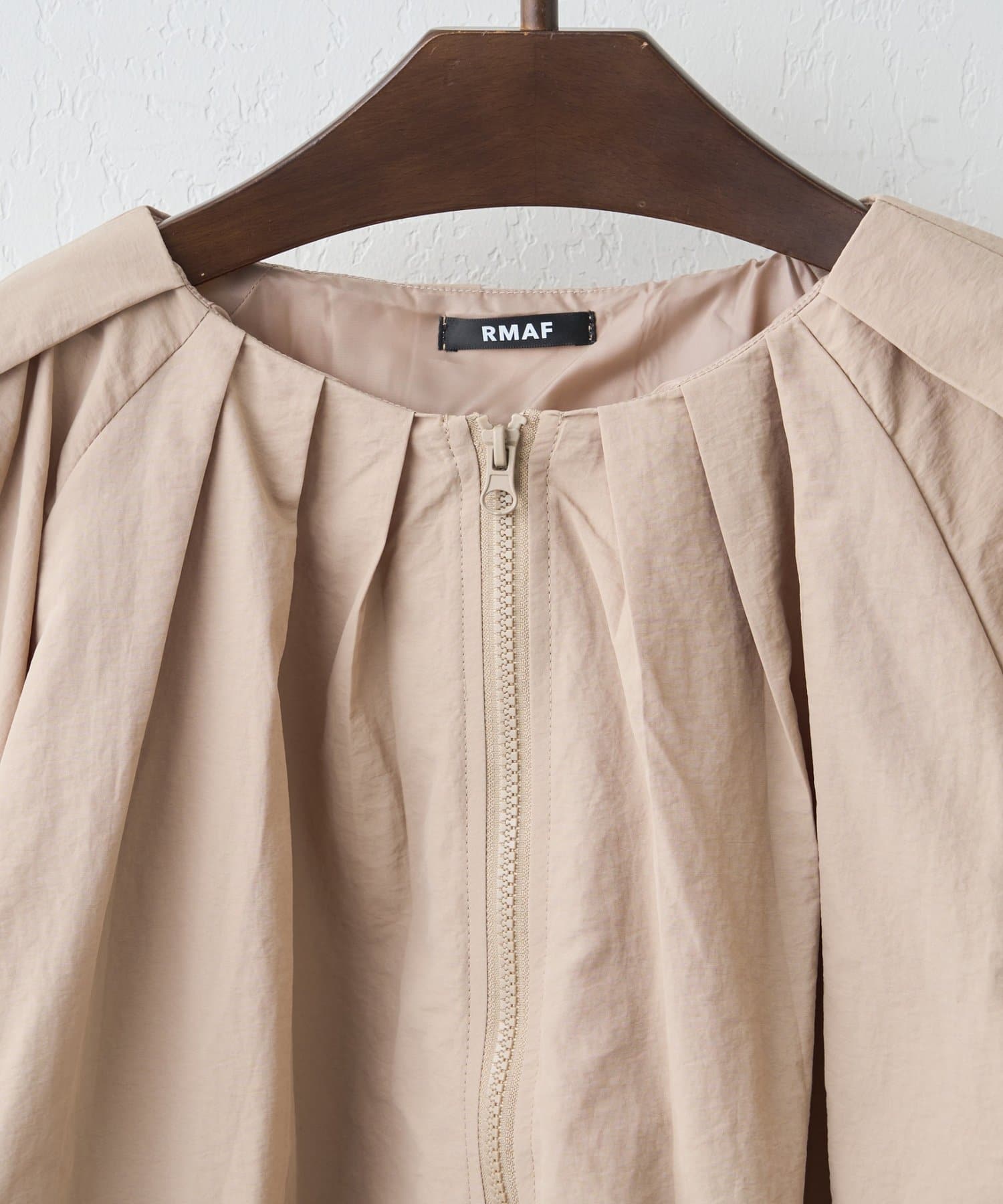 ・ふんわりとしたシルエットが魅力のタックブルゾン。ネックラインと袖口のギャザーが、女性らしい柔らかな印象をプラス