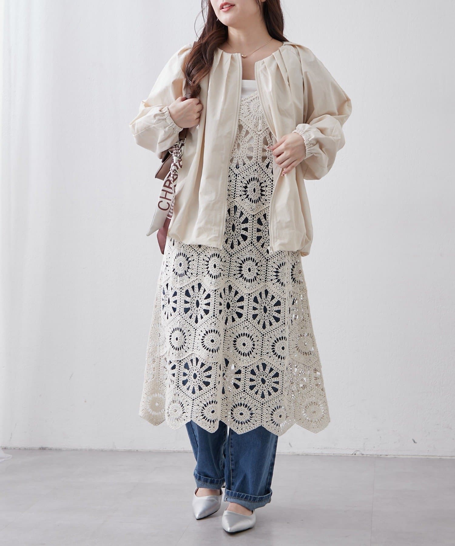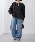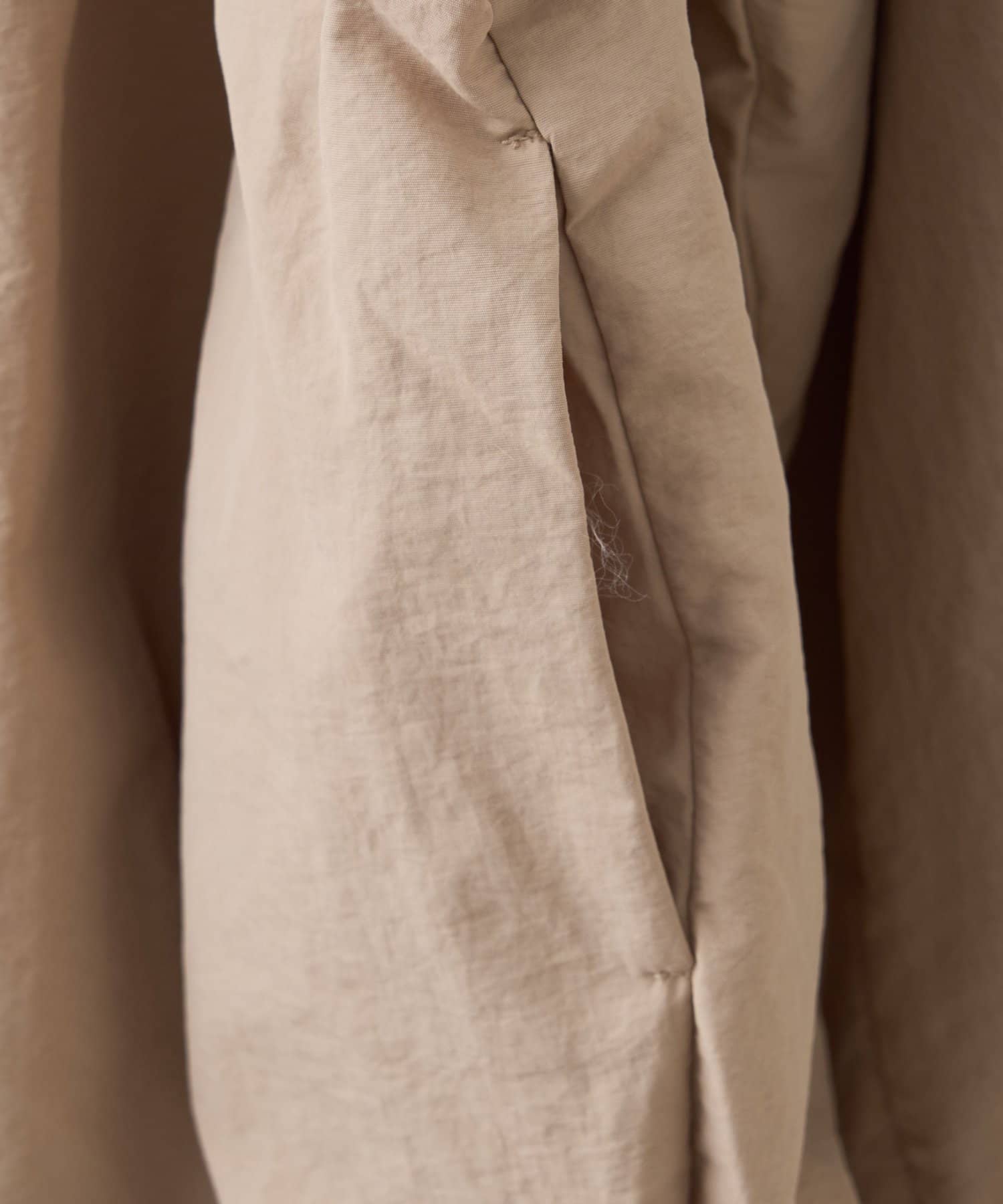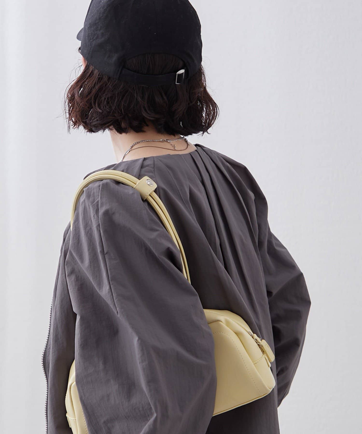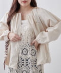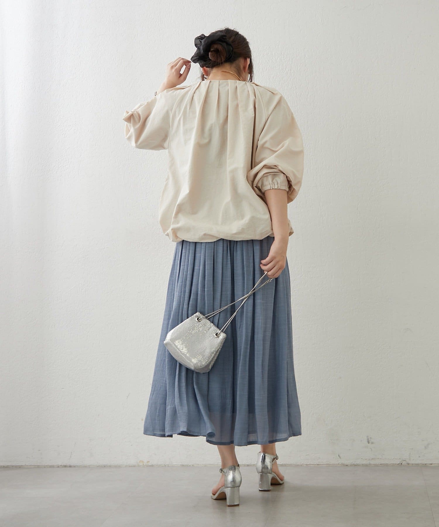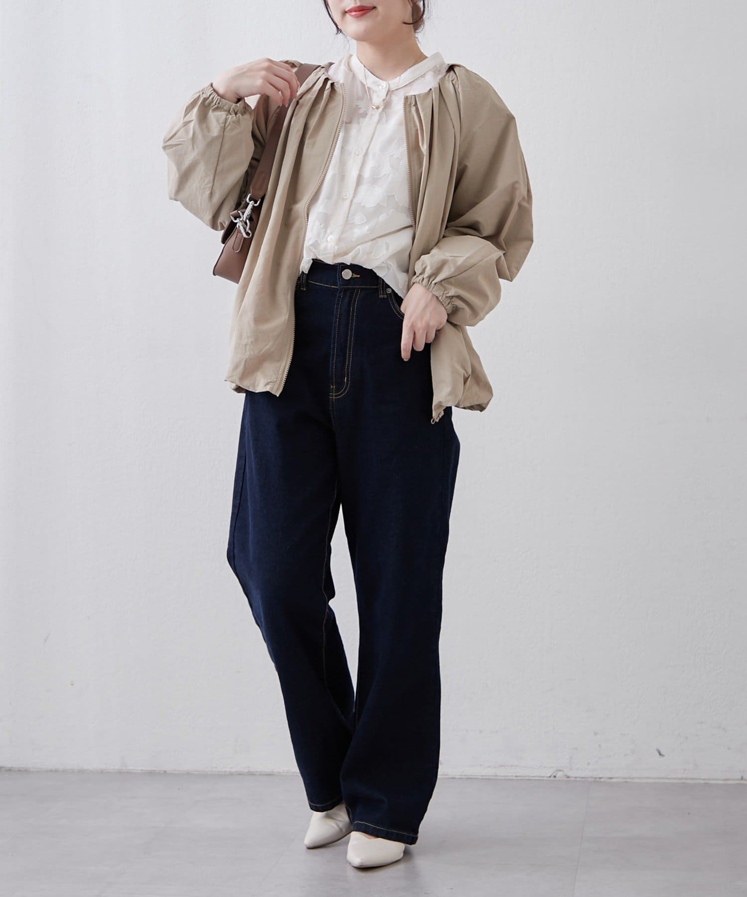 ・ふんわりとしたシルエットが魅力のタックブルゾン。ネックラインと袖口のギャザーが、女性らしい柔らかな印象をプラス