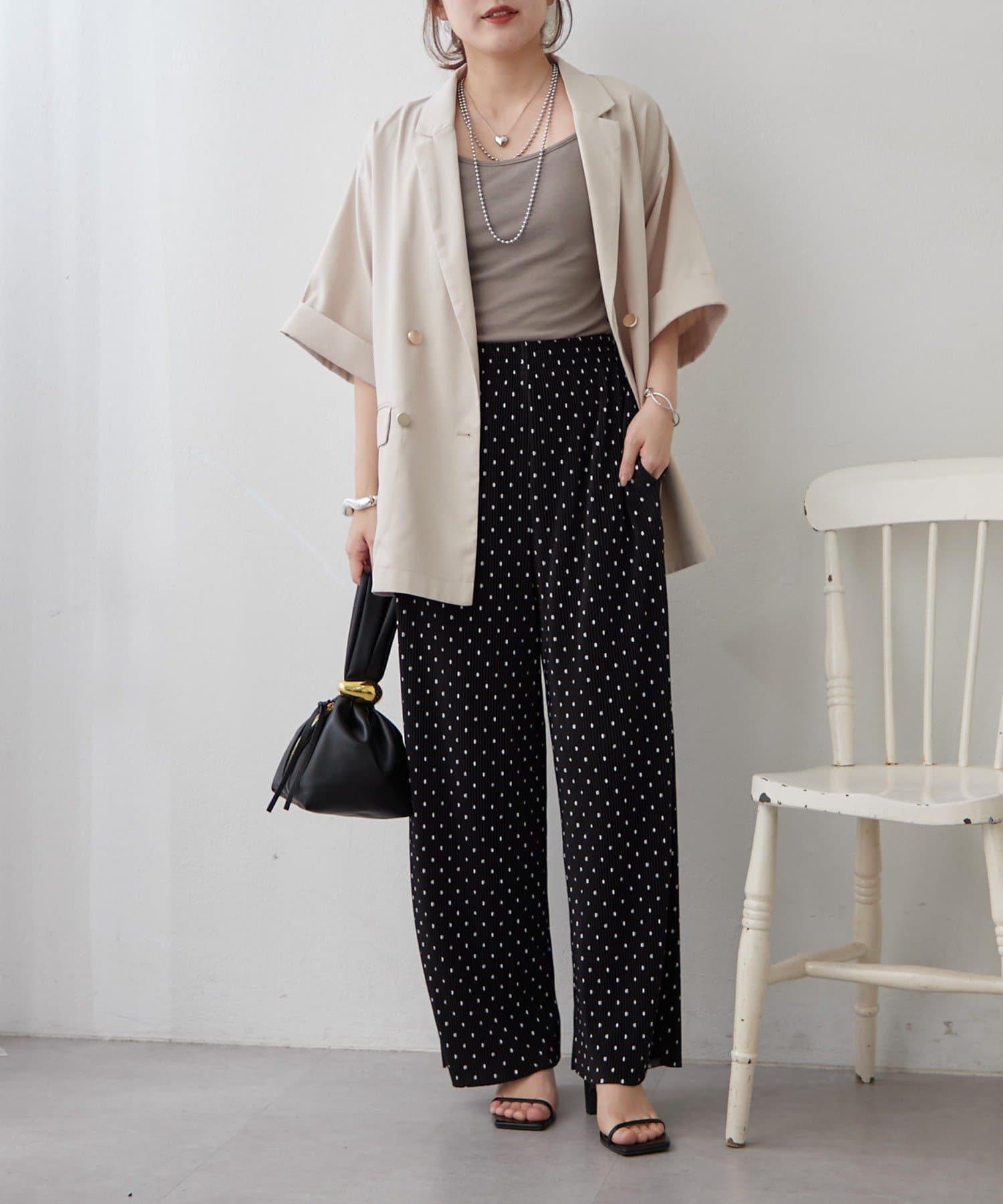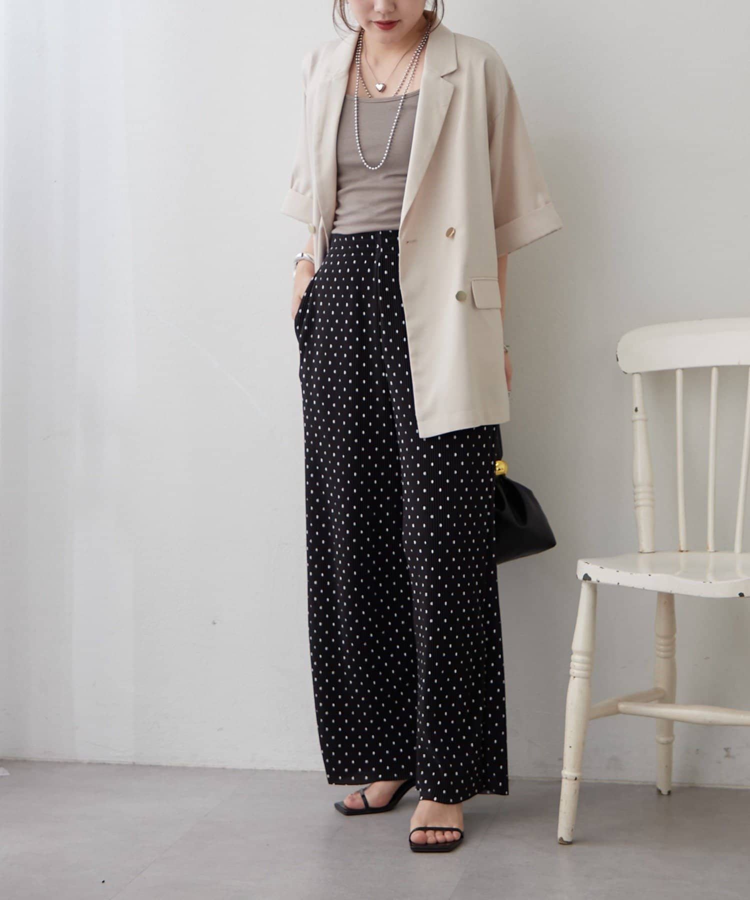 ・二の腕カバーのできるそで丈と、身体のラインを拾わないややハリのある素材感で細見え効果◎