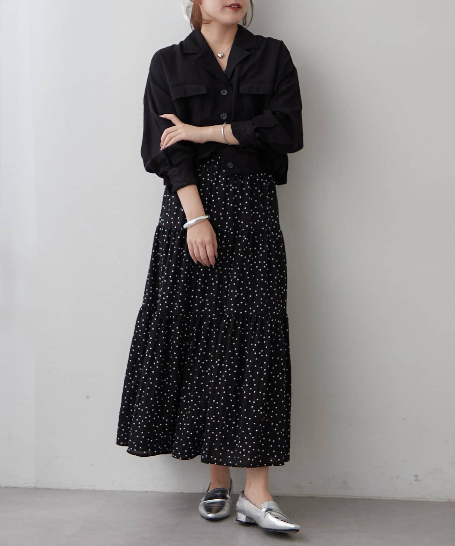 ・ワンピースやフレアスカートと合わせて、甘辛ミックスコーデを楽しむ