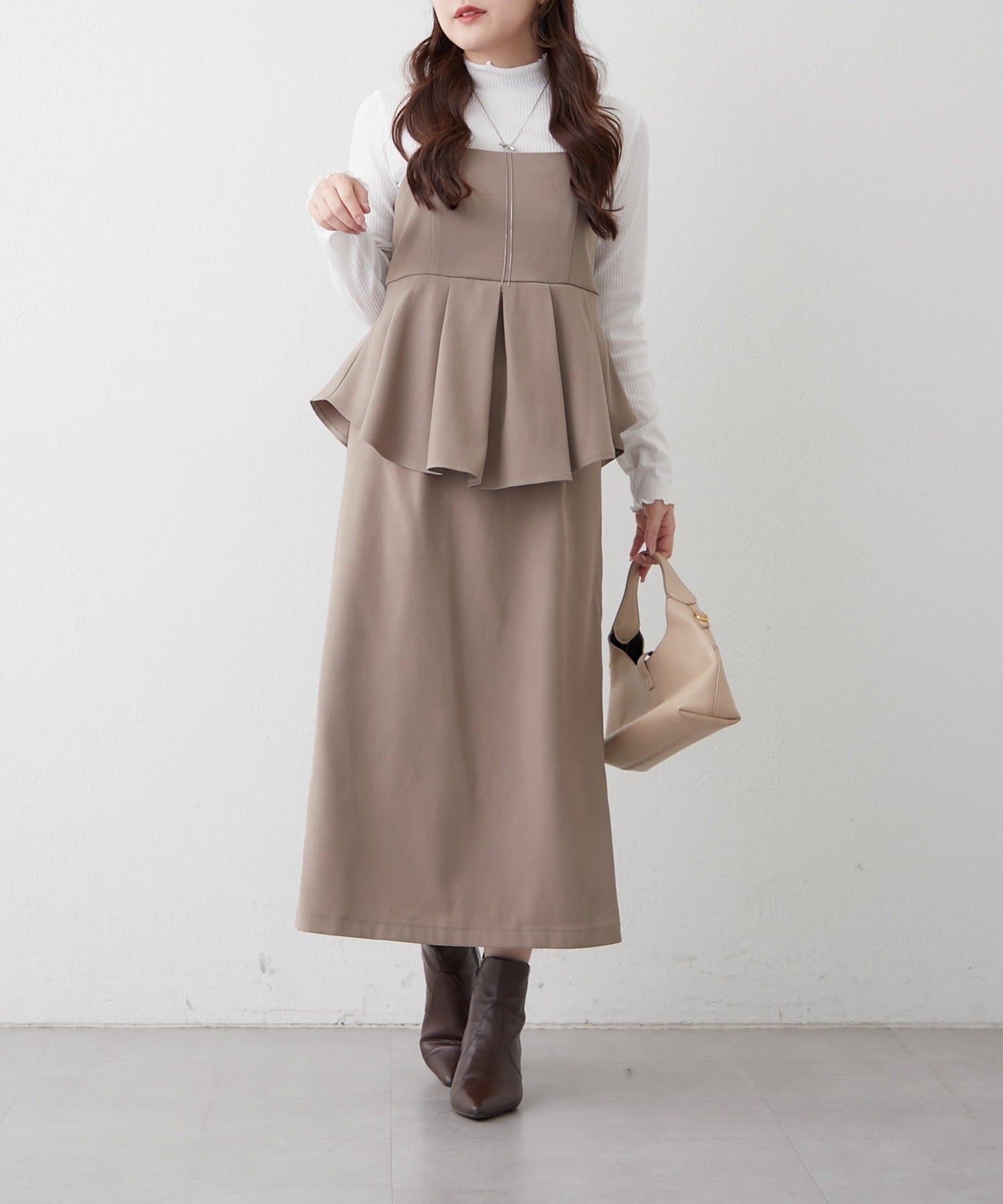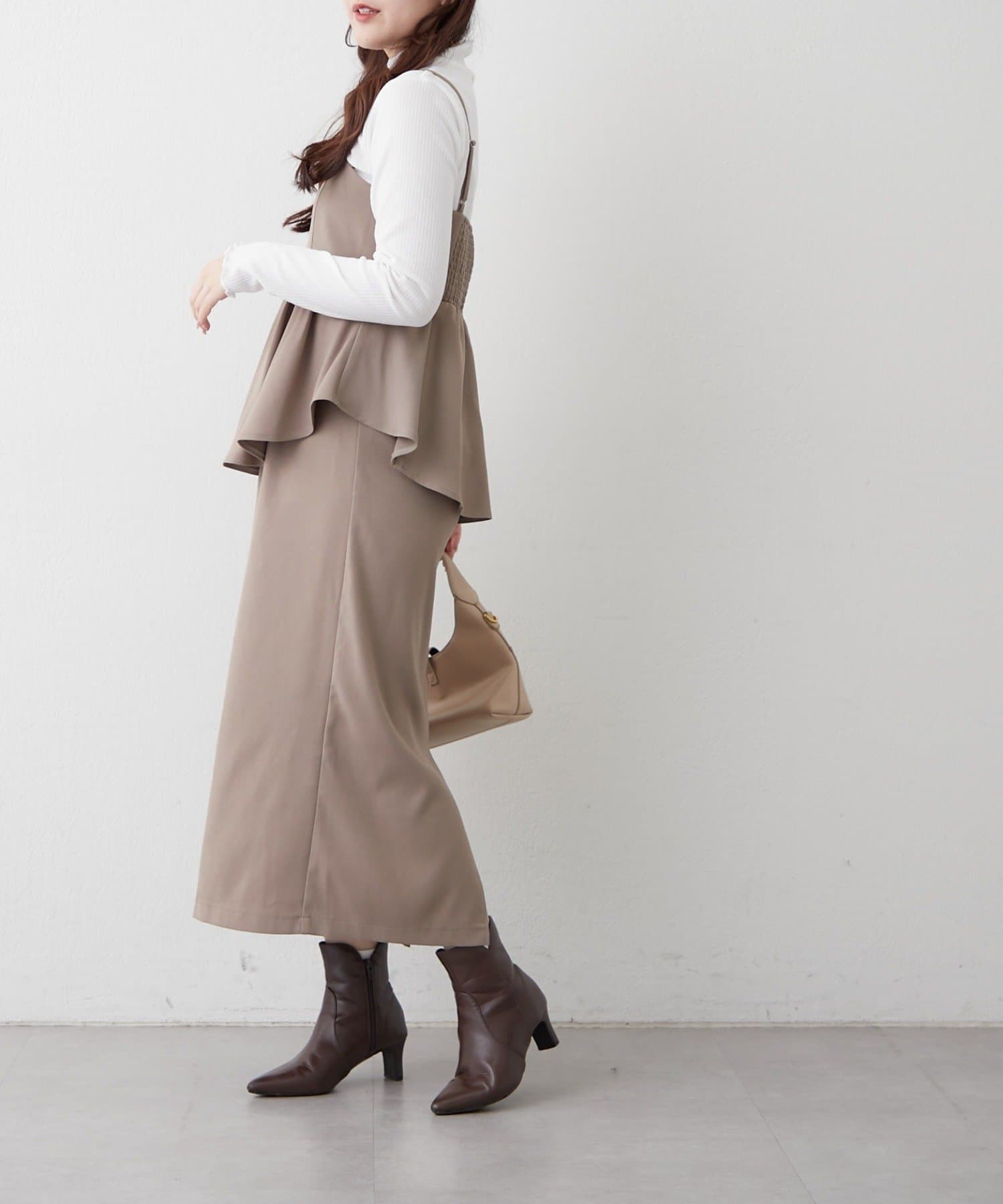 ・着回し力の高いテレコトップスと、ペプラムワンピースのセットアイテム