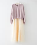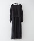 ・シンプルデザインのニットプルオーバーとチュールドッキングのキャミワンピースの2点SET