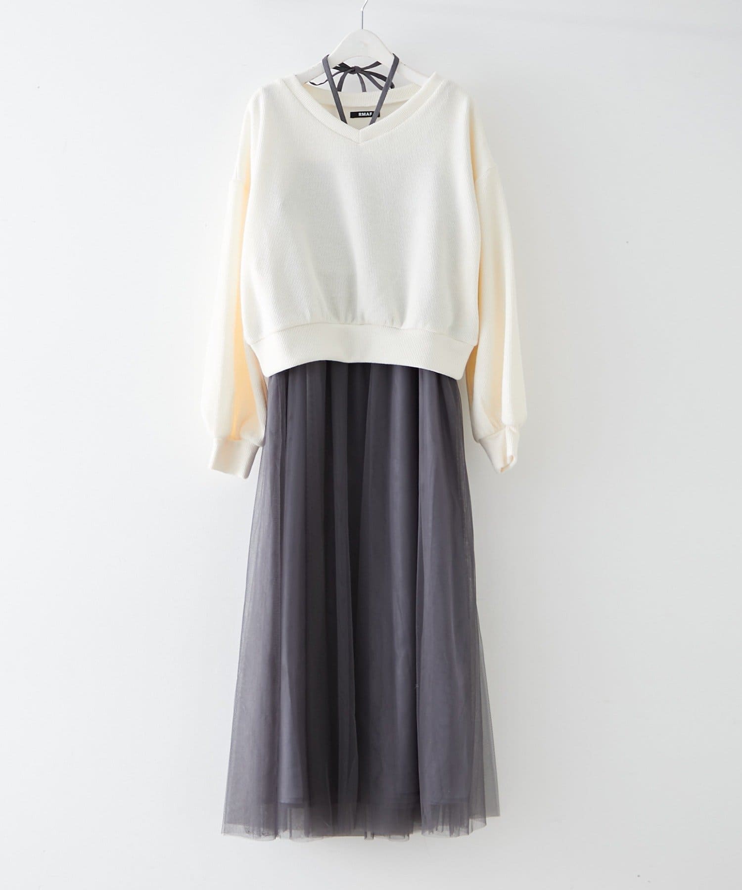 • Remind me and forever(リマインドミーアンドフォーエバー) 【2枚SET】Vネックニット+チュールキャミワンピース