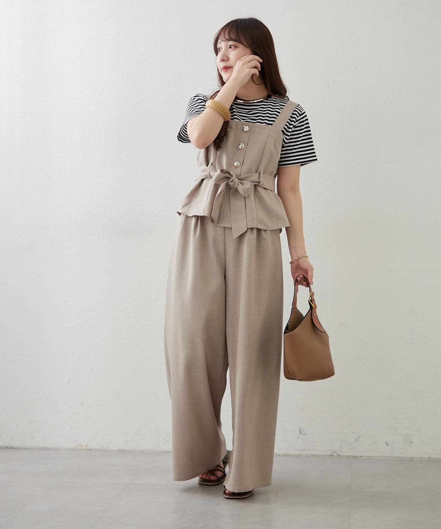 【上下2枚SET】共ベルト付ビスチェ+ワイドパンツ