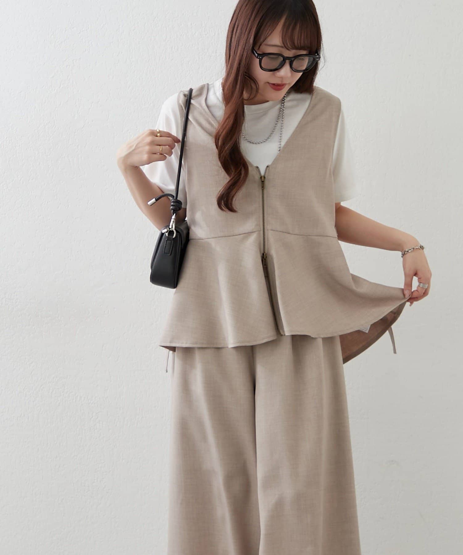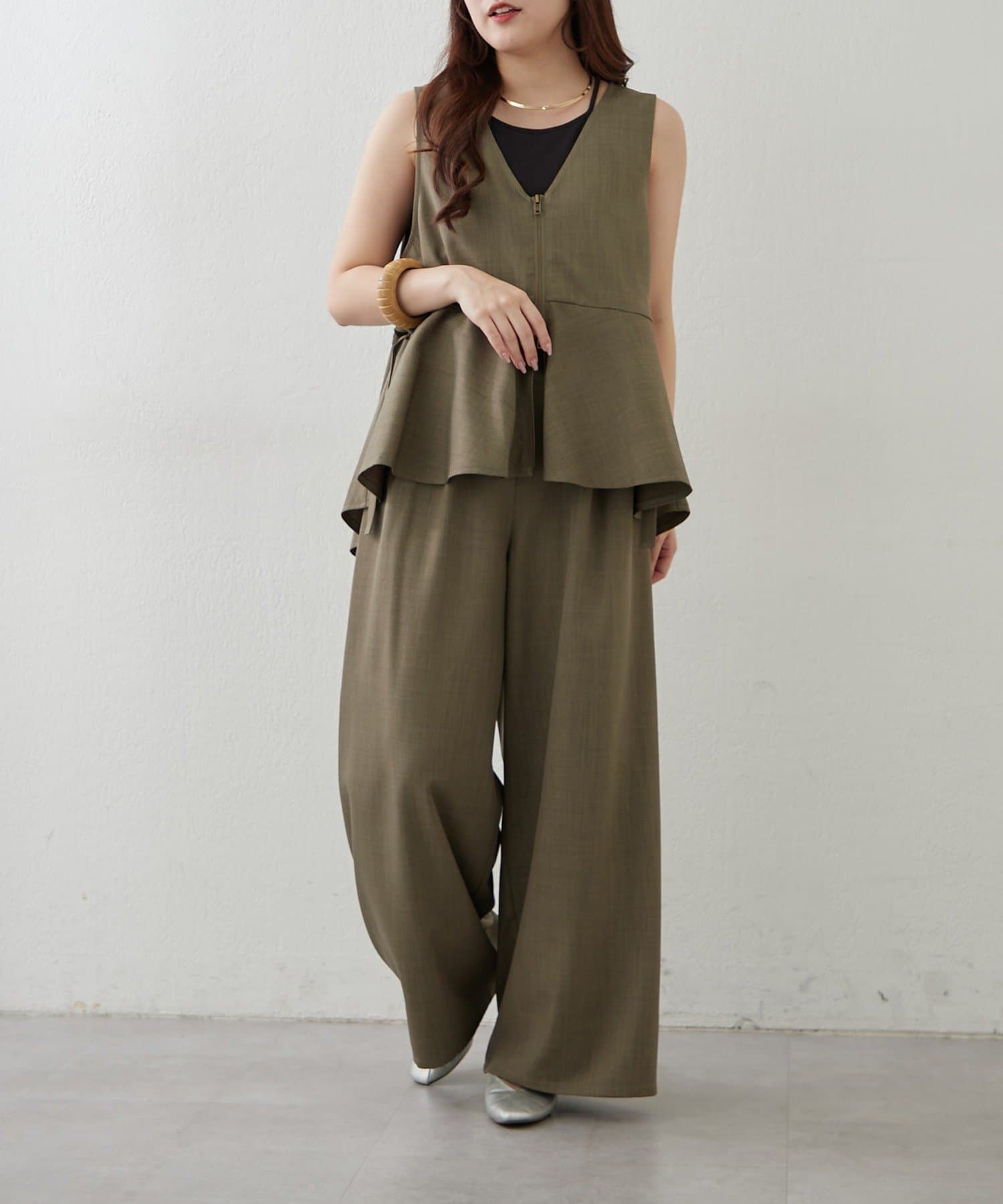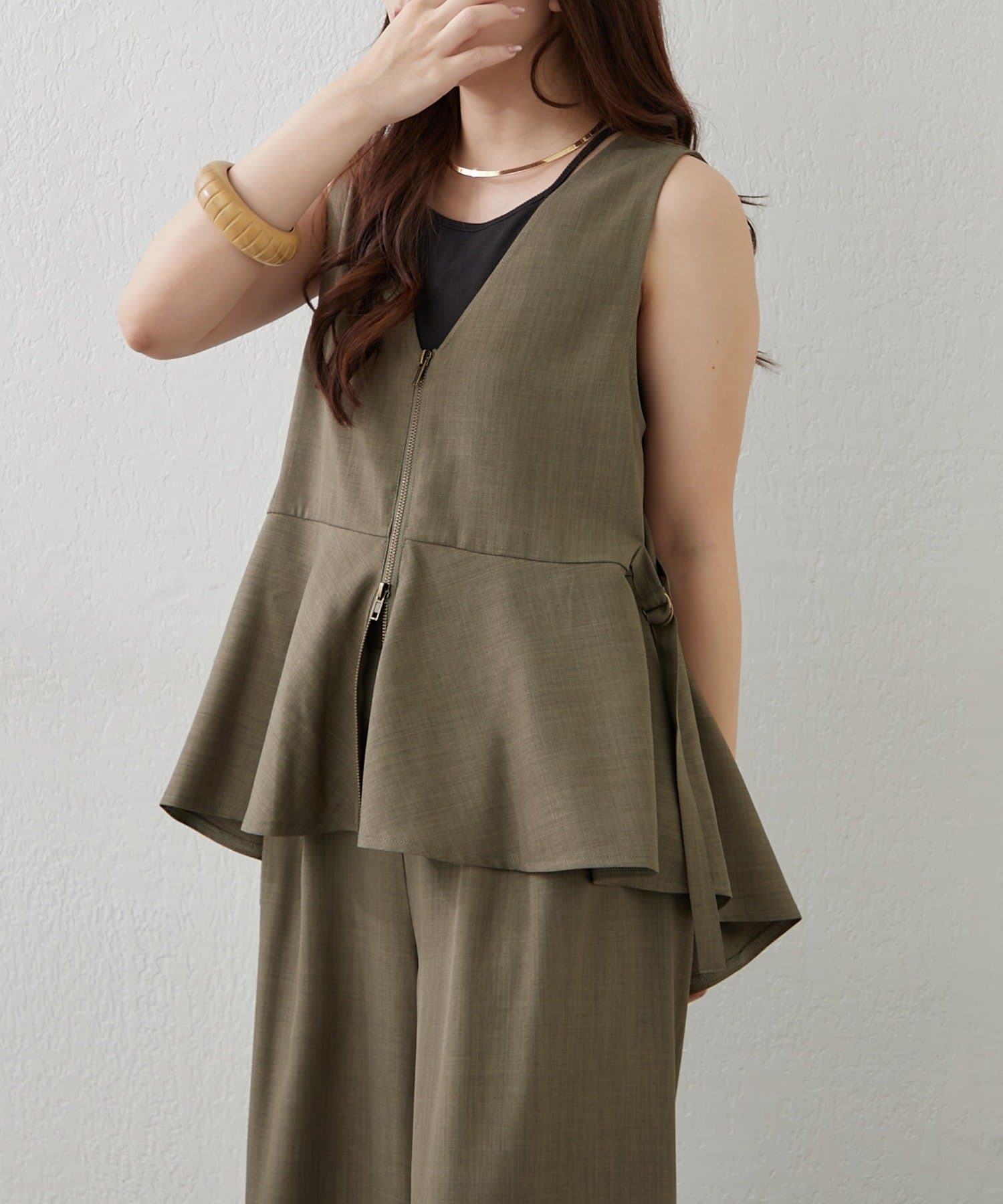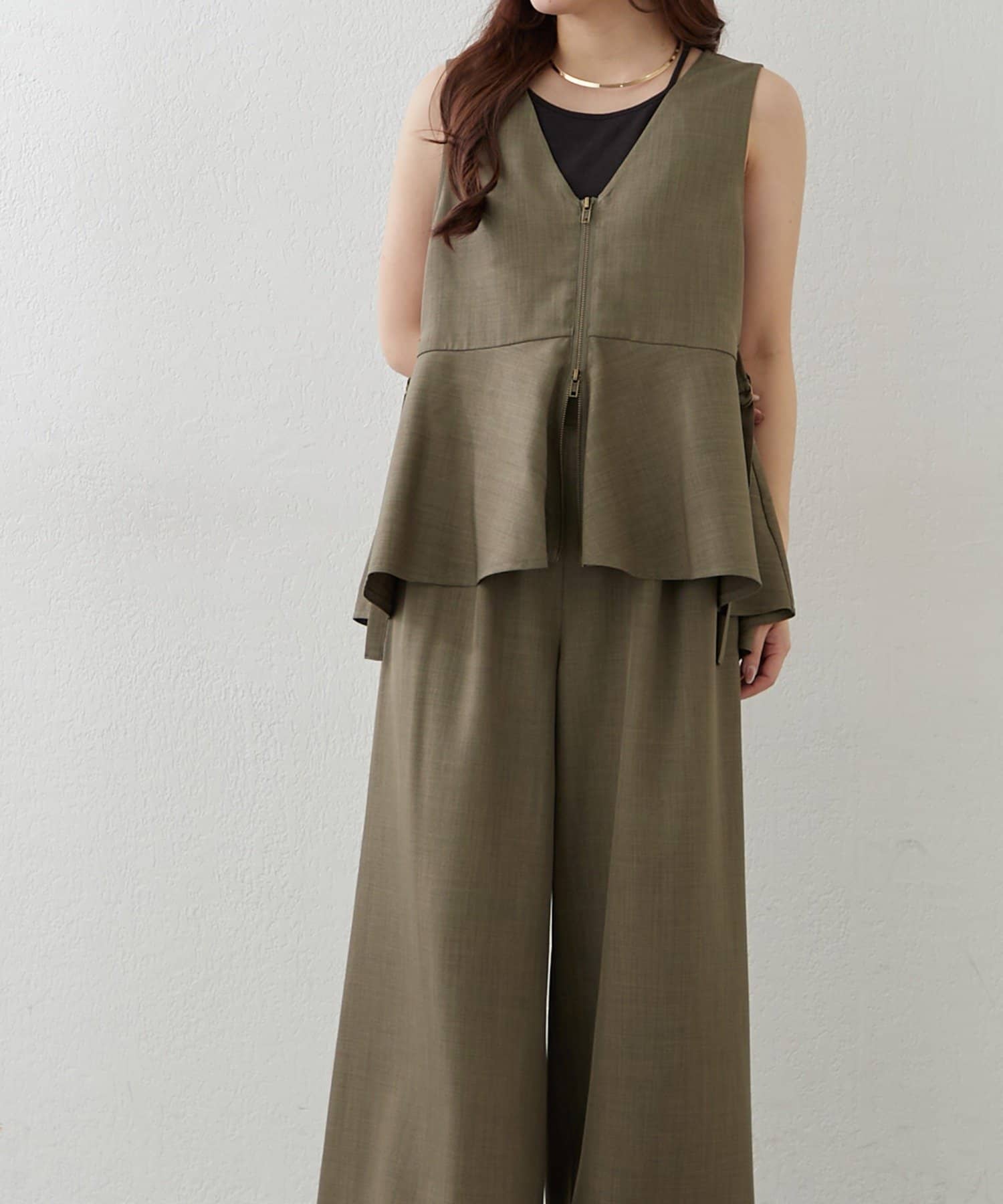 【上下2枚SET】WZIPペプラムジレ&ワイドパンツ