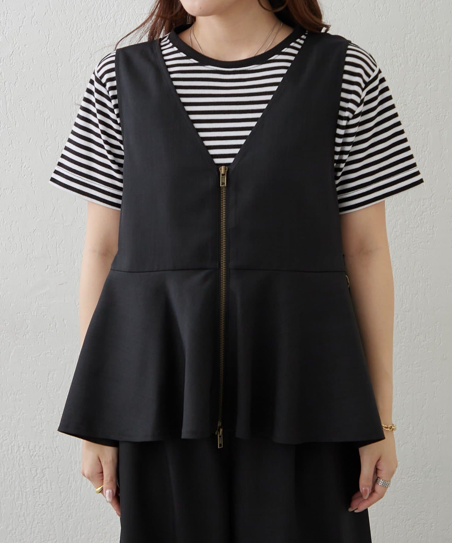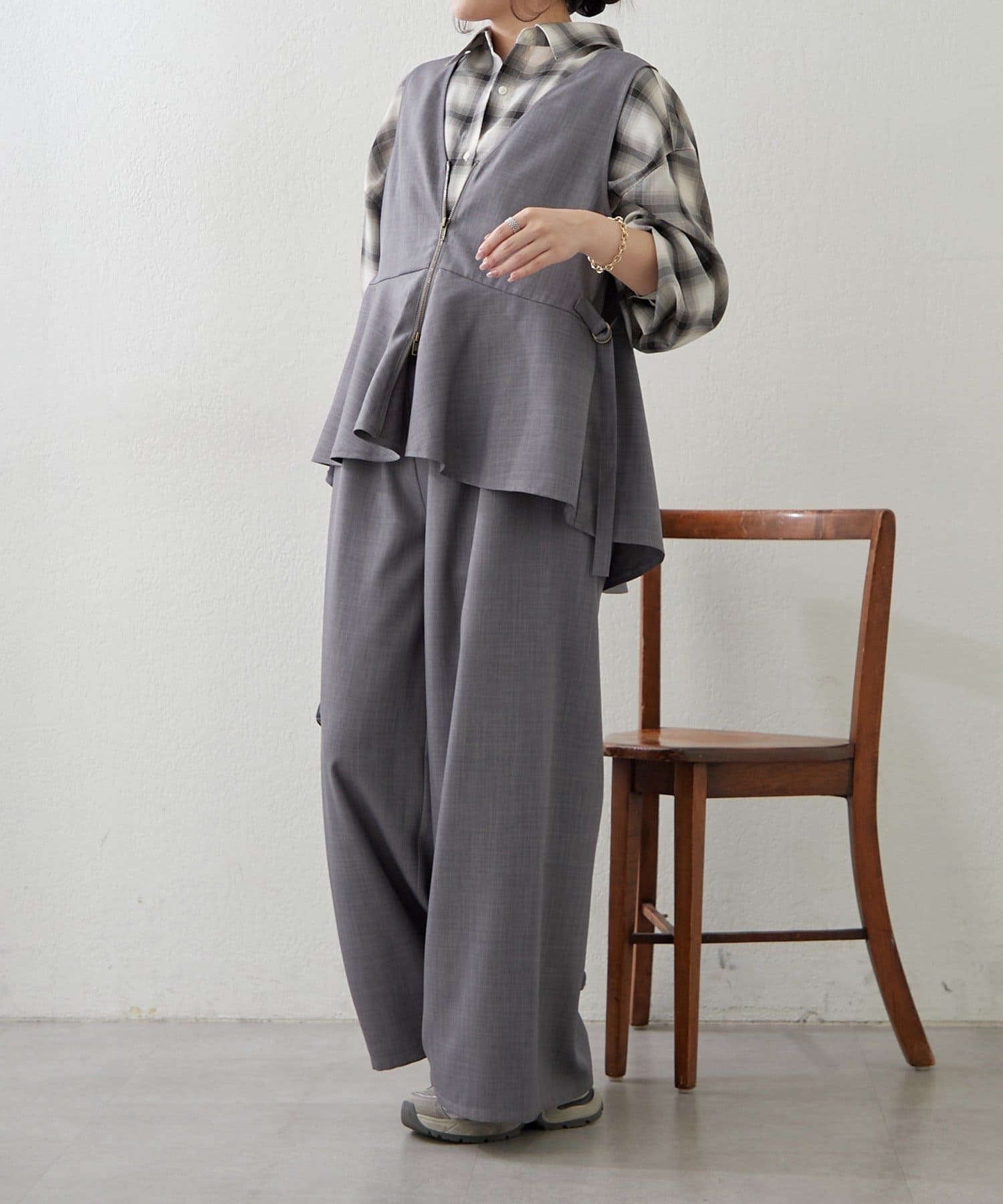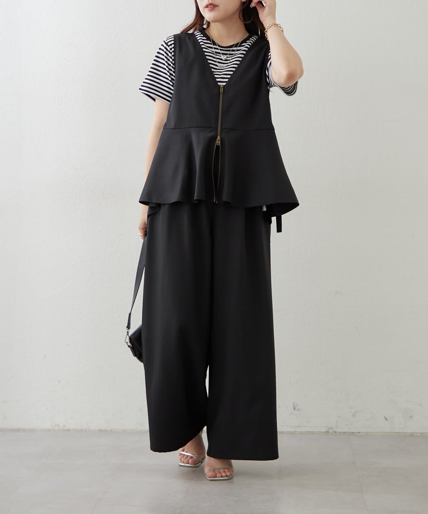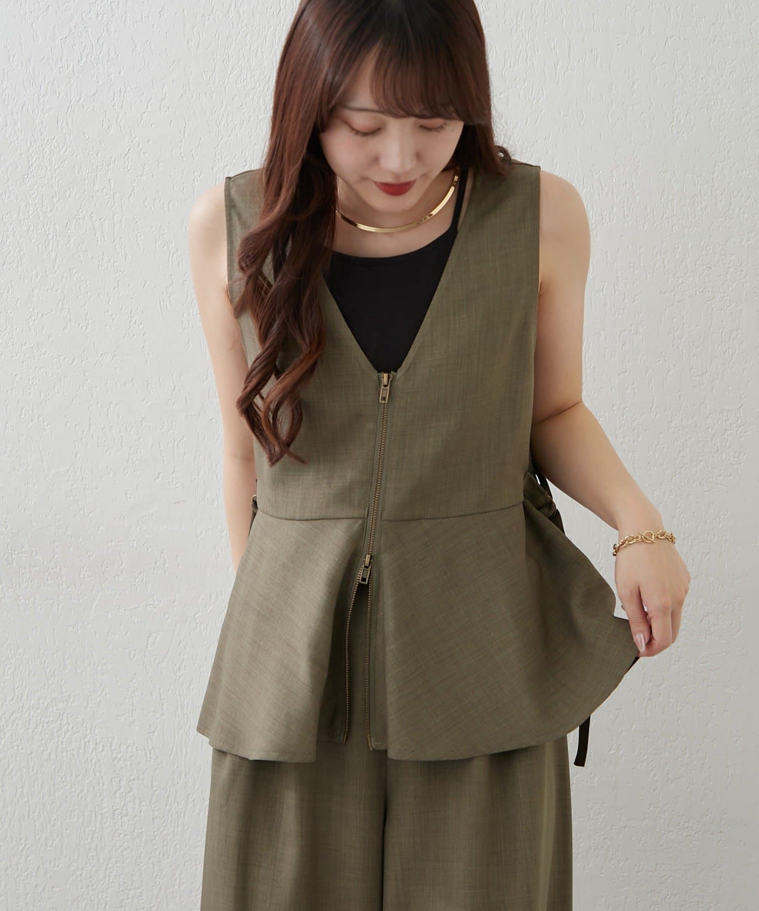 【上下2枚SET】WZIPペプラムジレ&ワイドパンツ