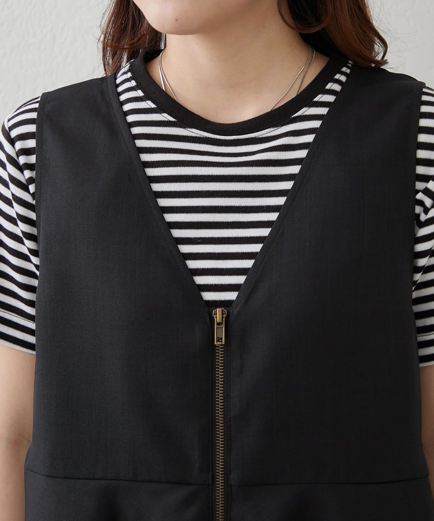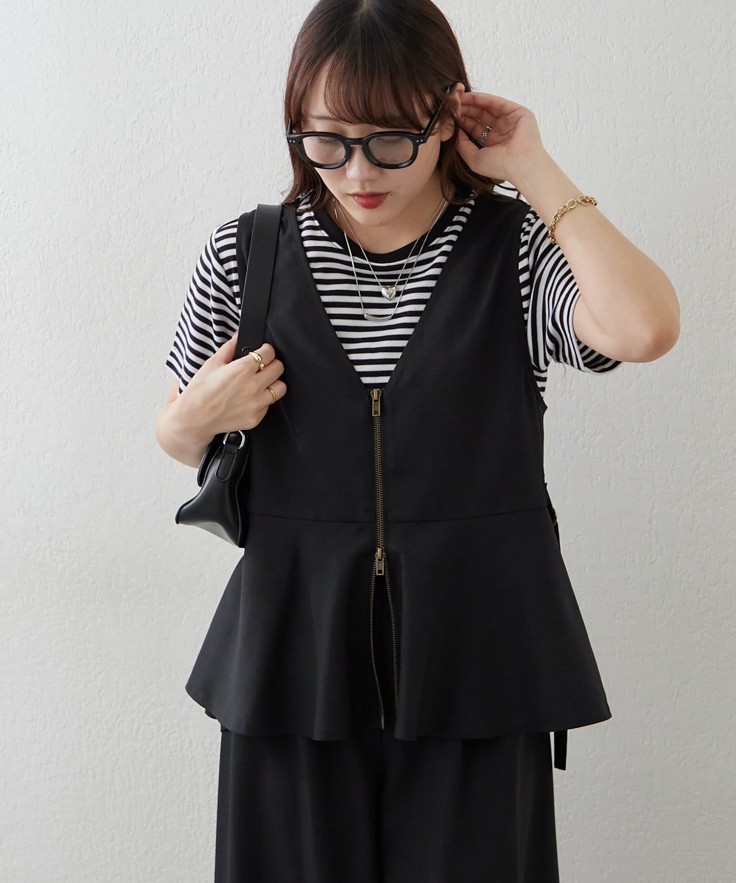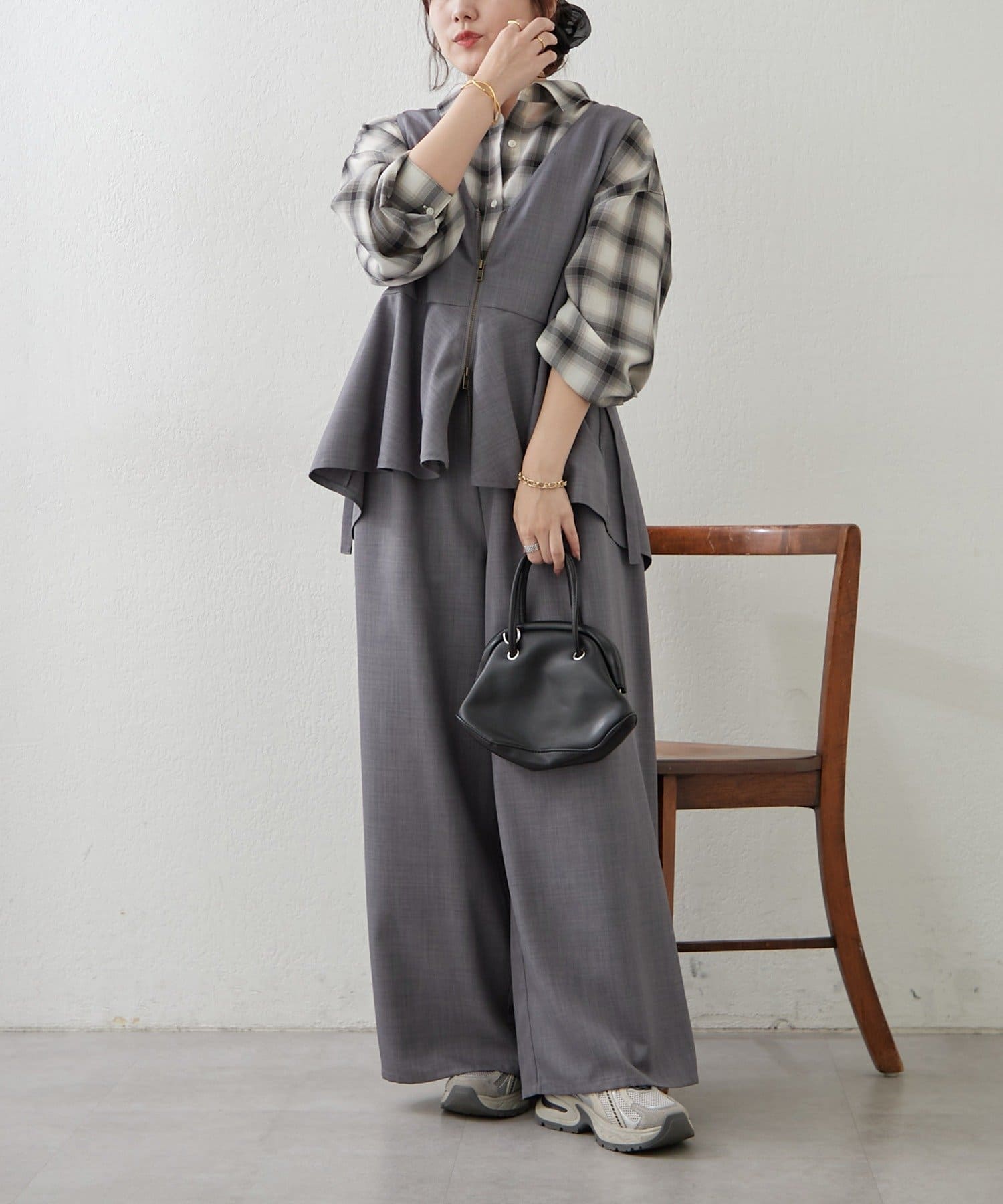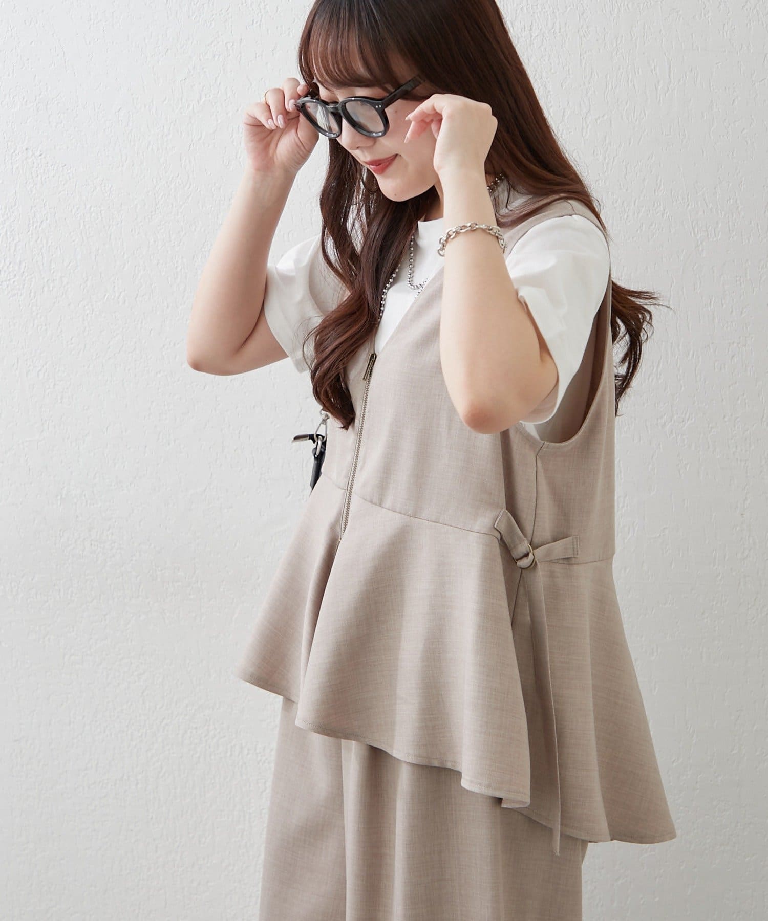 【上下2枚SET】WZIPペプラムジレ&ワイドパンツ