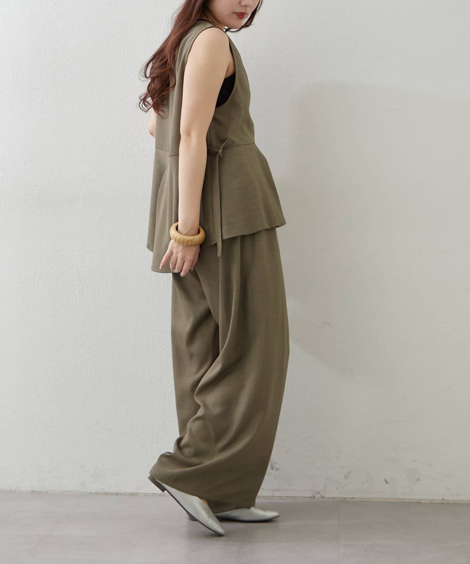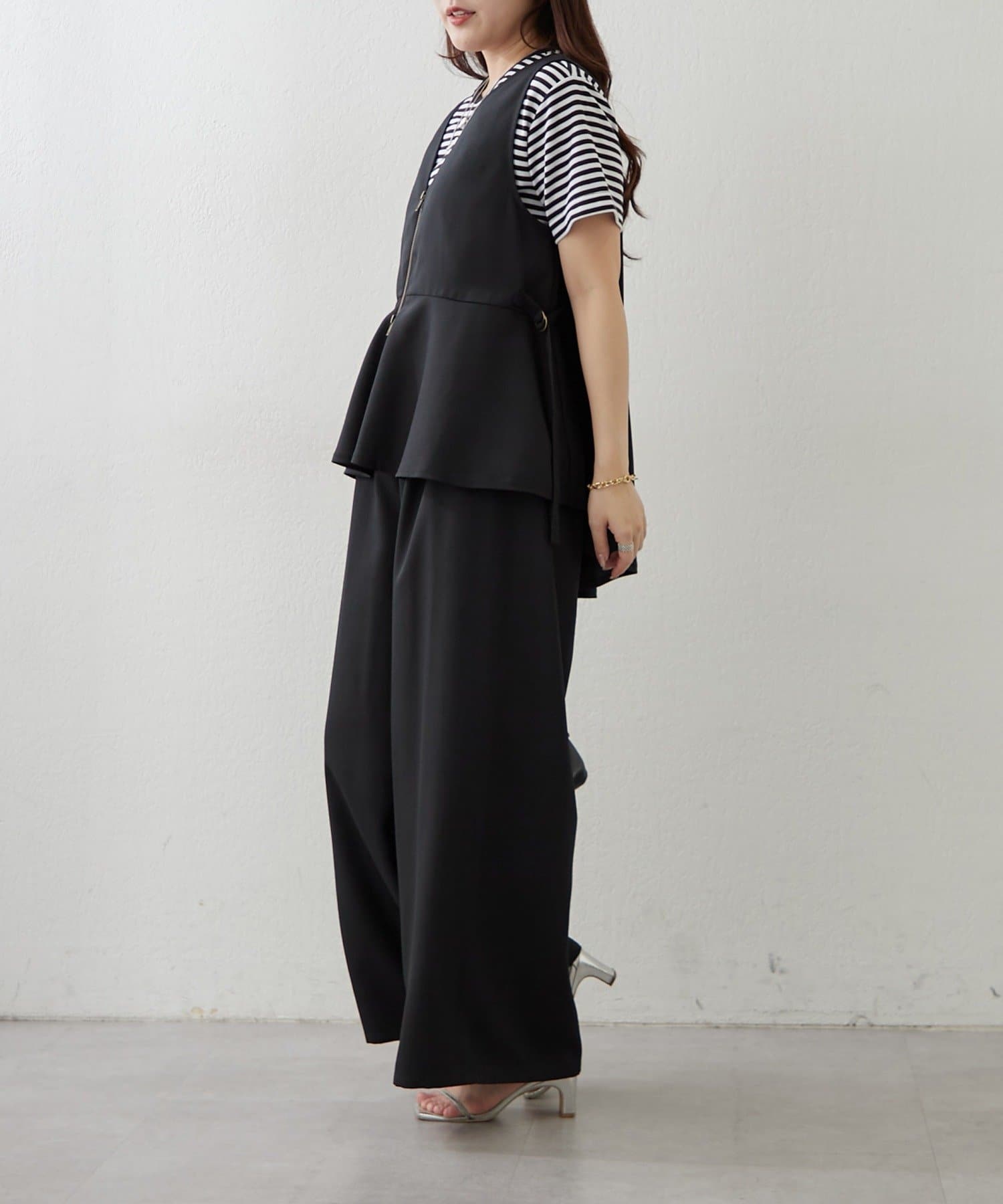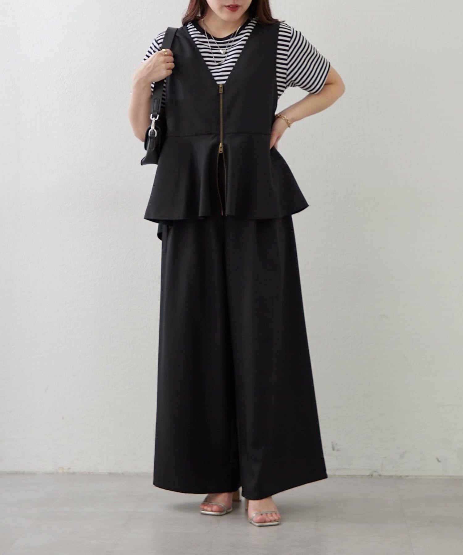 Remind me and forever(リマインドミーアンドフォーエバー) 【上下2枚SET】WZIPペプラムジレ&ワイドパンツ