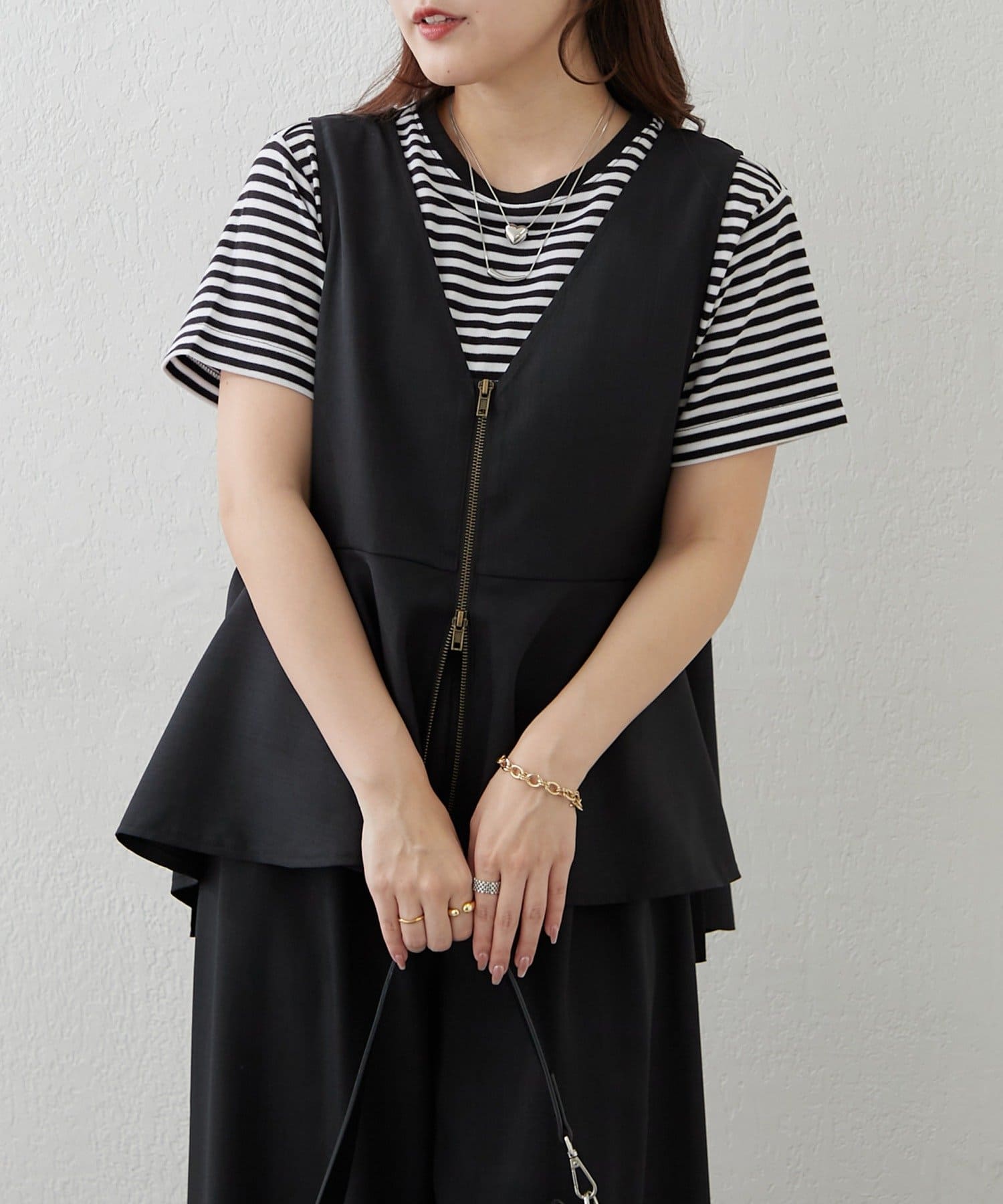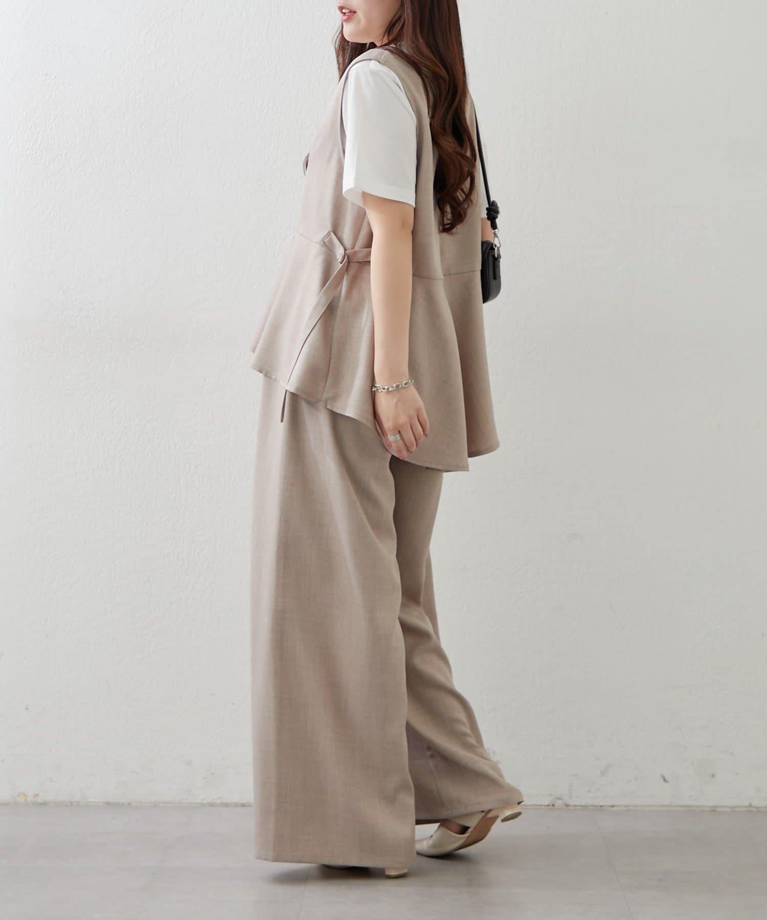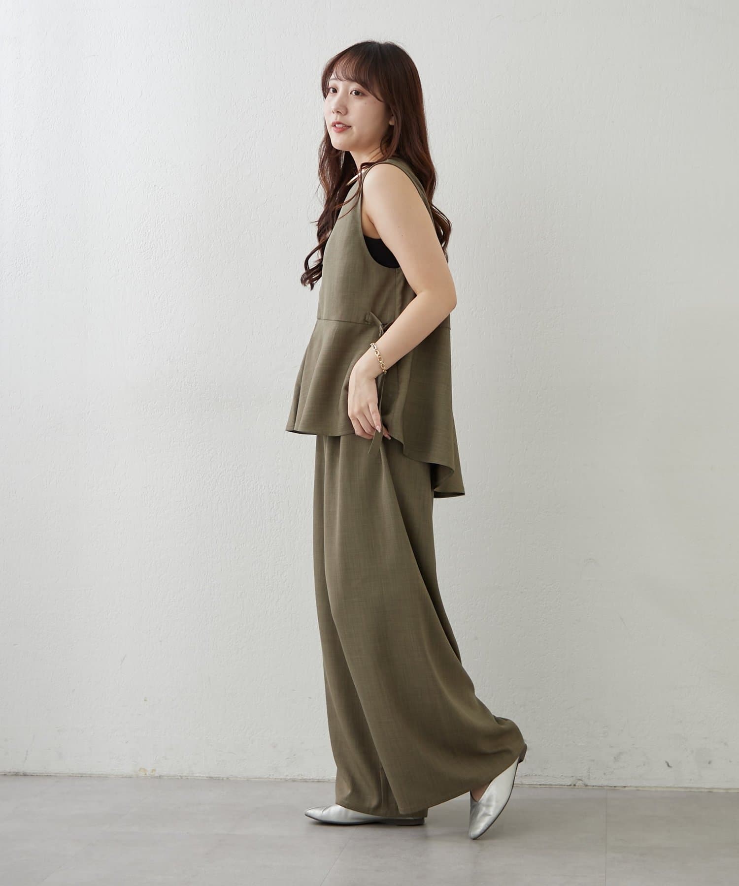 Remind me and forever(リマインドミーアンドフォーエバー) 【上下2枚SET】WZIPペプラムジレ&ワイドパンツ