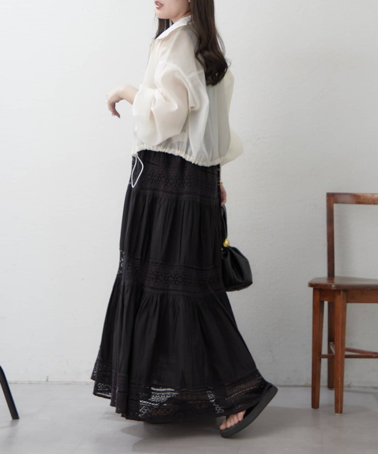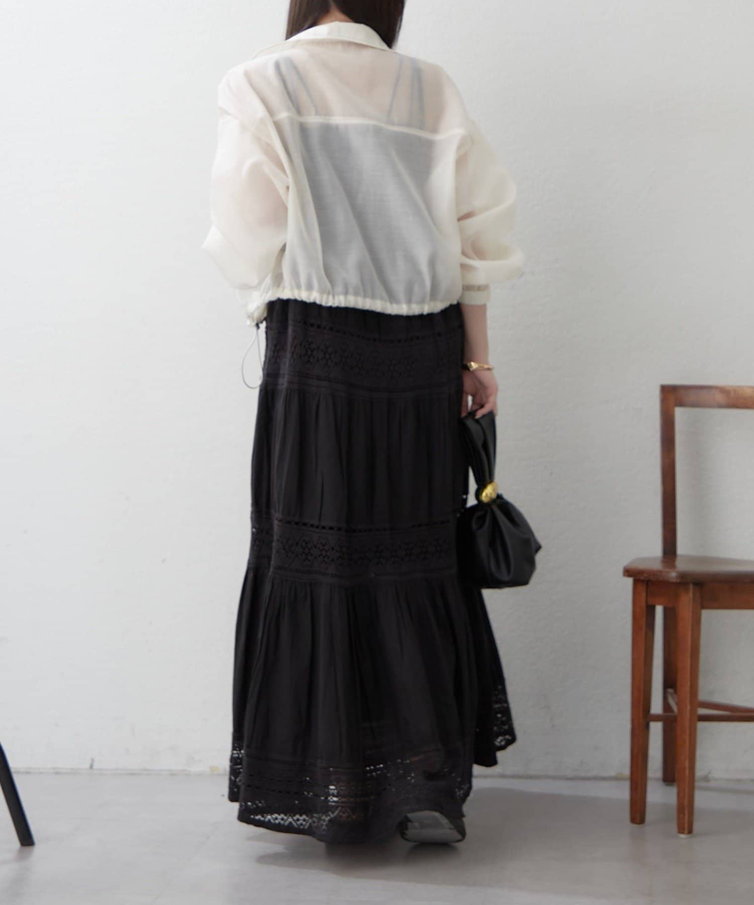 ・レースによる透け感を楽しめるので、合わせるインナーによって様々な表情を見せてくれます