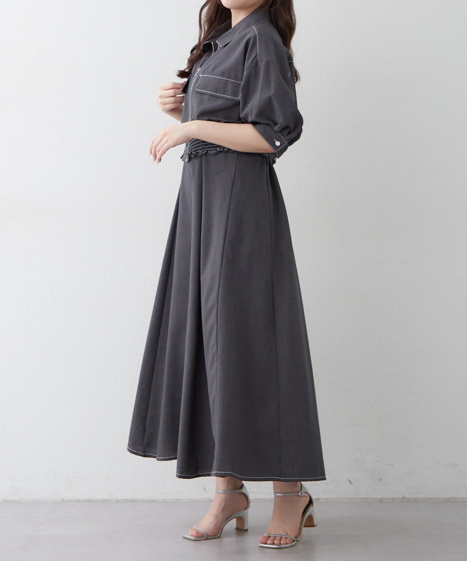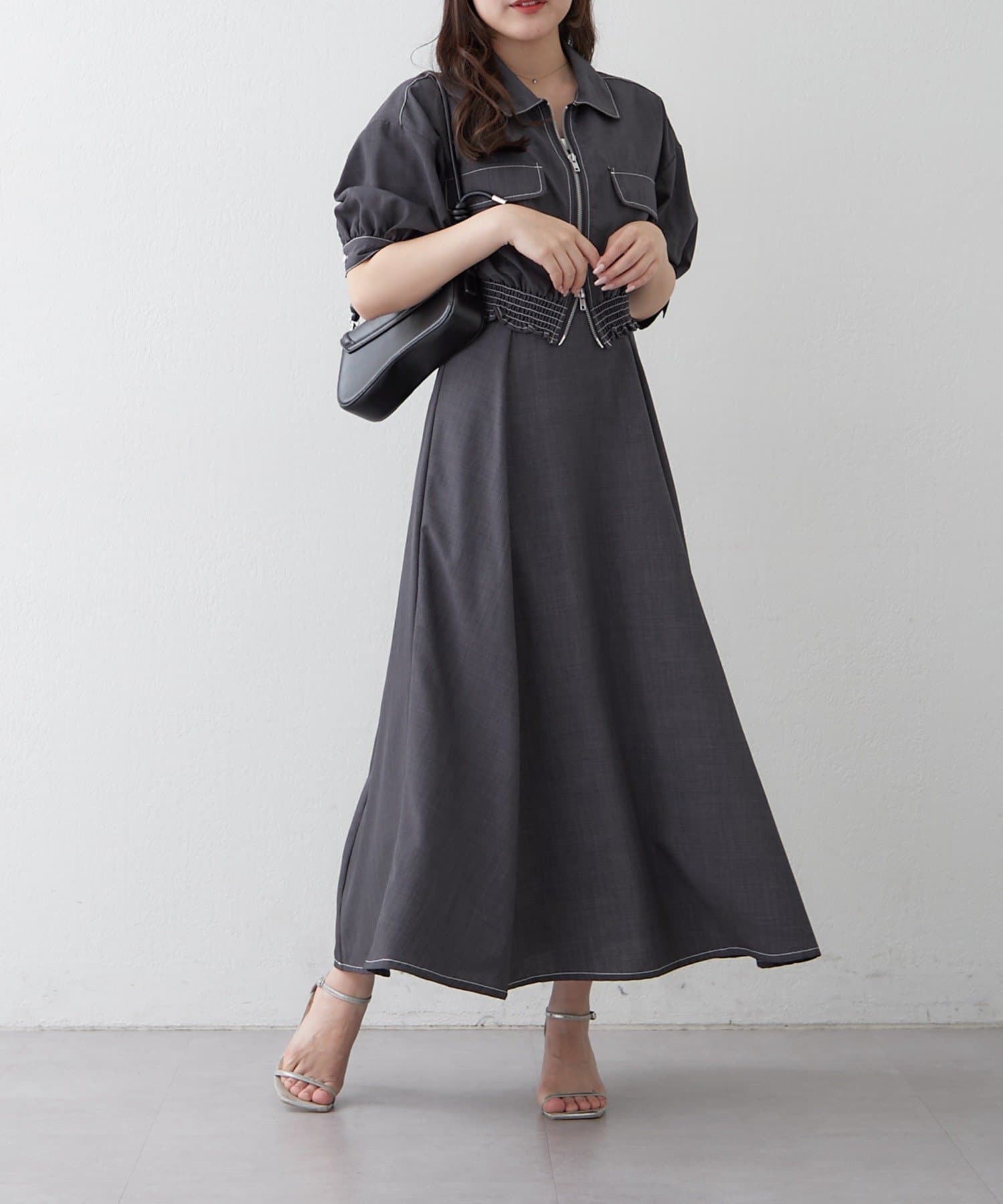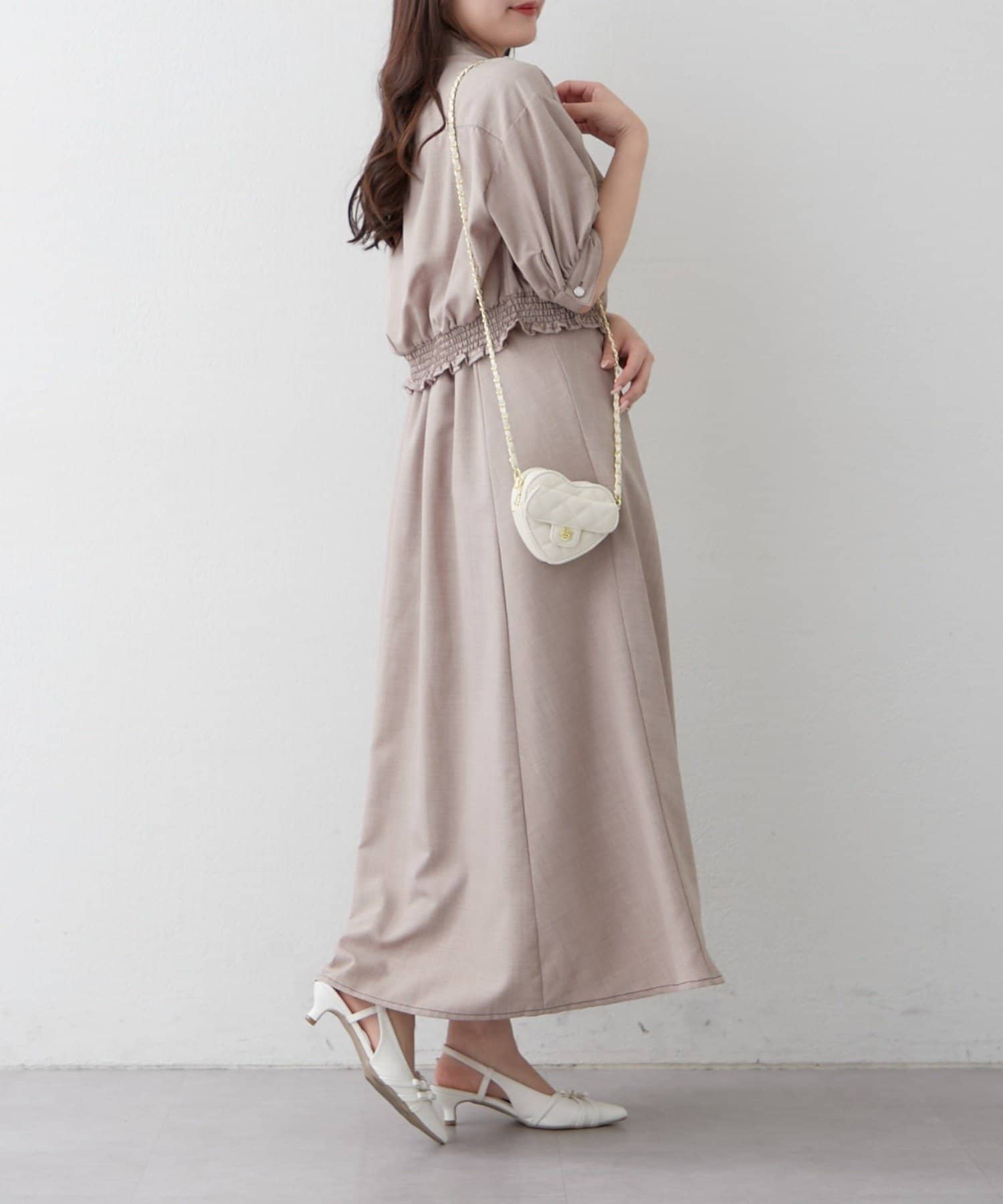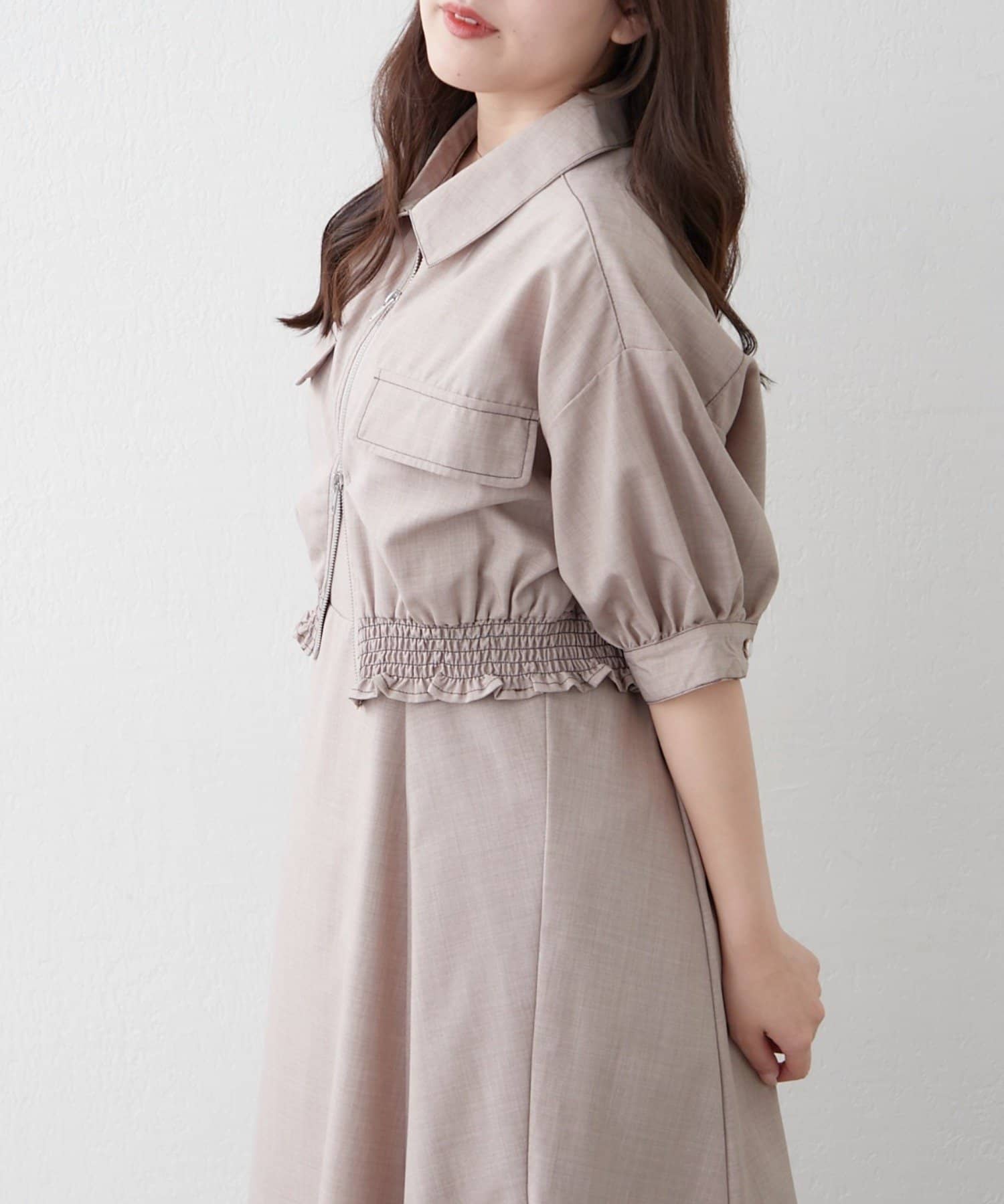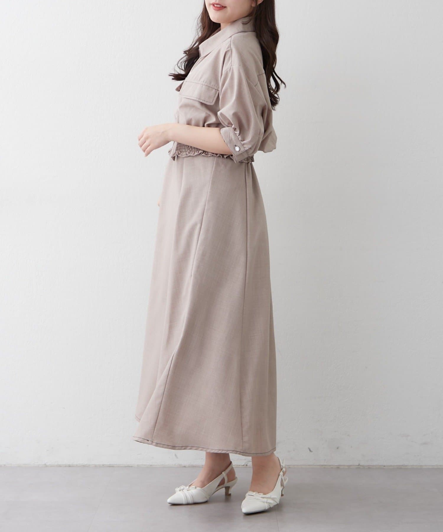 ・ウエストのシャーリングがスタイルアップ効果も