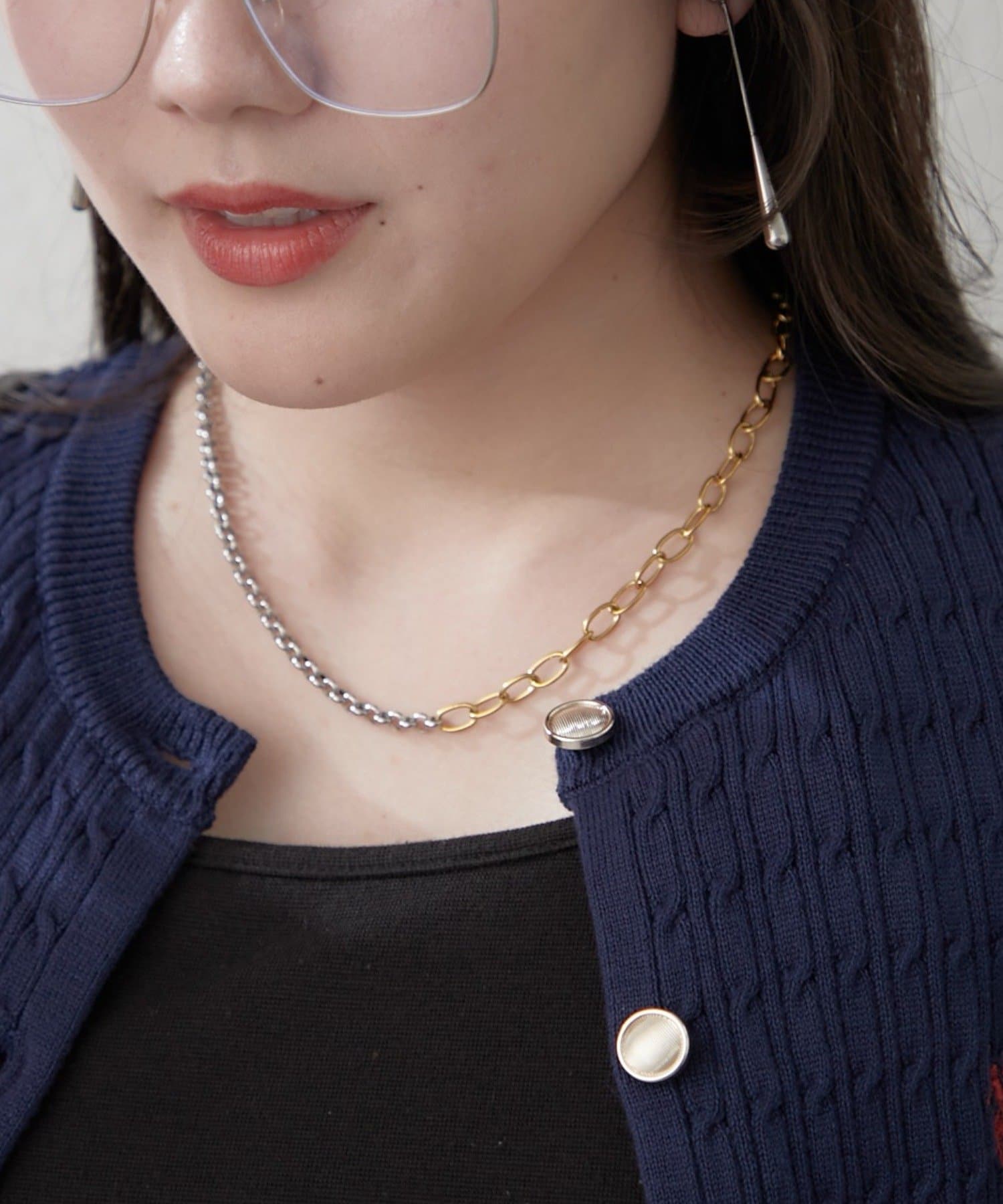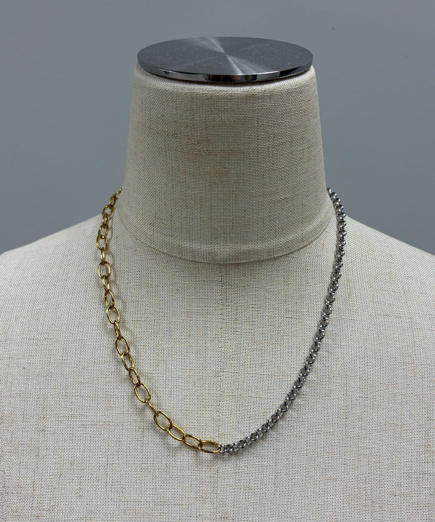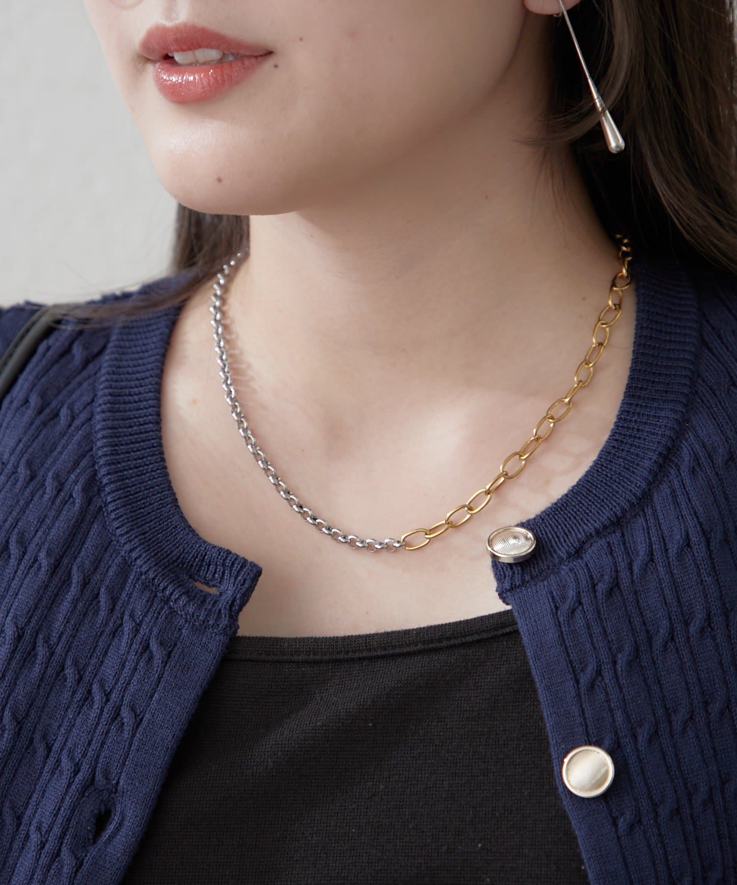 ・シルバーとゴールドのコンビカラーが目を引く洗練されたチェーンネックレス。