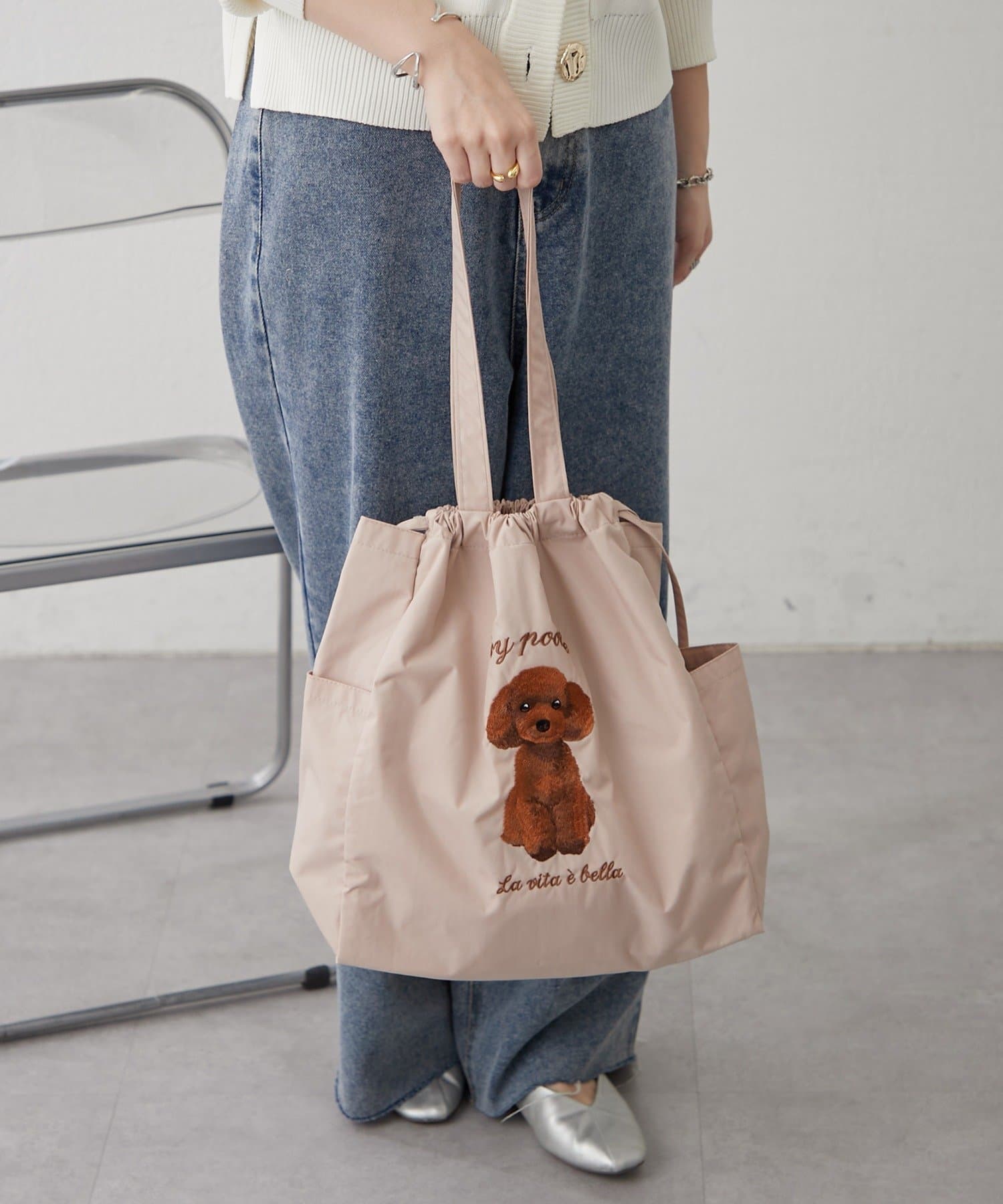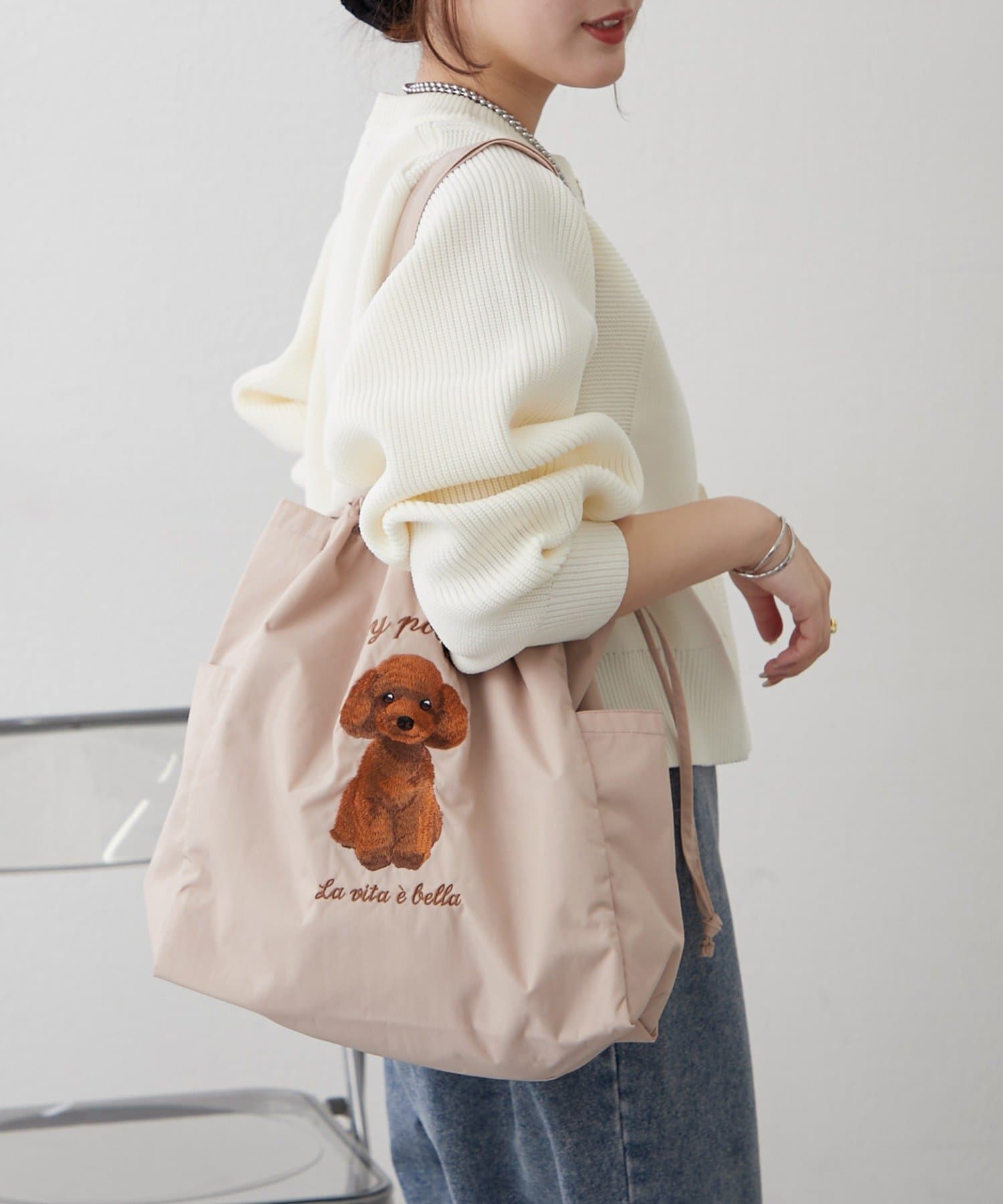 TOP > Remind me and forever > レディース > バッグ > トート/ミニトートバッグ > 【お散歩にもぴったり♪】アニマル刺繍巾着トートバッグ