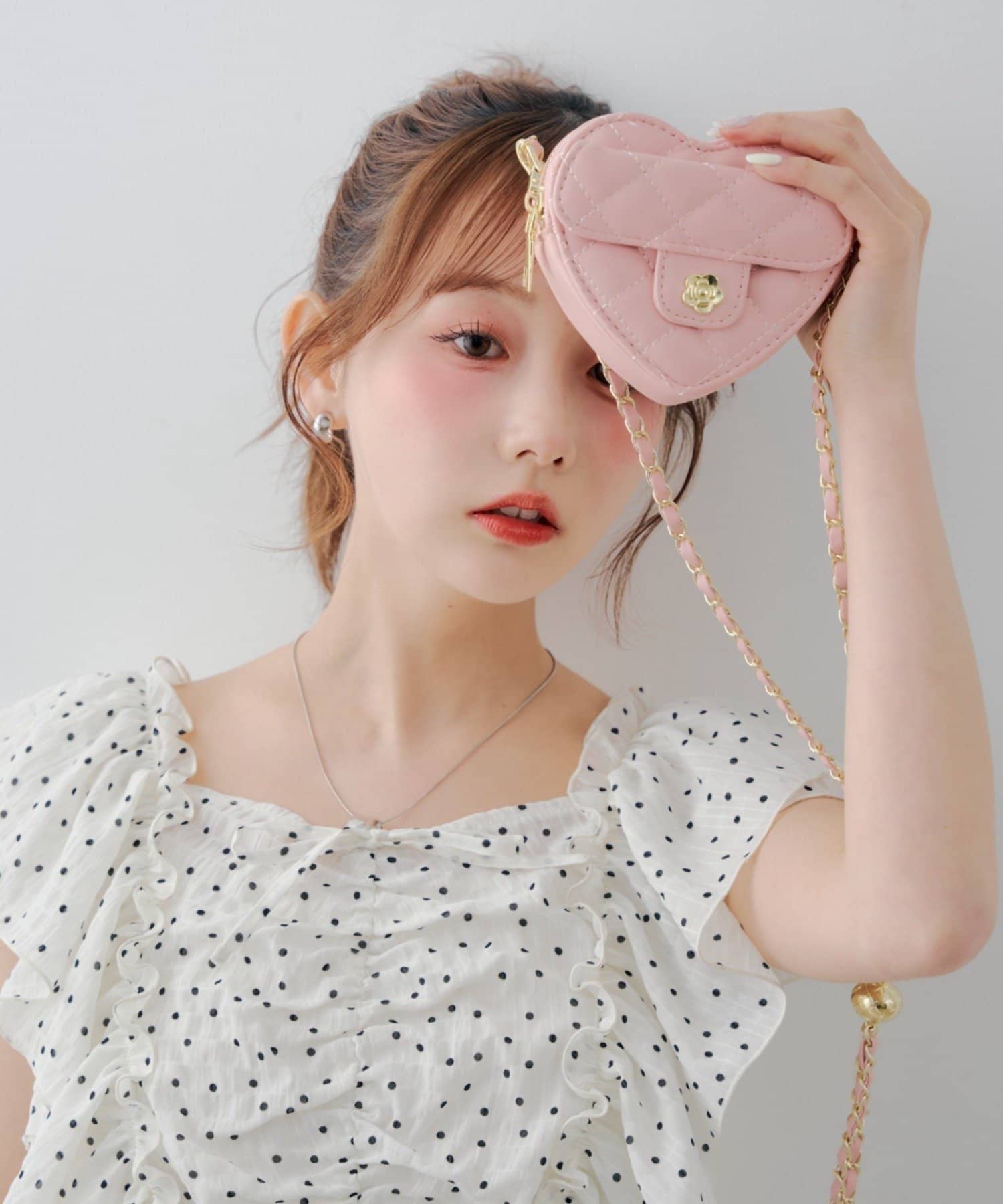 ・ころんと丸みのあるフォルムが可愛いハート型ショルダーバッグ
