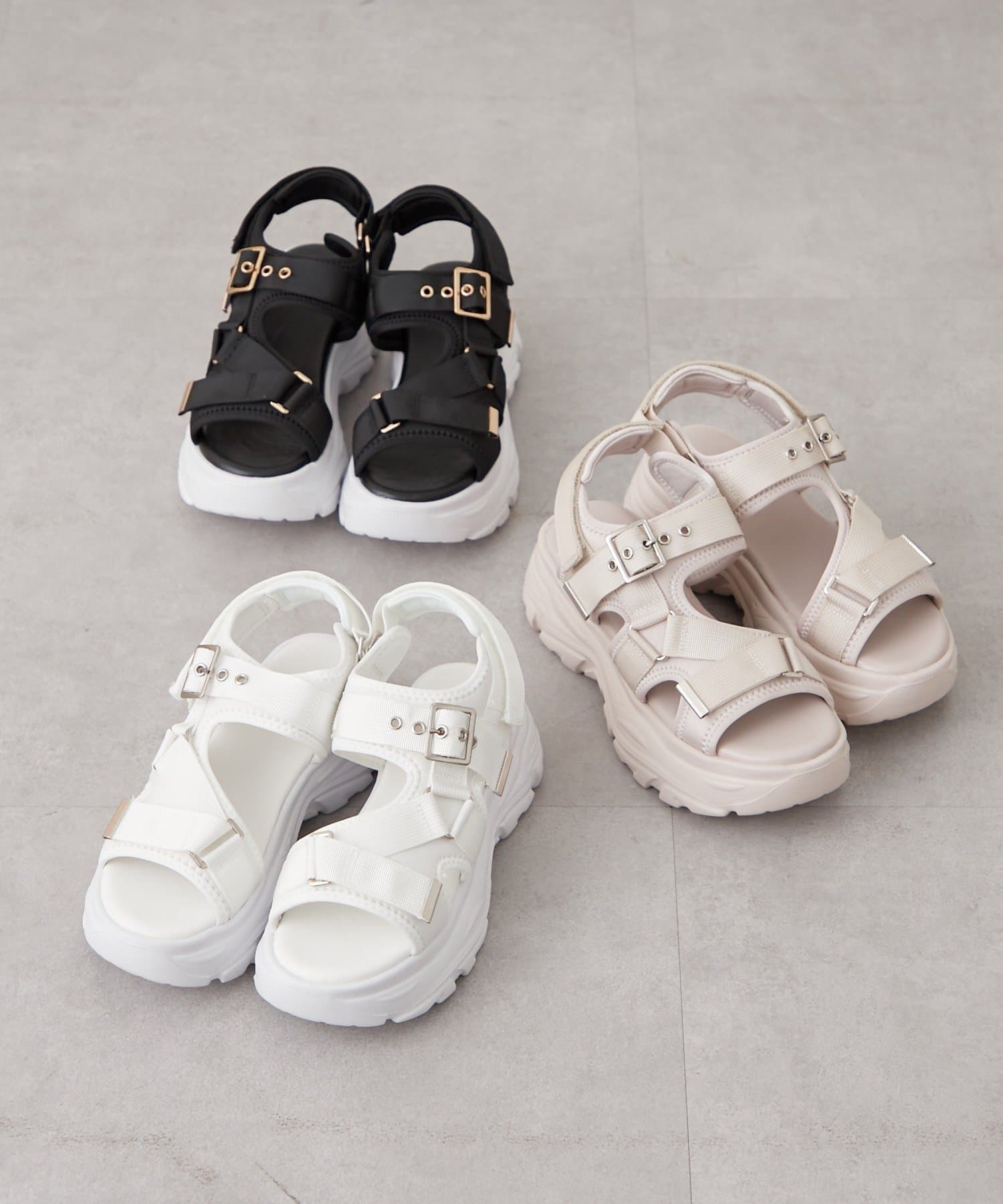 ・ボリュームのあるソールでスタイルアップを叶える、デザインサンダル