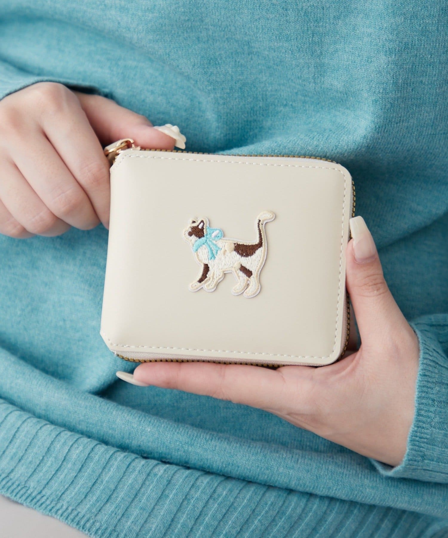 【WEB限定】ストラップ付ネコ刺繍カードケース No.5061140040