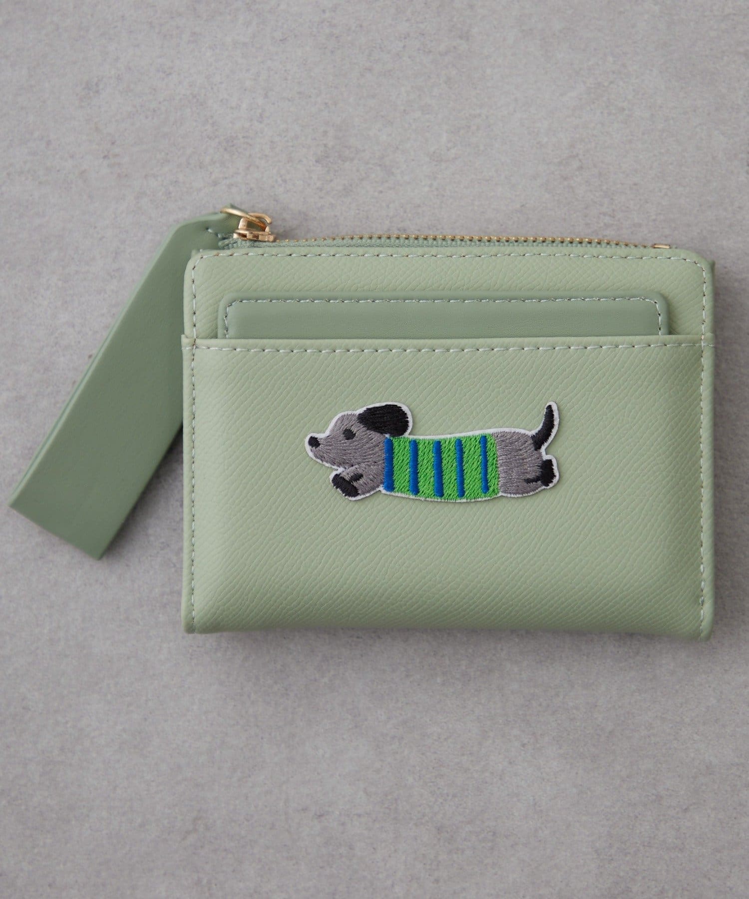 【WEB限定】カードケース付、犬刺繍ウォレット